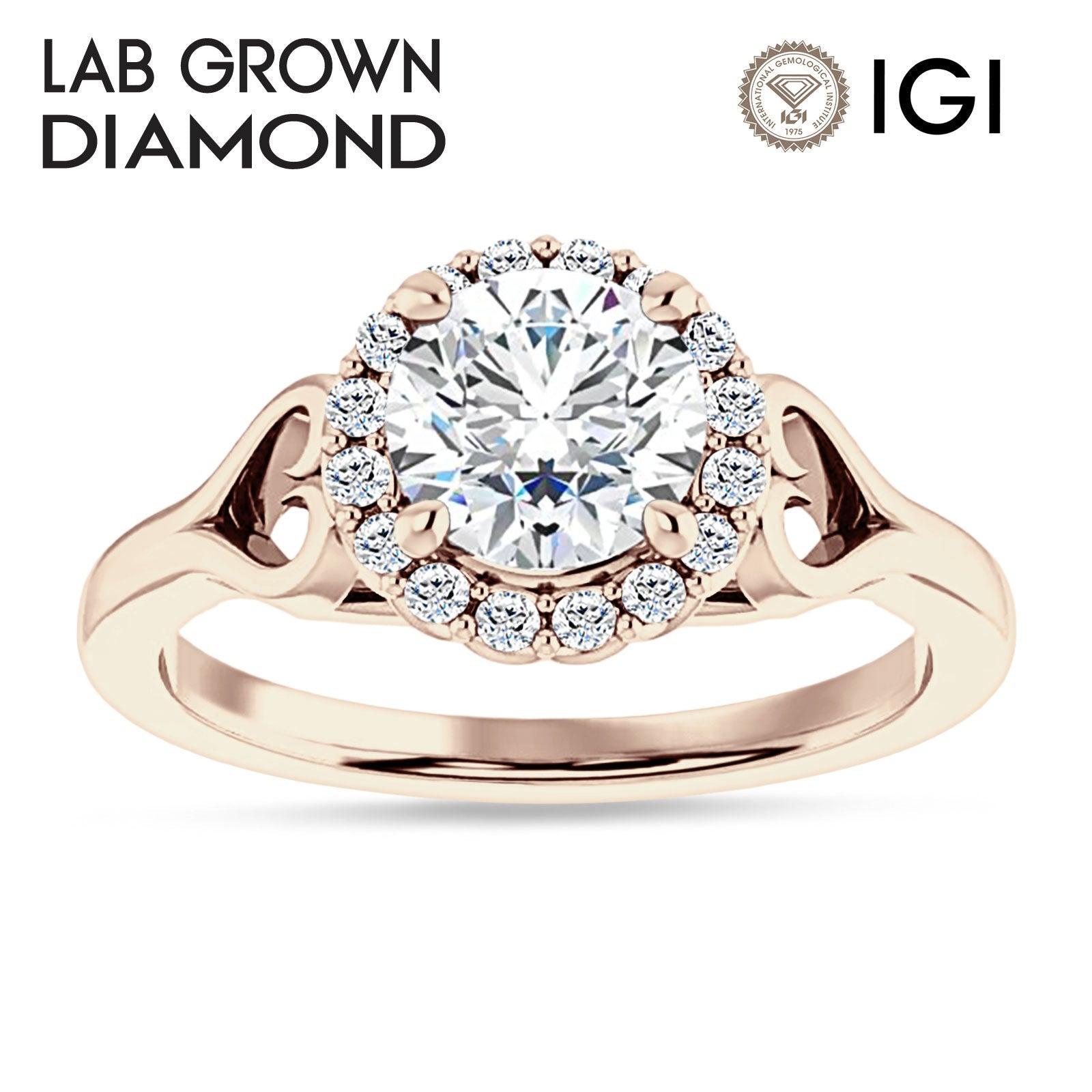 IGI Certified Round 3 Carat Lab Grown Diamond Ar Deco Heart Halo Ring