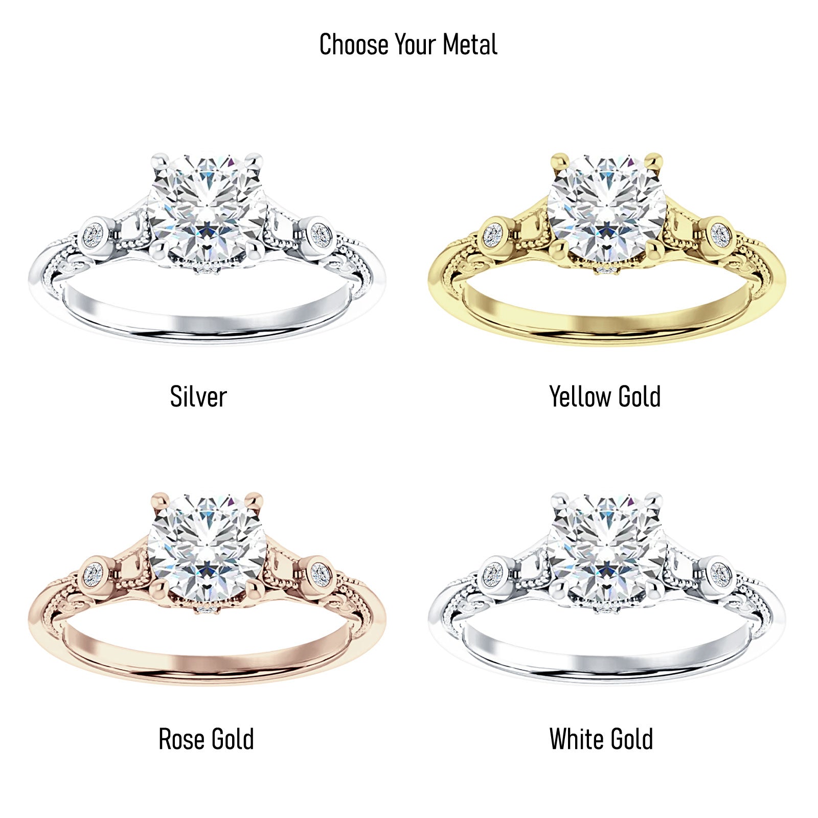 This lab grown diamond ring is available in three different carat weights and also comes in a choice of various metal types.(Tarnish Resistant Sterling Silver, 14K Gold & 18K Gold)