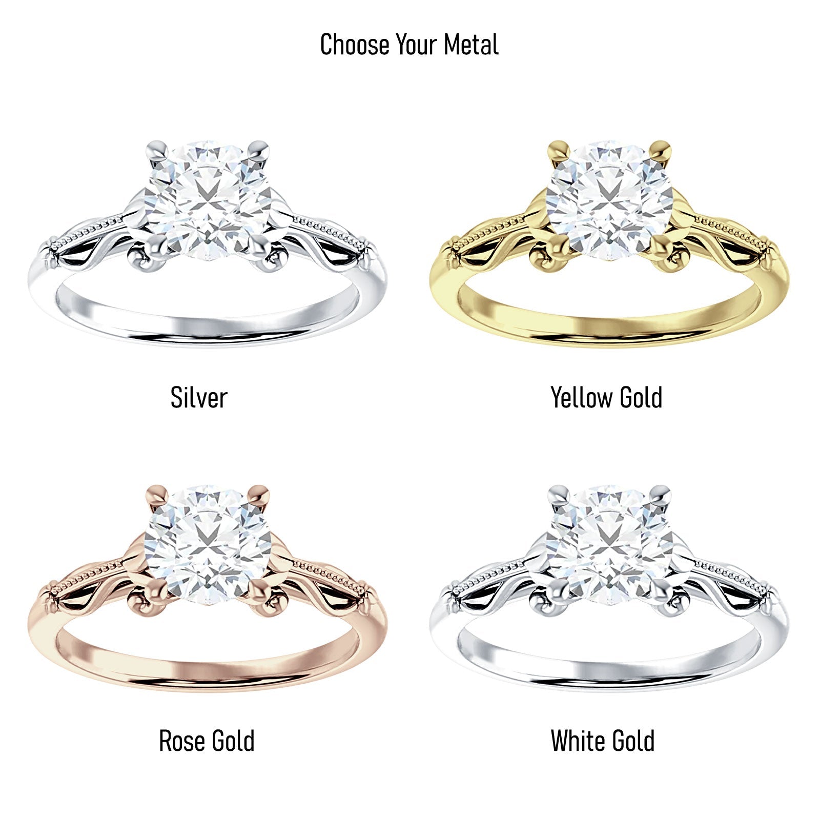 This lab grown diamond ring is available in three different carat weights and also comes in a choice of various metal types.(Tarnish Resistant Sterling Silver, 14K Gold & 18K Gold)