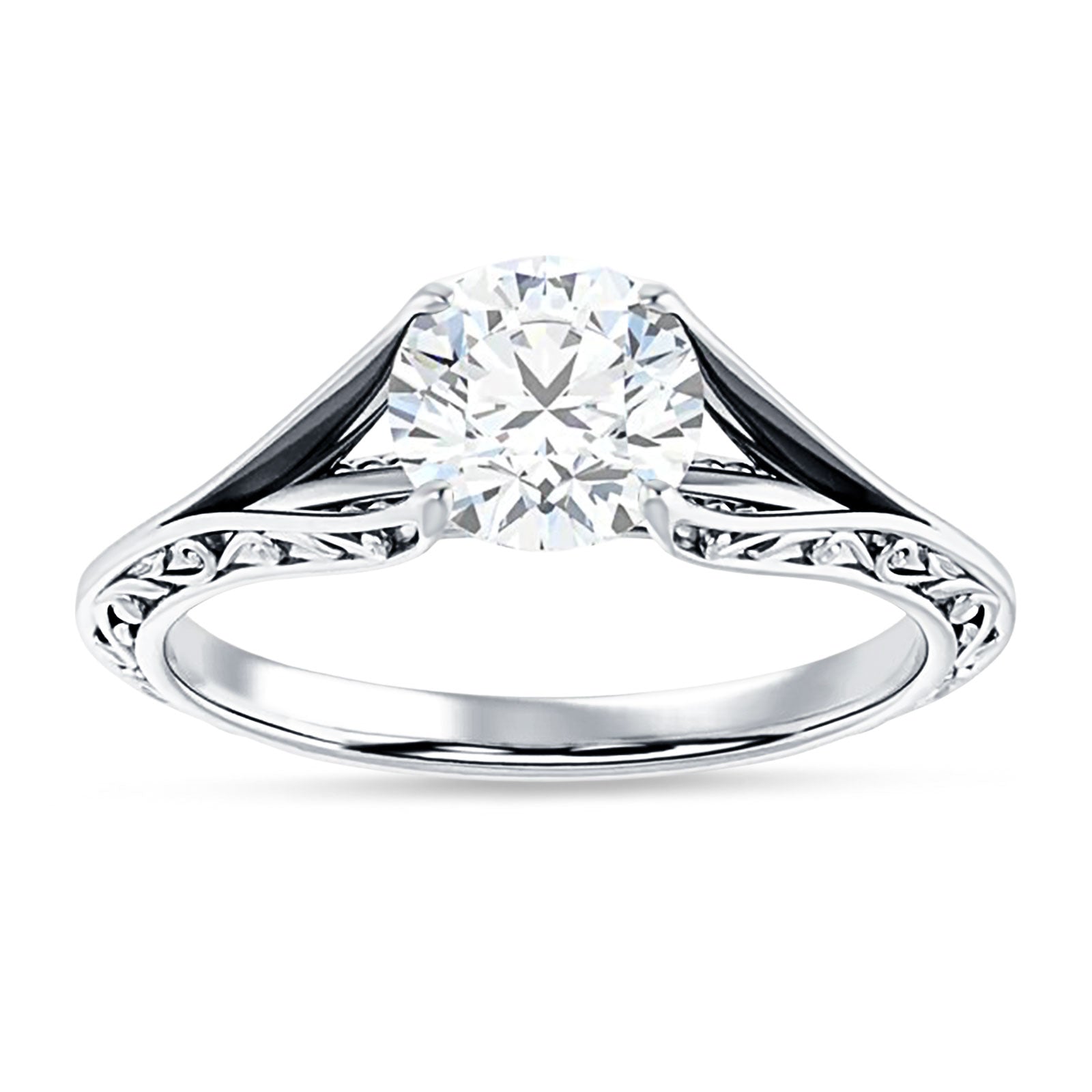 14K Gold IGI Certified Round 2 Carat Lab Grown Diamond Art Deco Split Shank Solitaire Ring