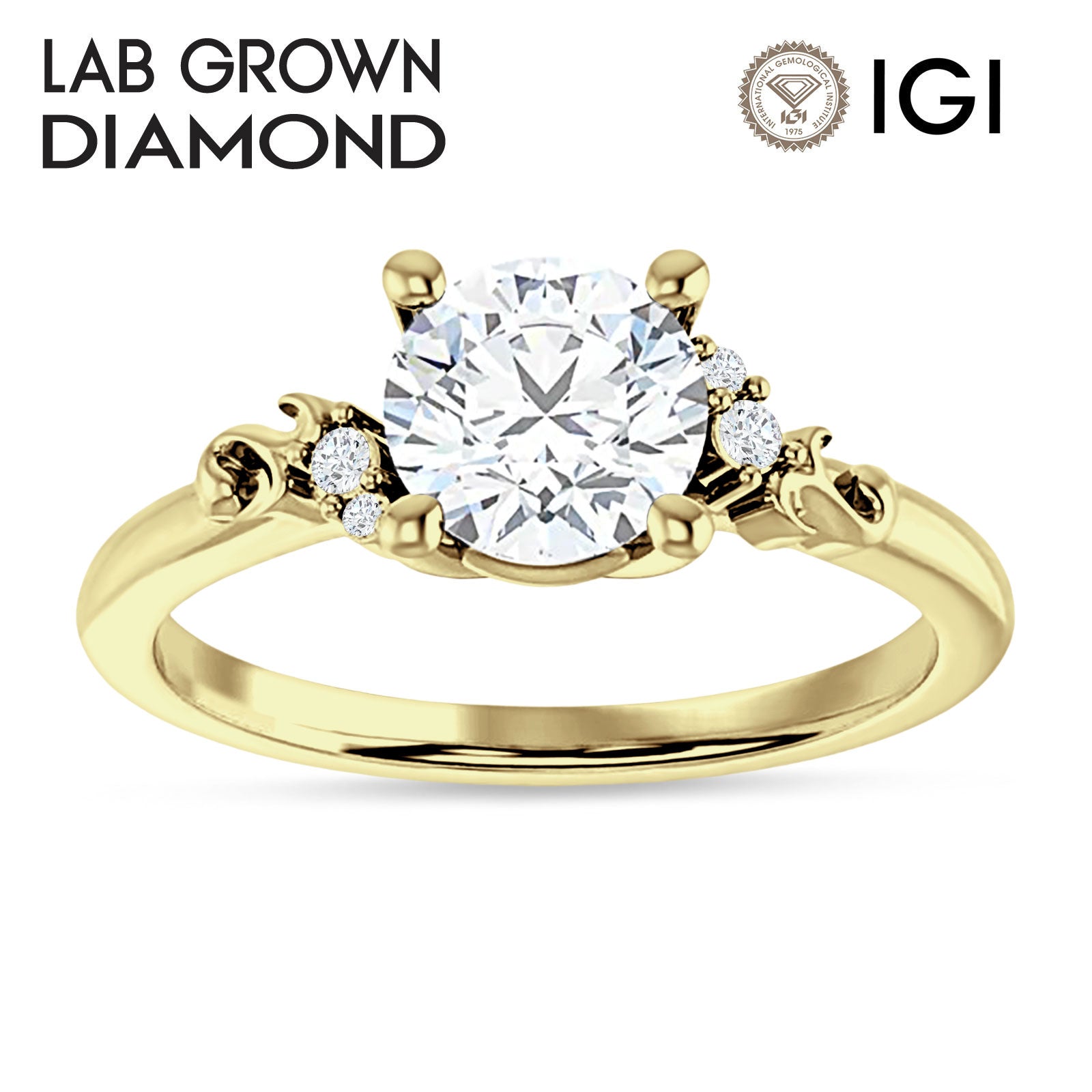 18K Gold IGI Certified Round 1 Carat Lab Grown Diamond Art Deco Ring