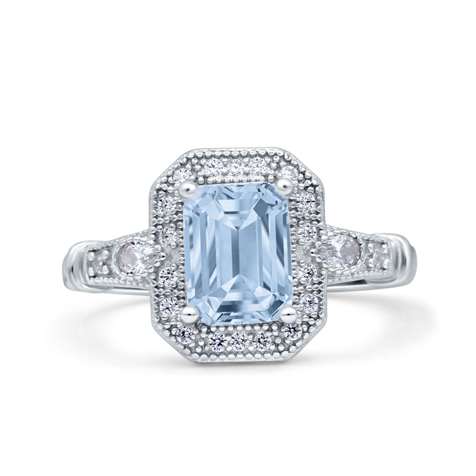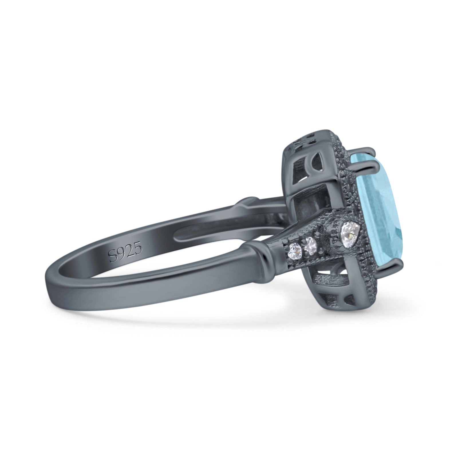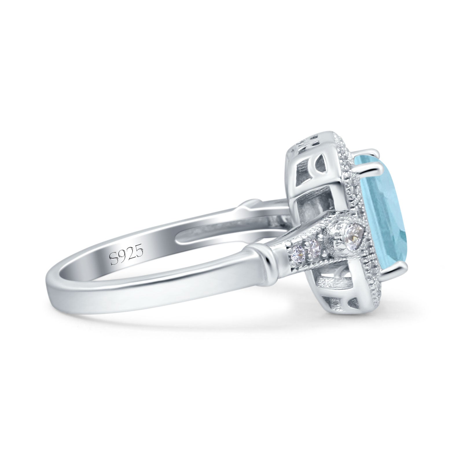 Minimalist 7.4mm Lab Created Blue Opal Ring 925 Sterling Silver