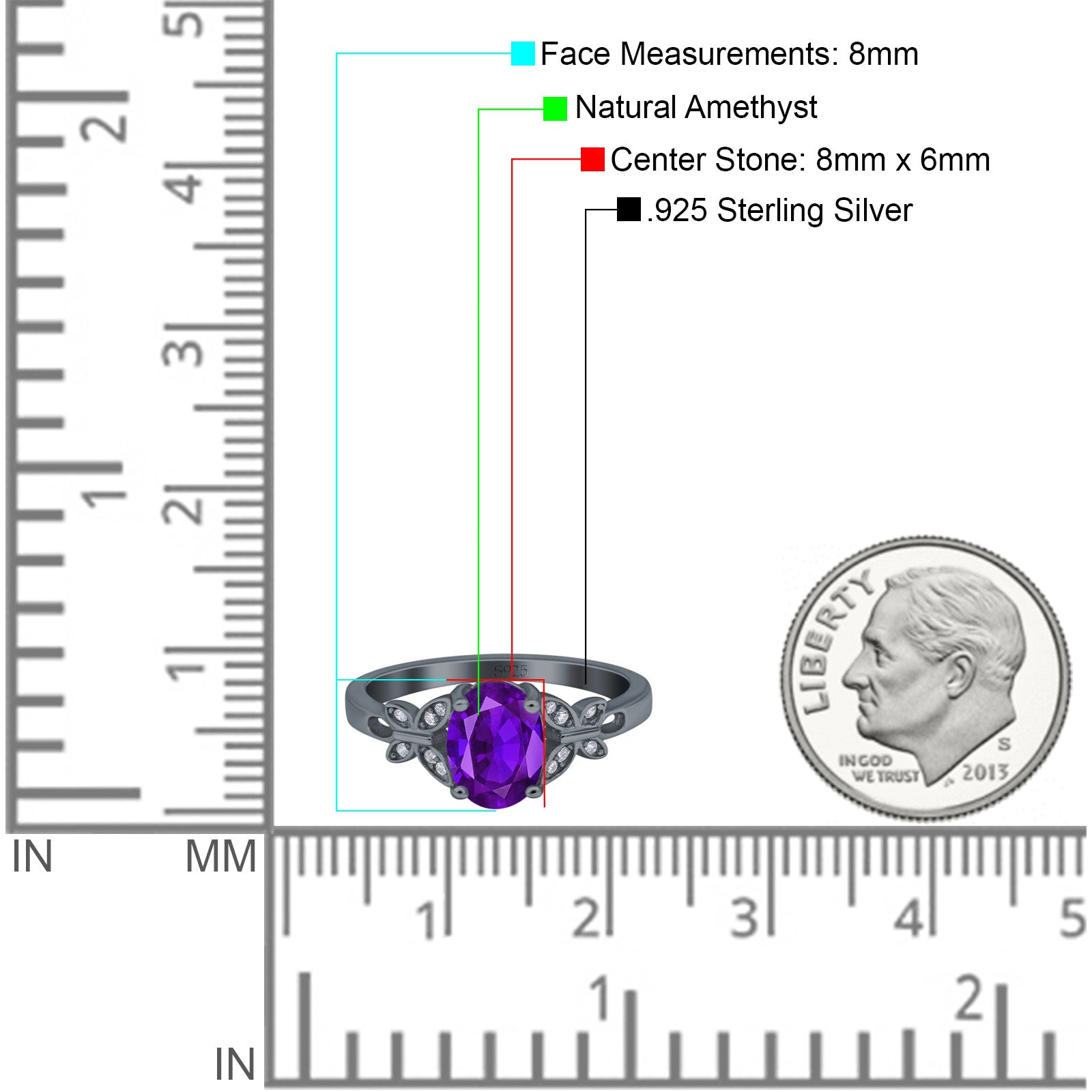 Center Stone Measurements:8mmx6mm.