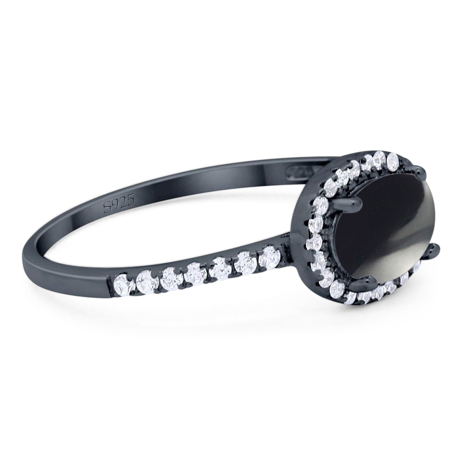 Minimalist 8mm Black Onyx Heart Ring 925 Sterling Silver