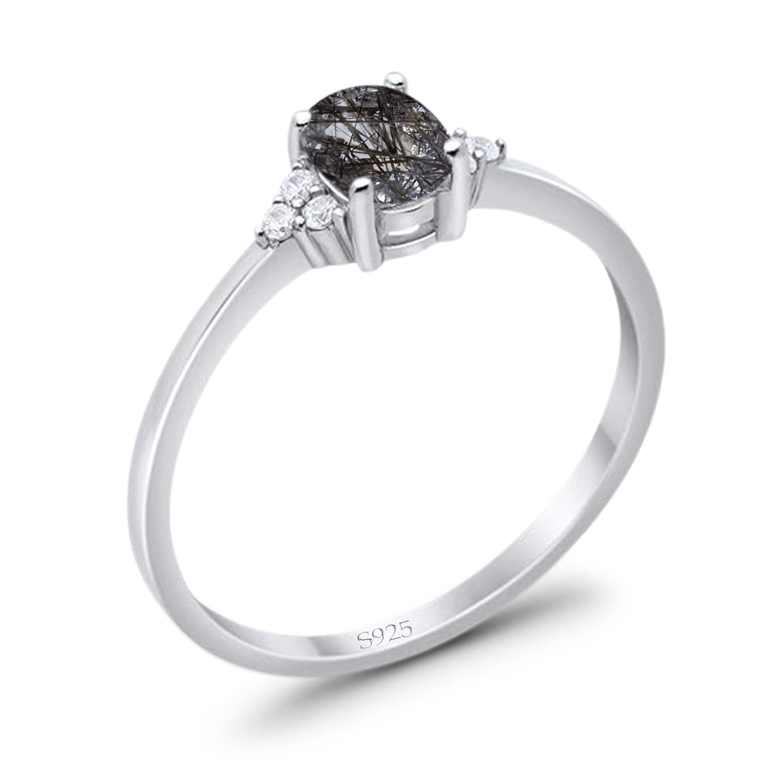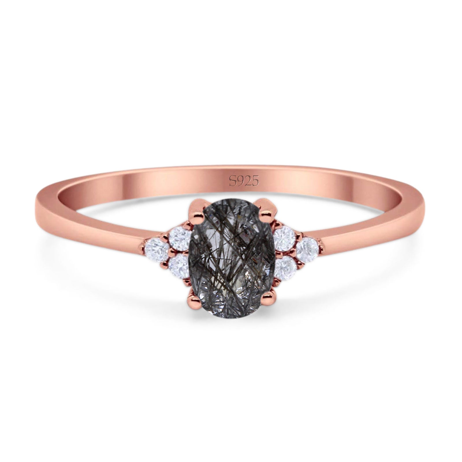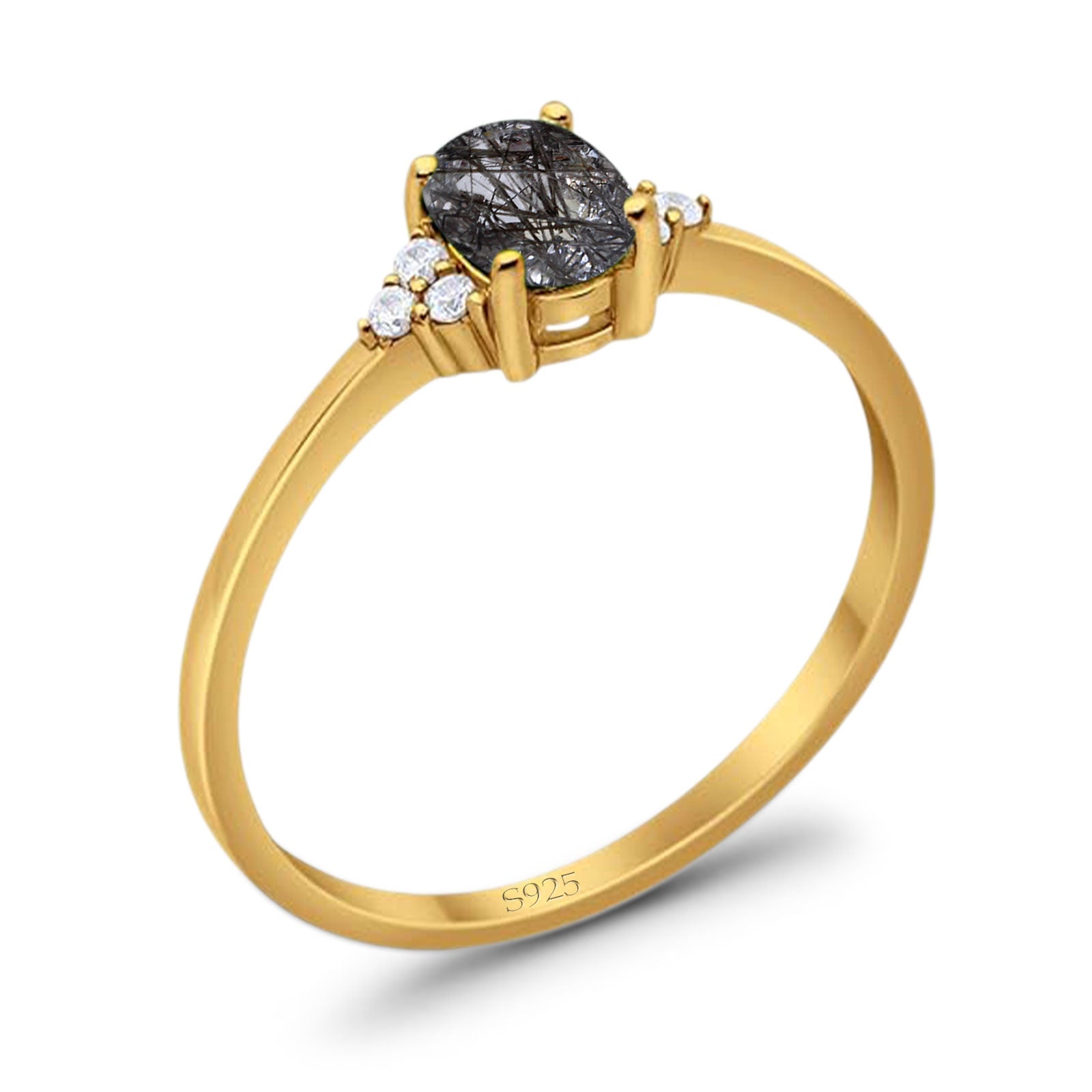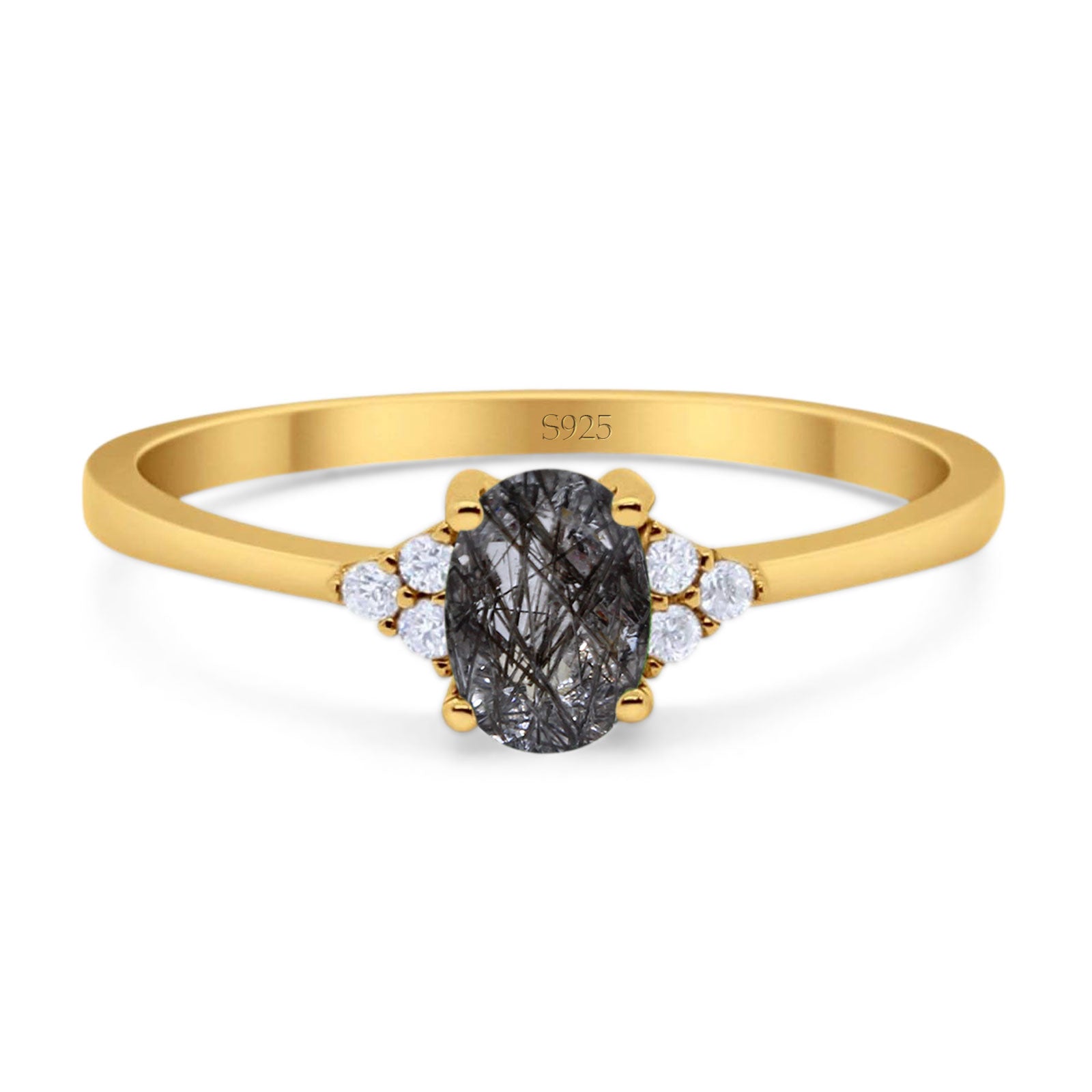 Art Deco Oval Natural Rutilated Quartz Wedding Ring 925 Sterling Silver