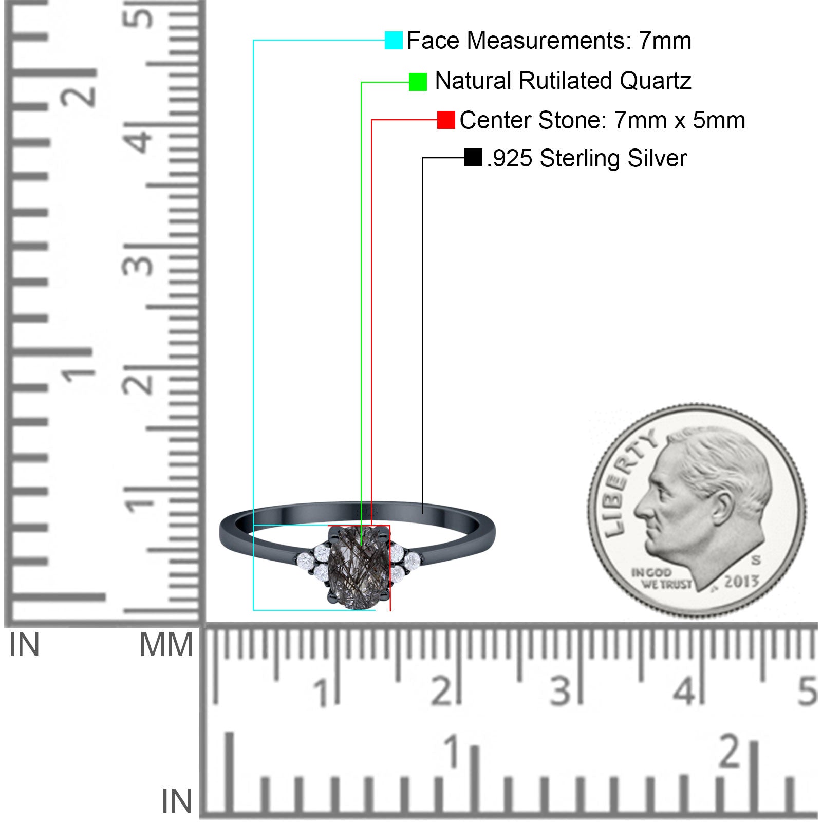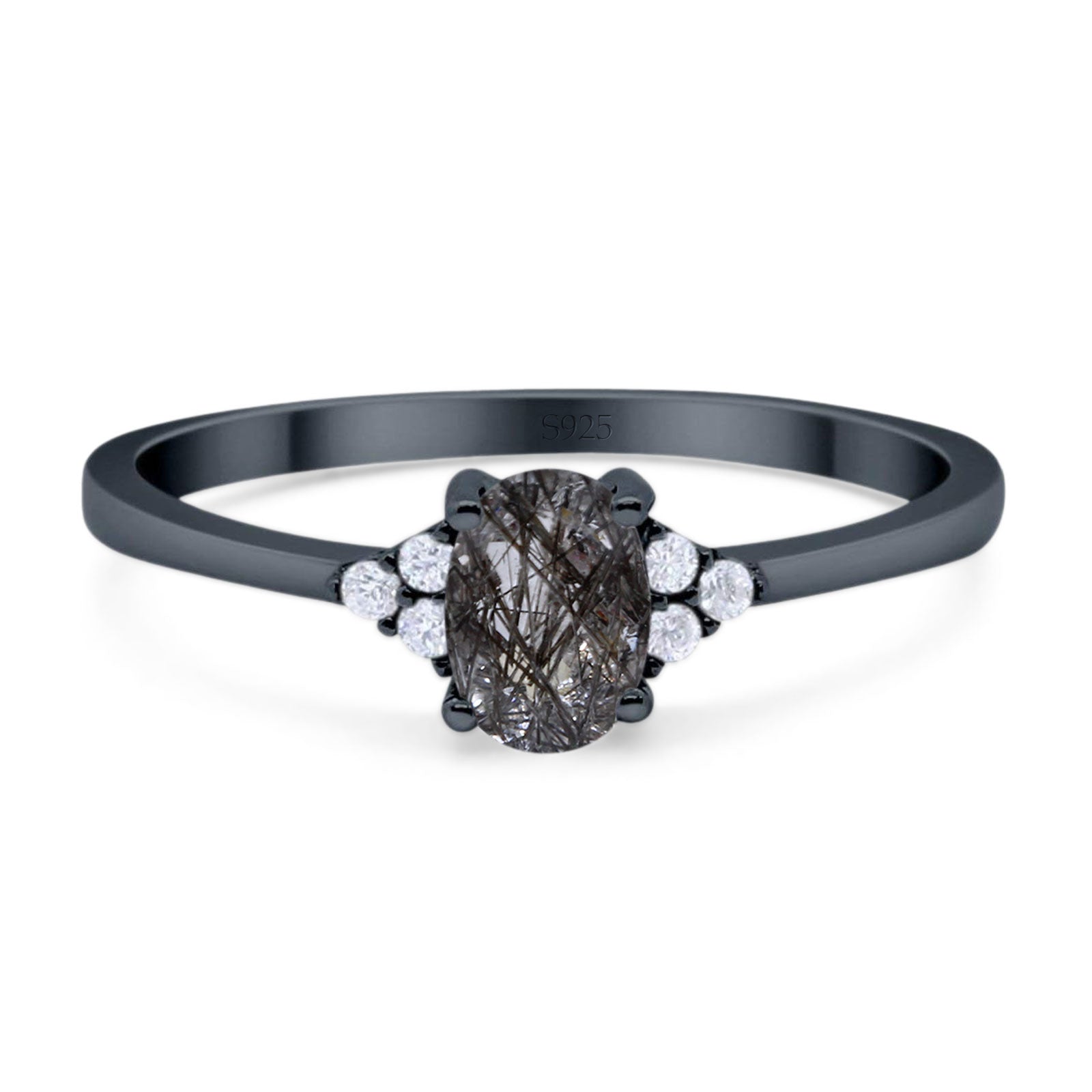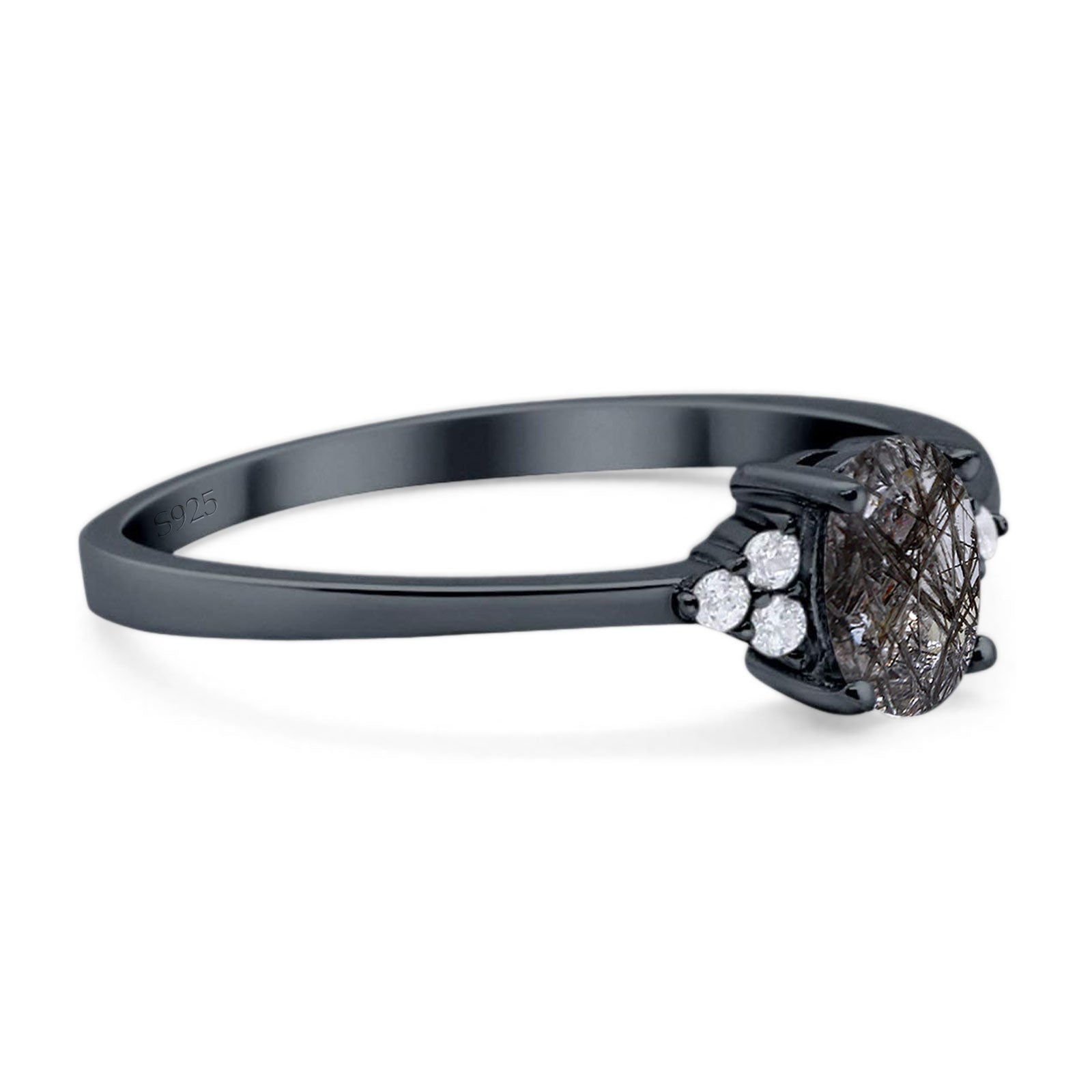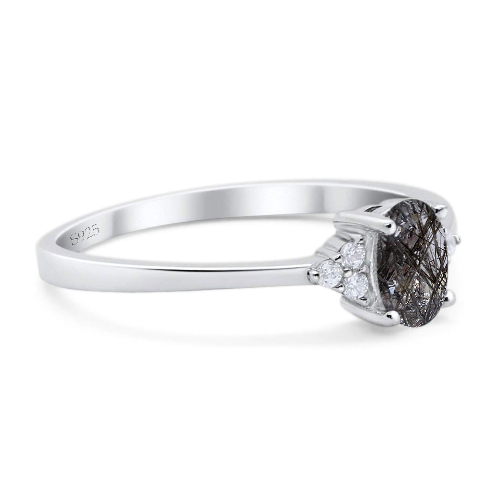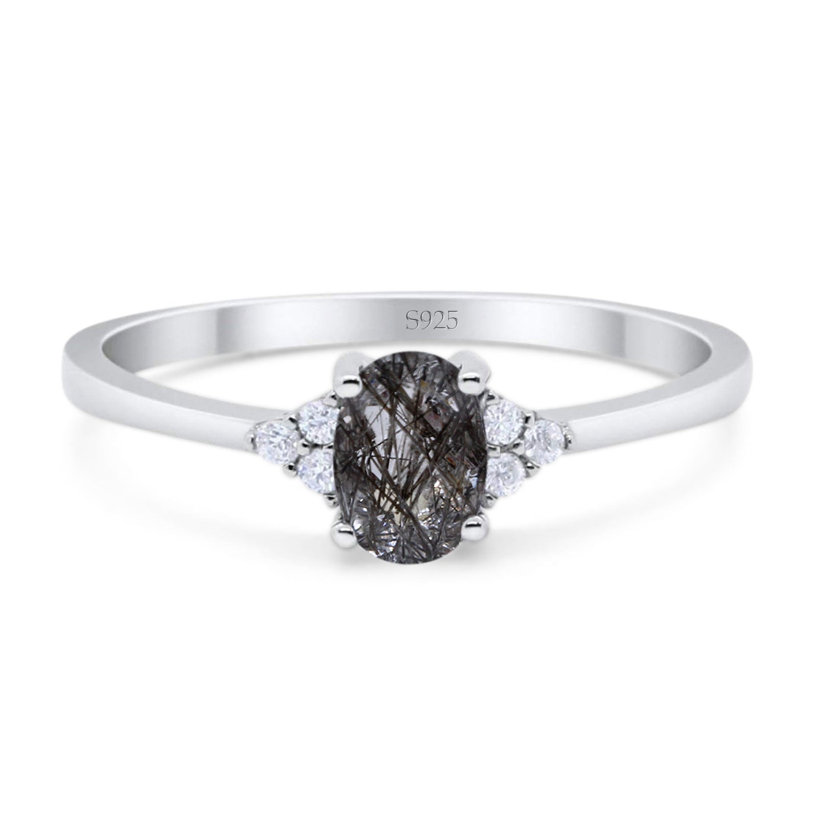 Art Deco Oval Natural Rutilated Quartz Wedding Ring 925 Sterling Silver