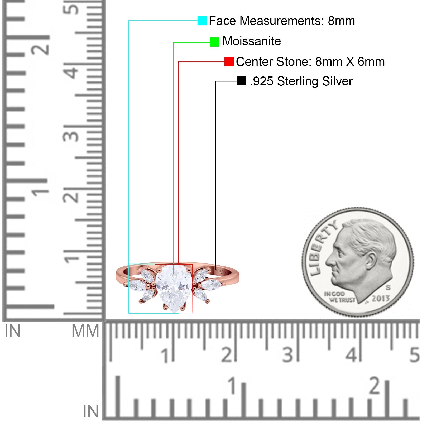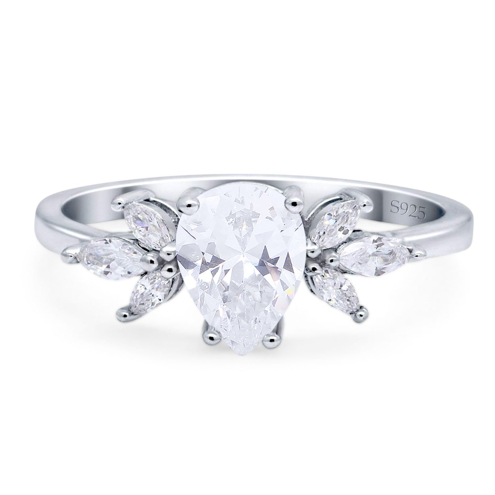 Art Deco Pear Teardrop Moissanite Wedding Ring 925 Sterling Silver