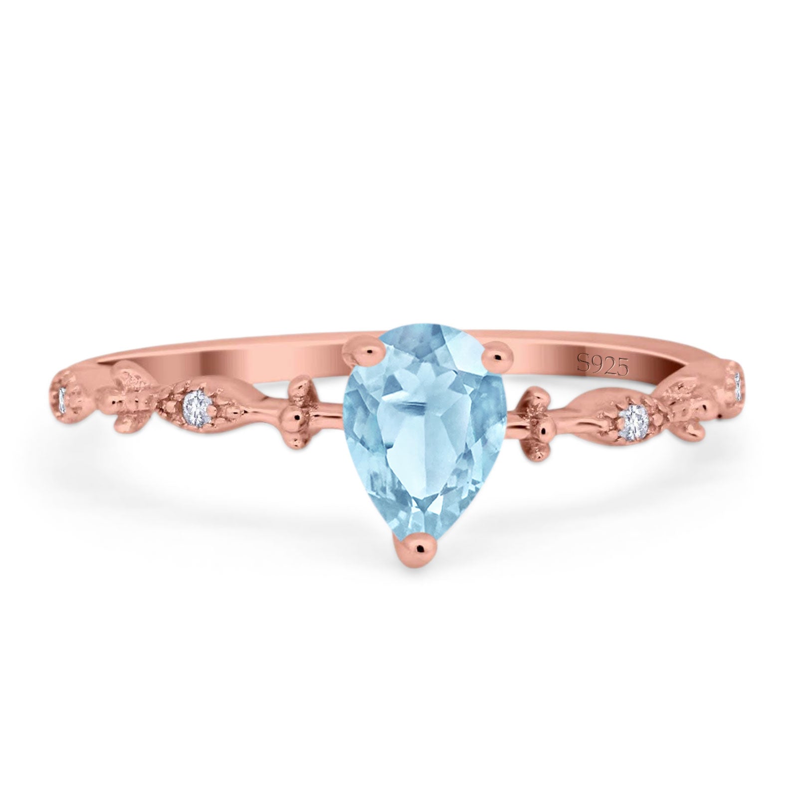CZ & Blue Sapphire CZ Rose Tone Silver