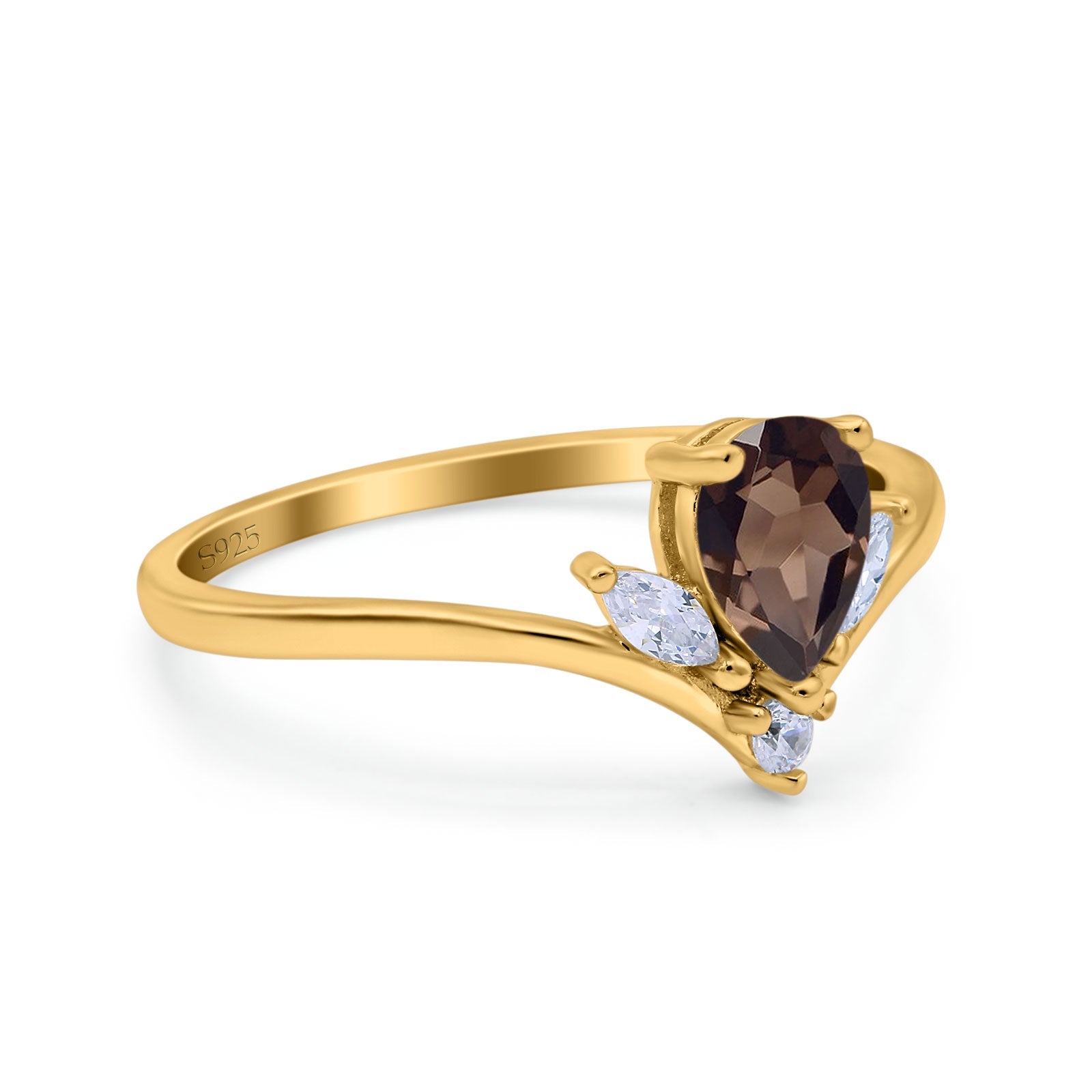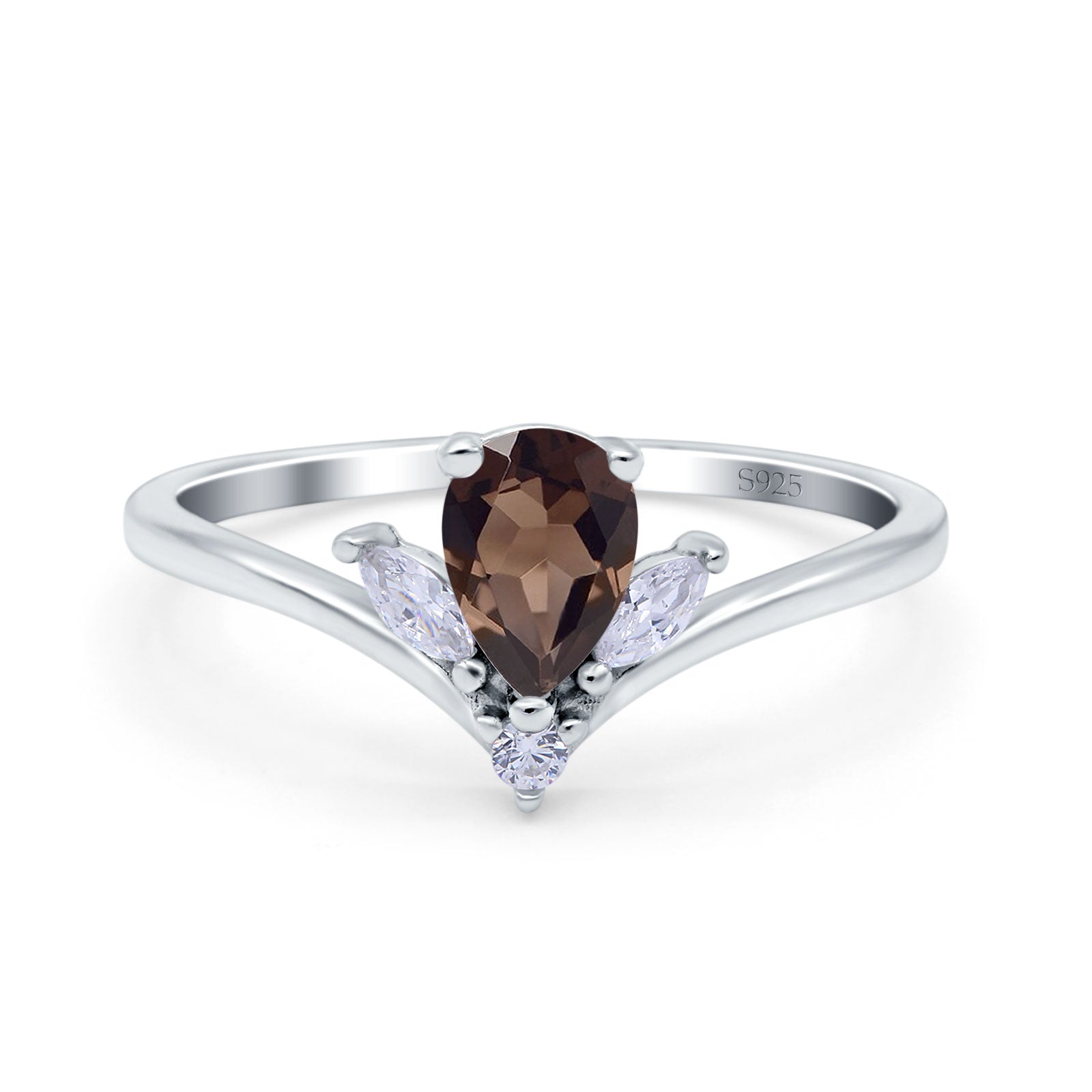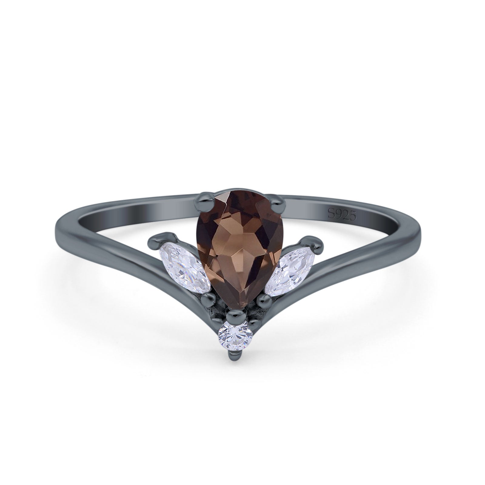 Art Deco Pear Teardrop Natural Chocolate Smoky Quartz Chevron Ring 925 Sterling Silver
