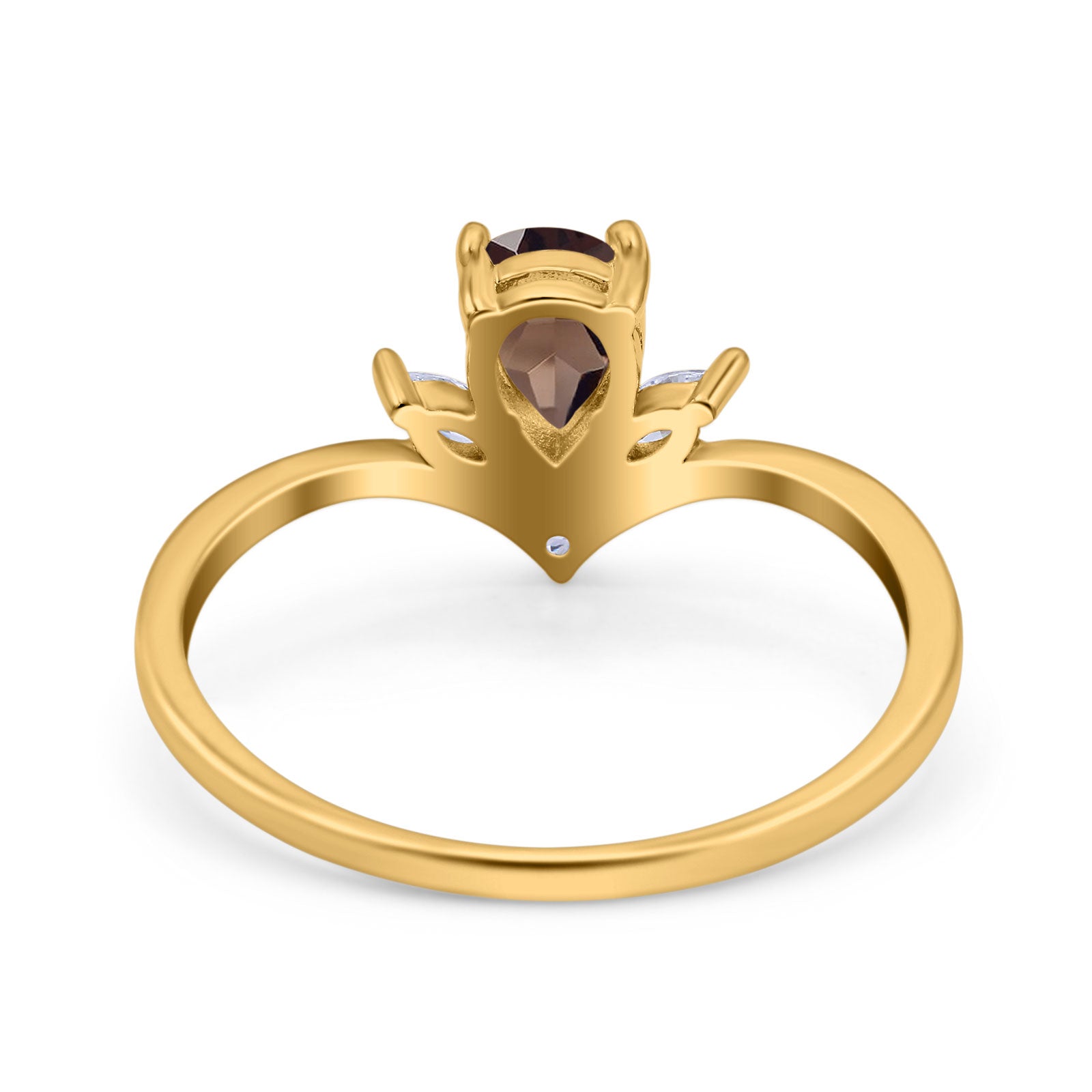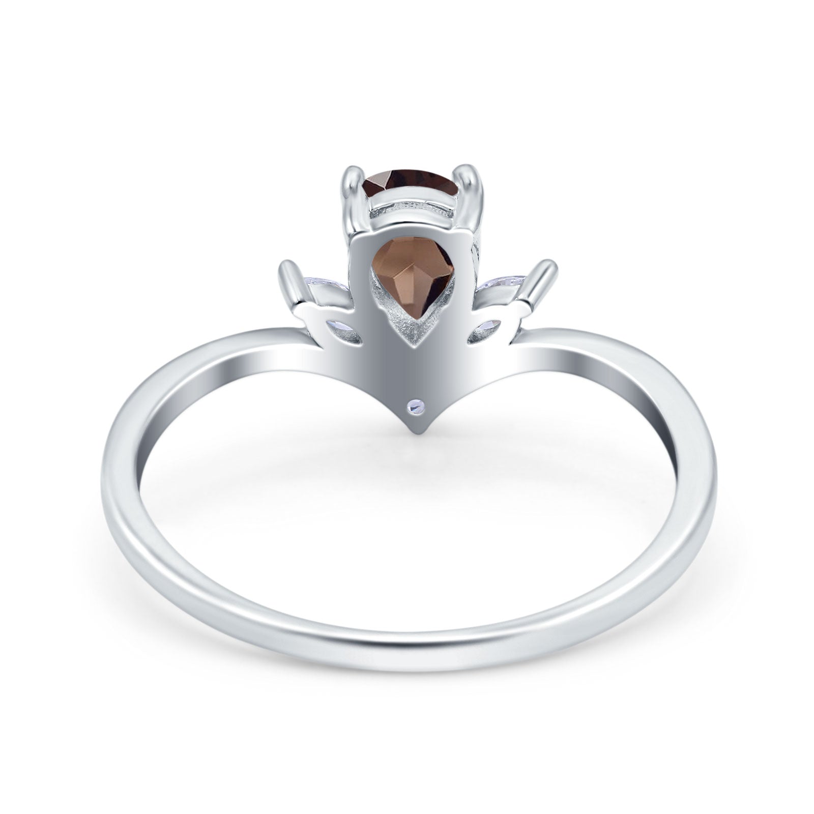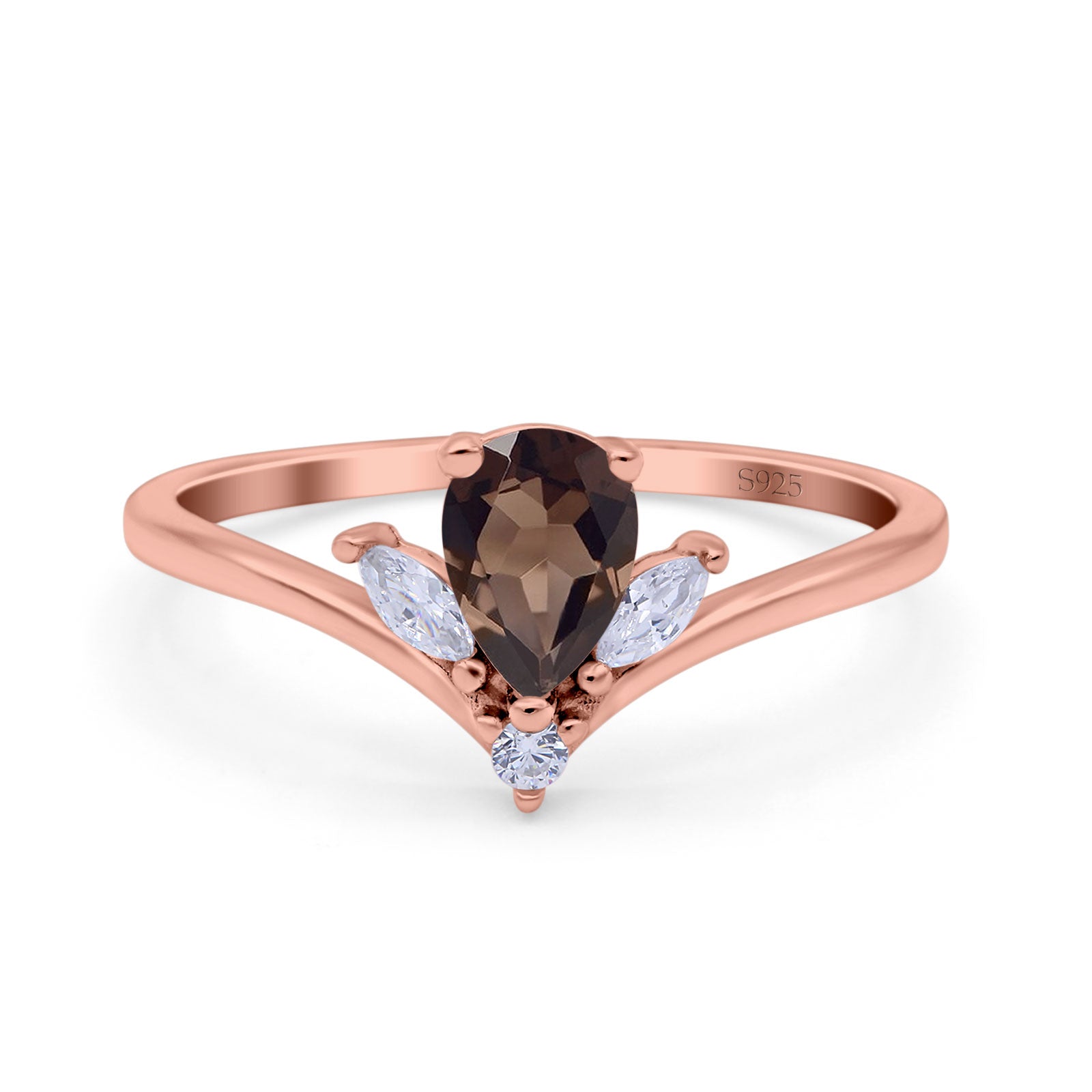 Art Deco Pear Teardrop Natural Chocolate Smoky Quartz Chevron Ring 925 Sterling Silver