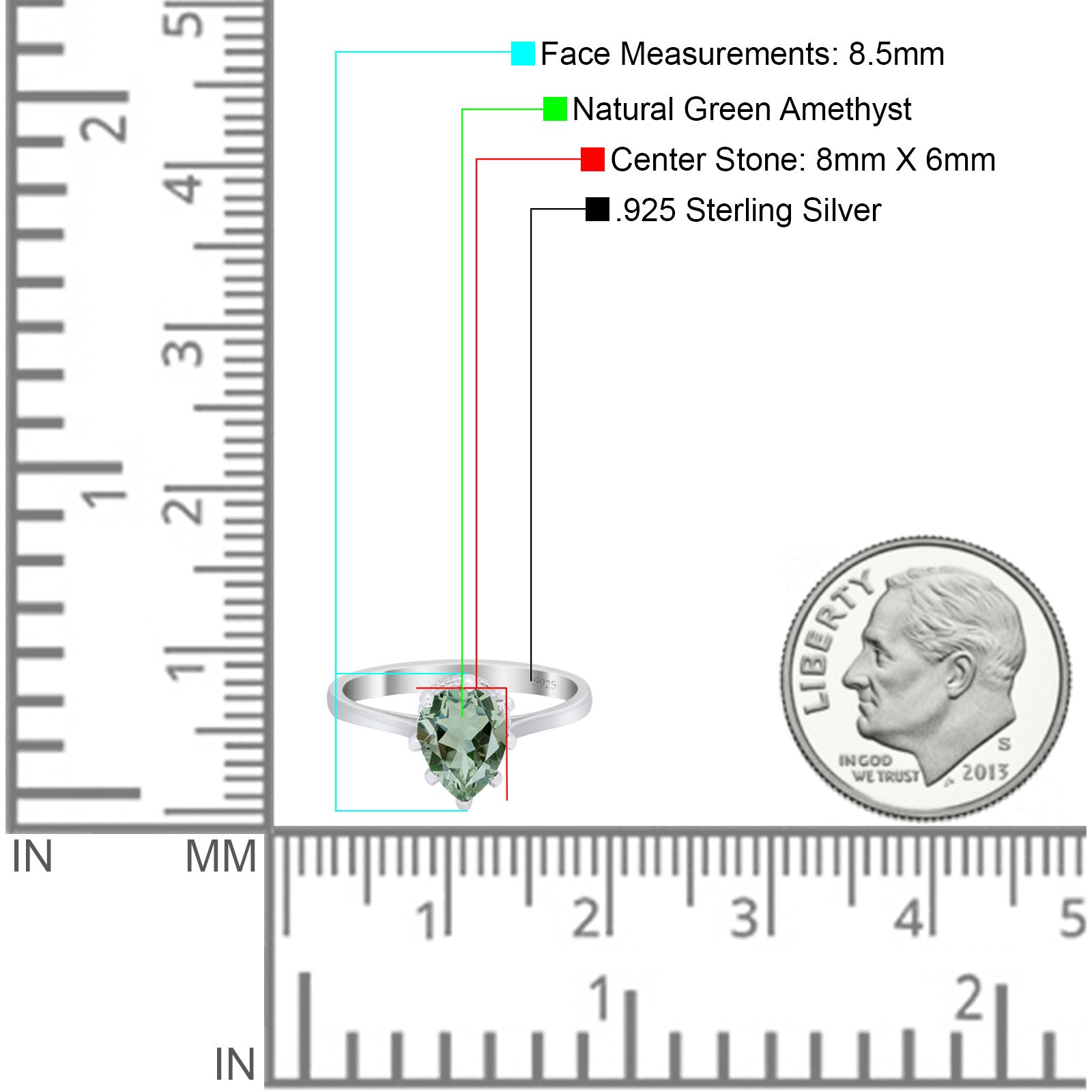 Center Stone Measurements:8mmx6mm.