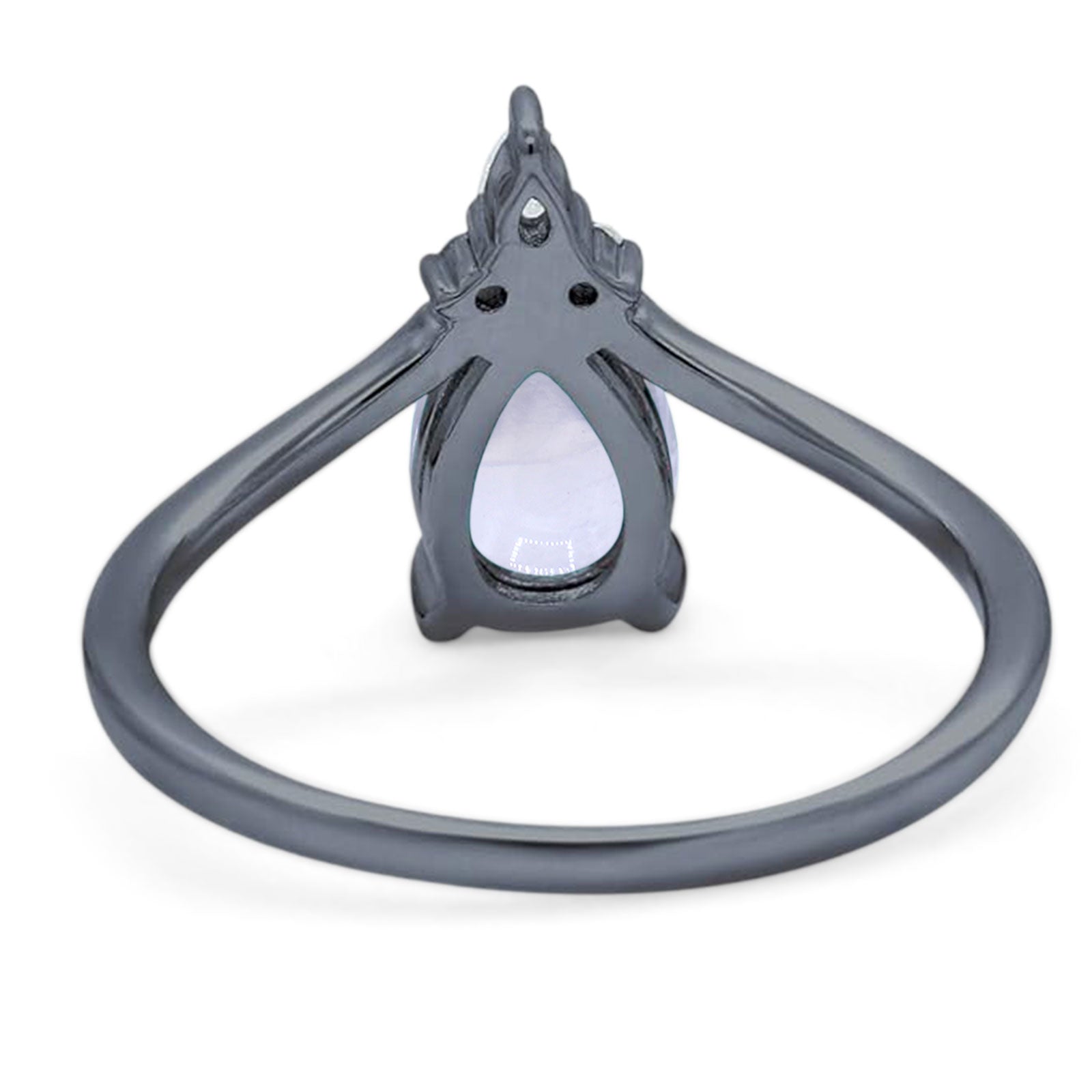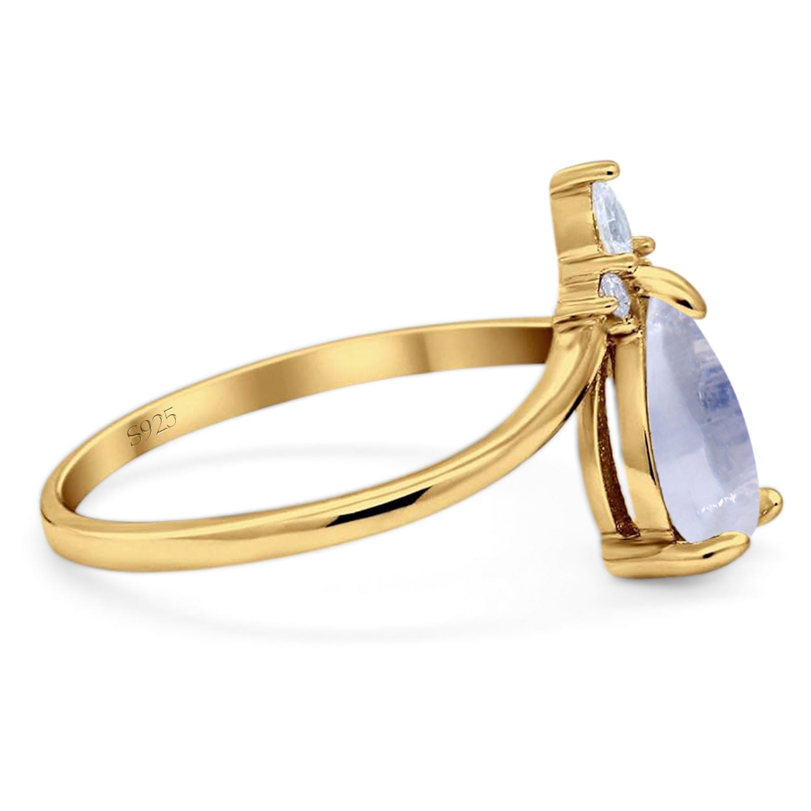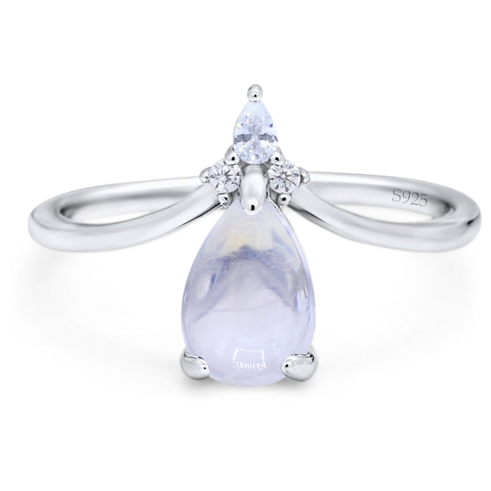 Art Deco Pear Teardrop Natural Moonstone Chevron Ring 925 Sterling Silver