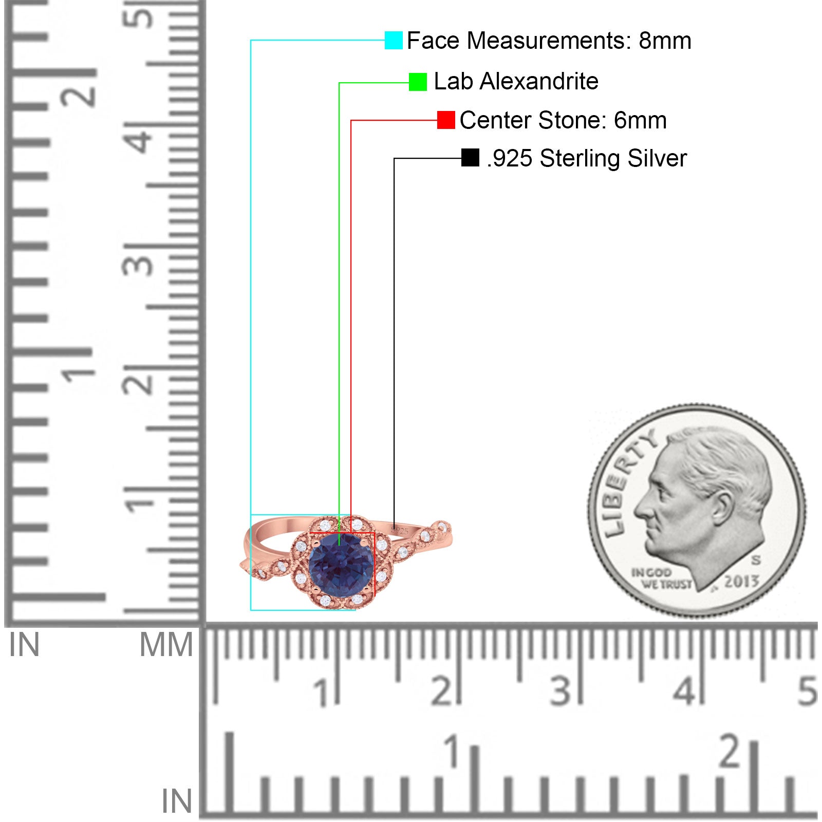 Center Stone Measurements: 6mm(0.23").
