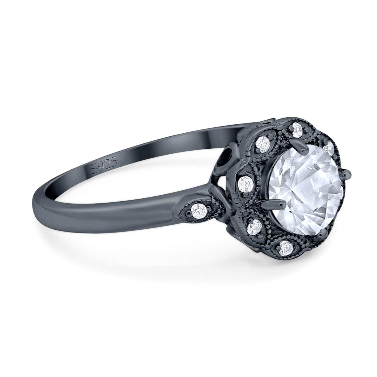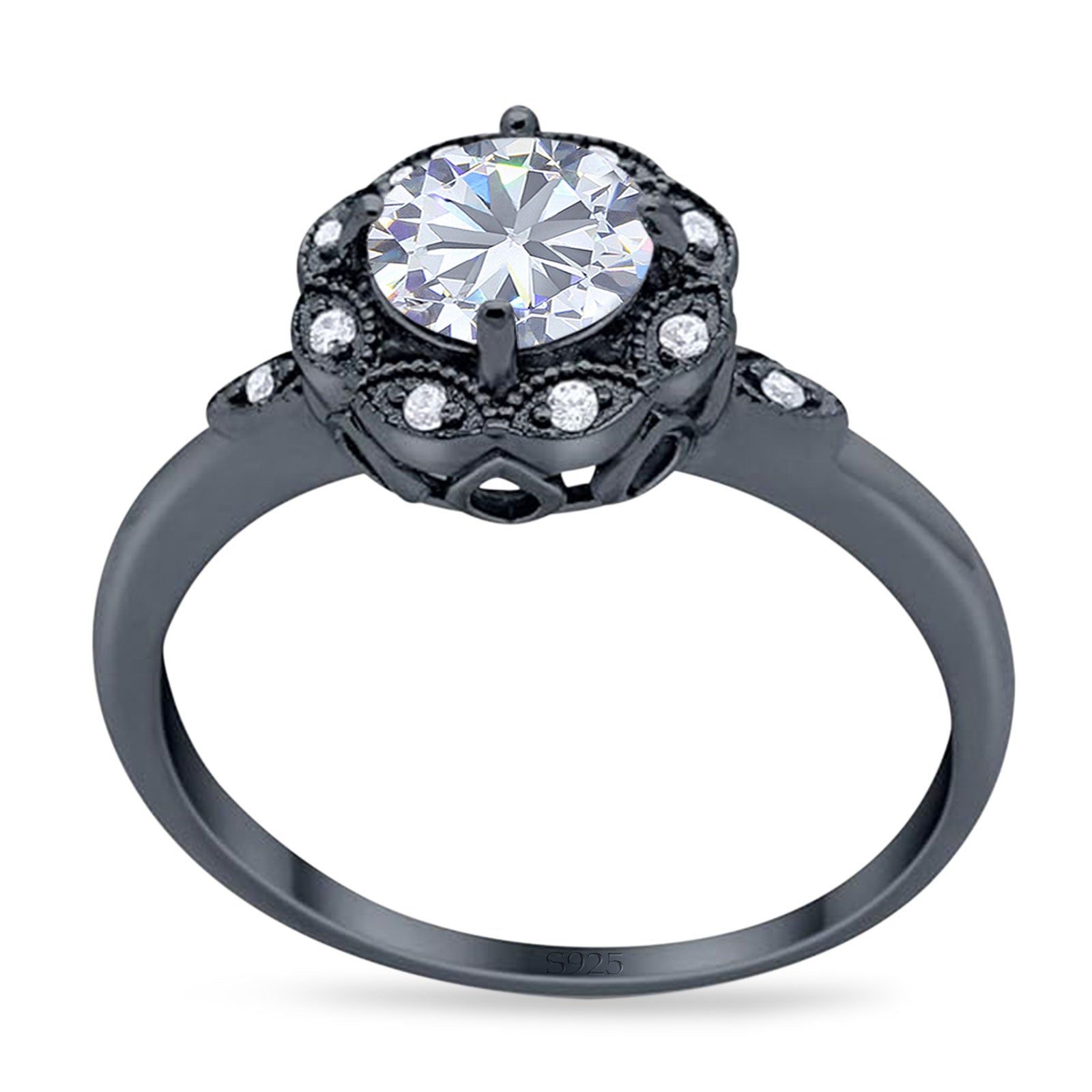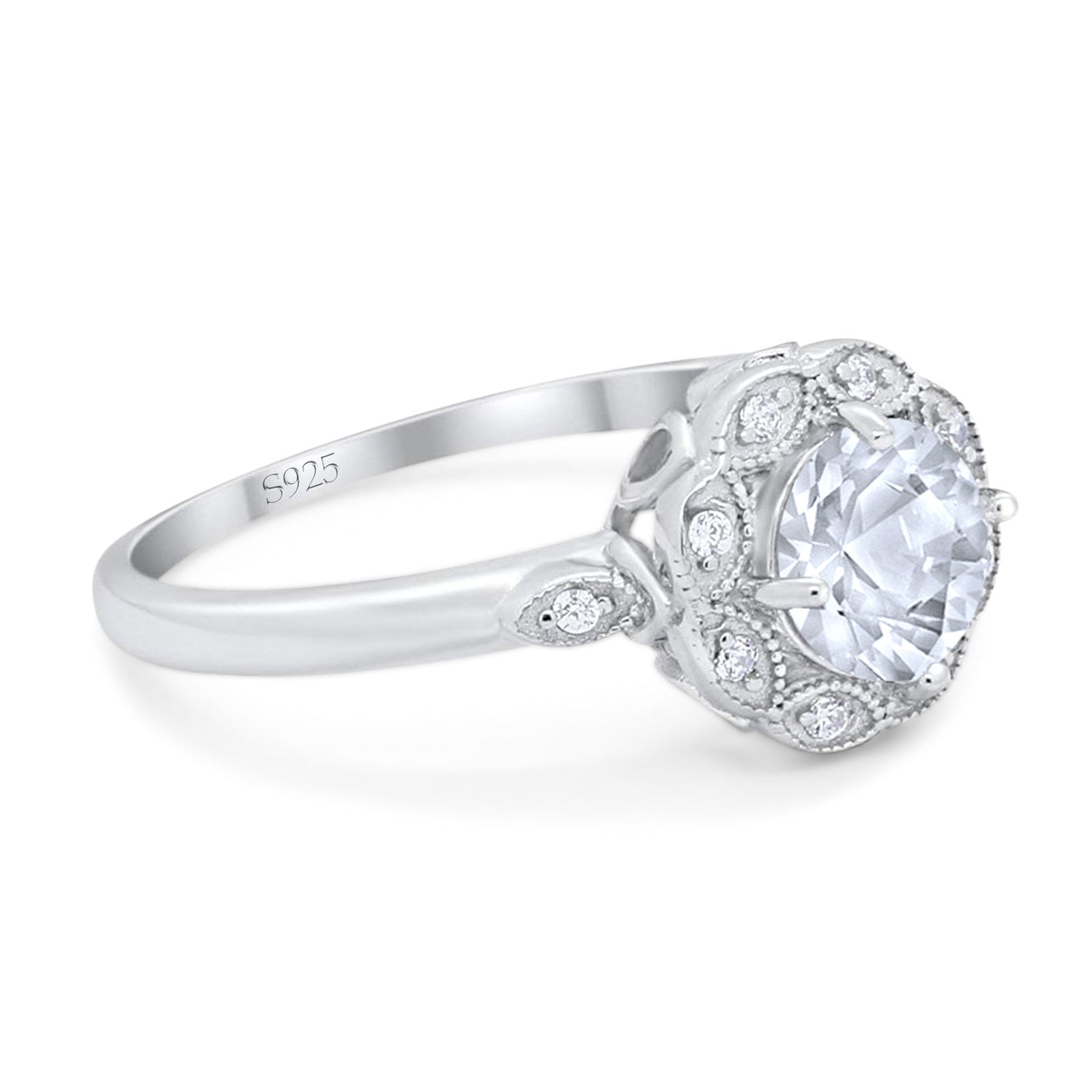 Art Deco Ring Round Moissanite Flower Ring 925 Sterling Silver