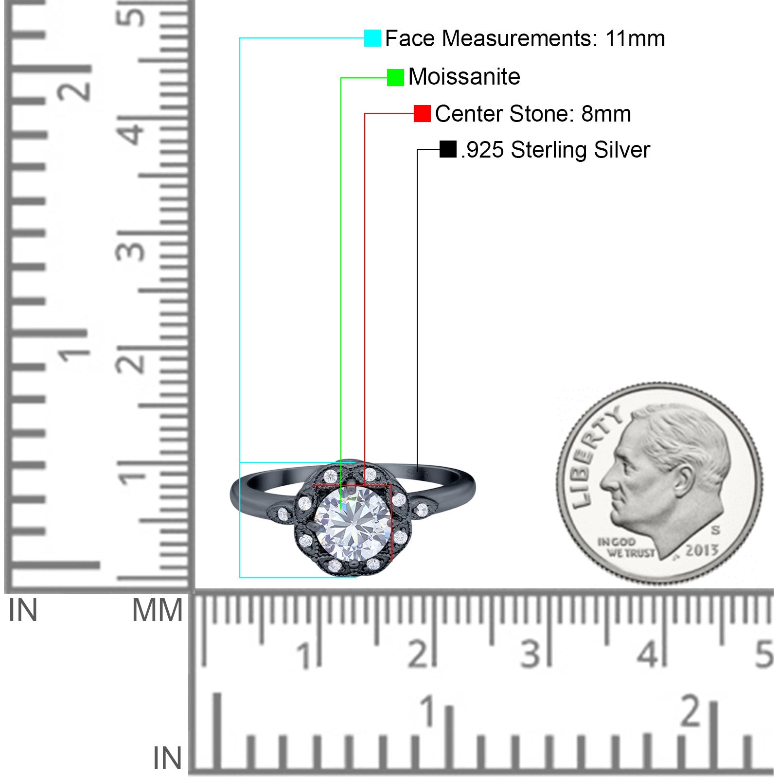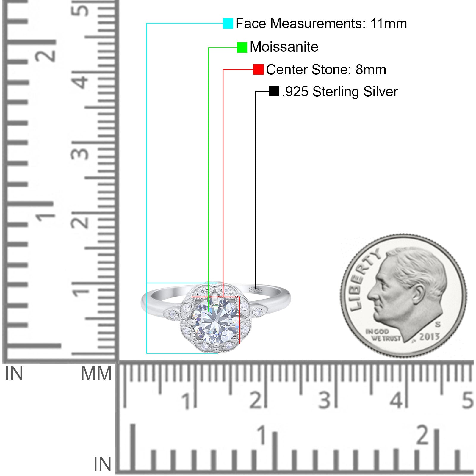 Center Stone Measurements: 8mm(0.31").