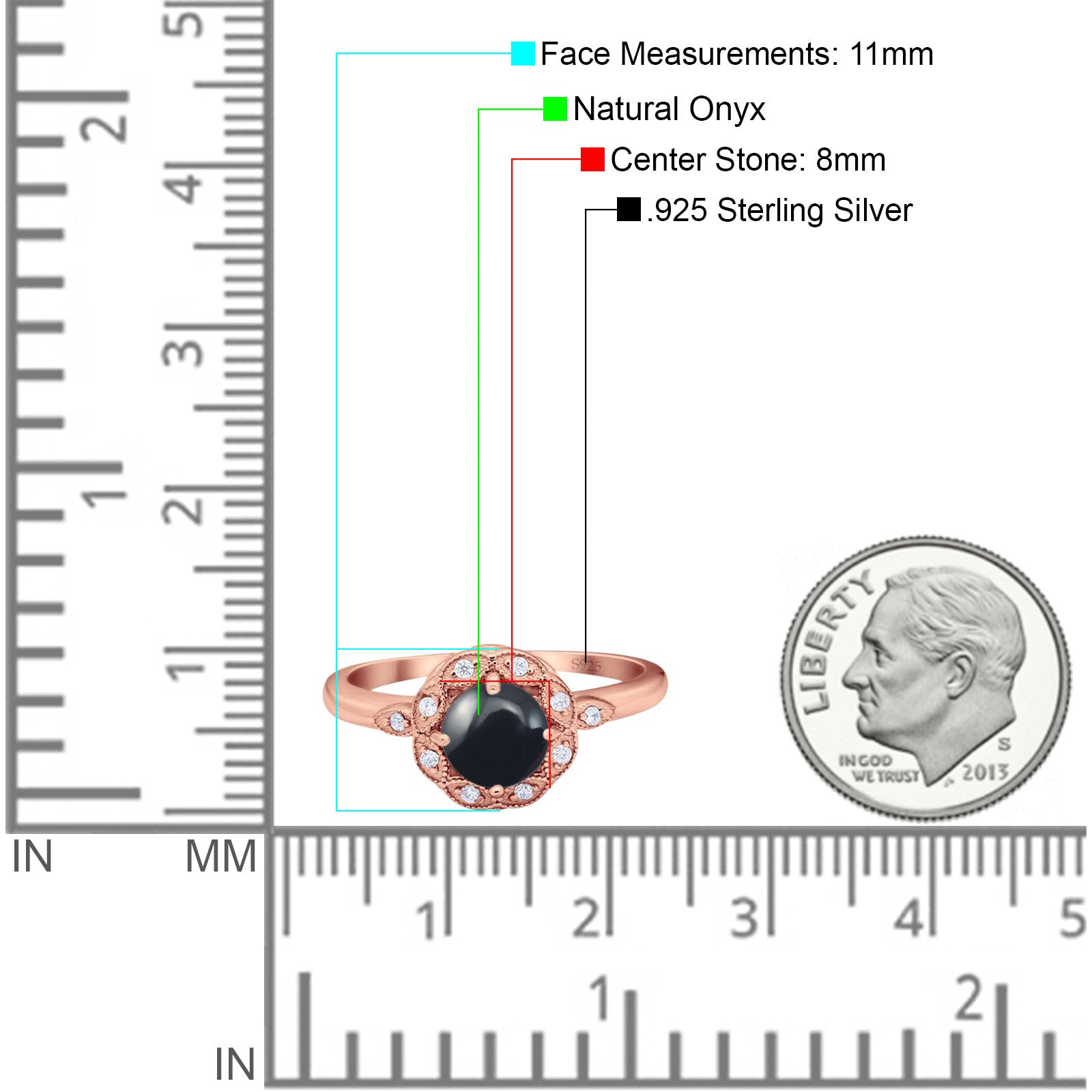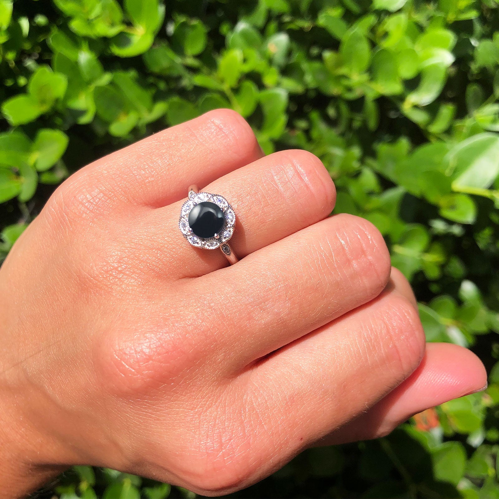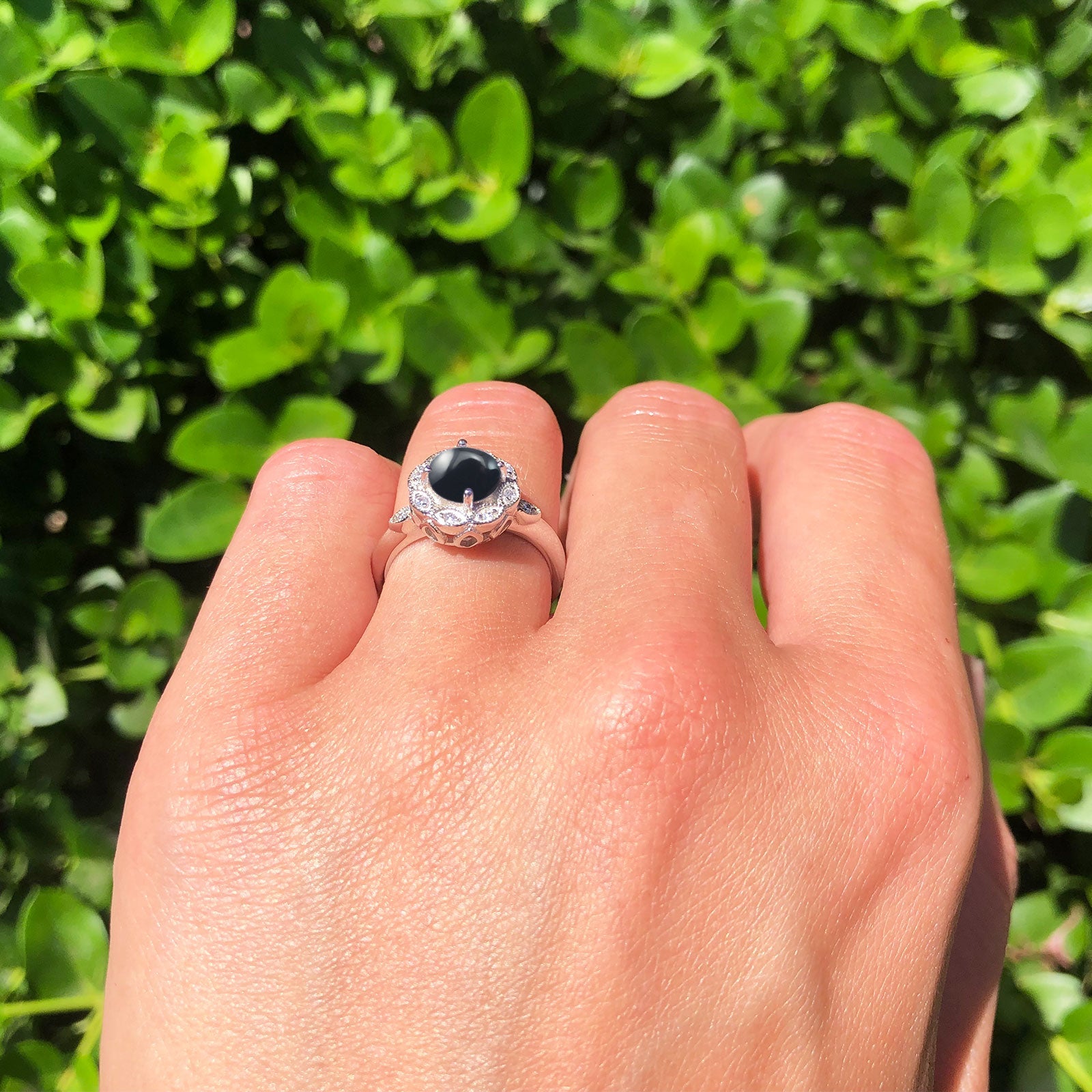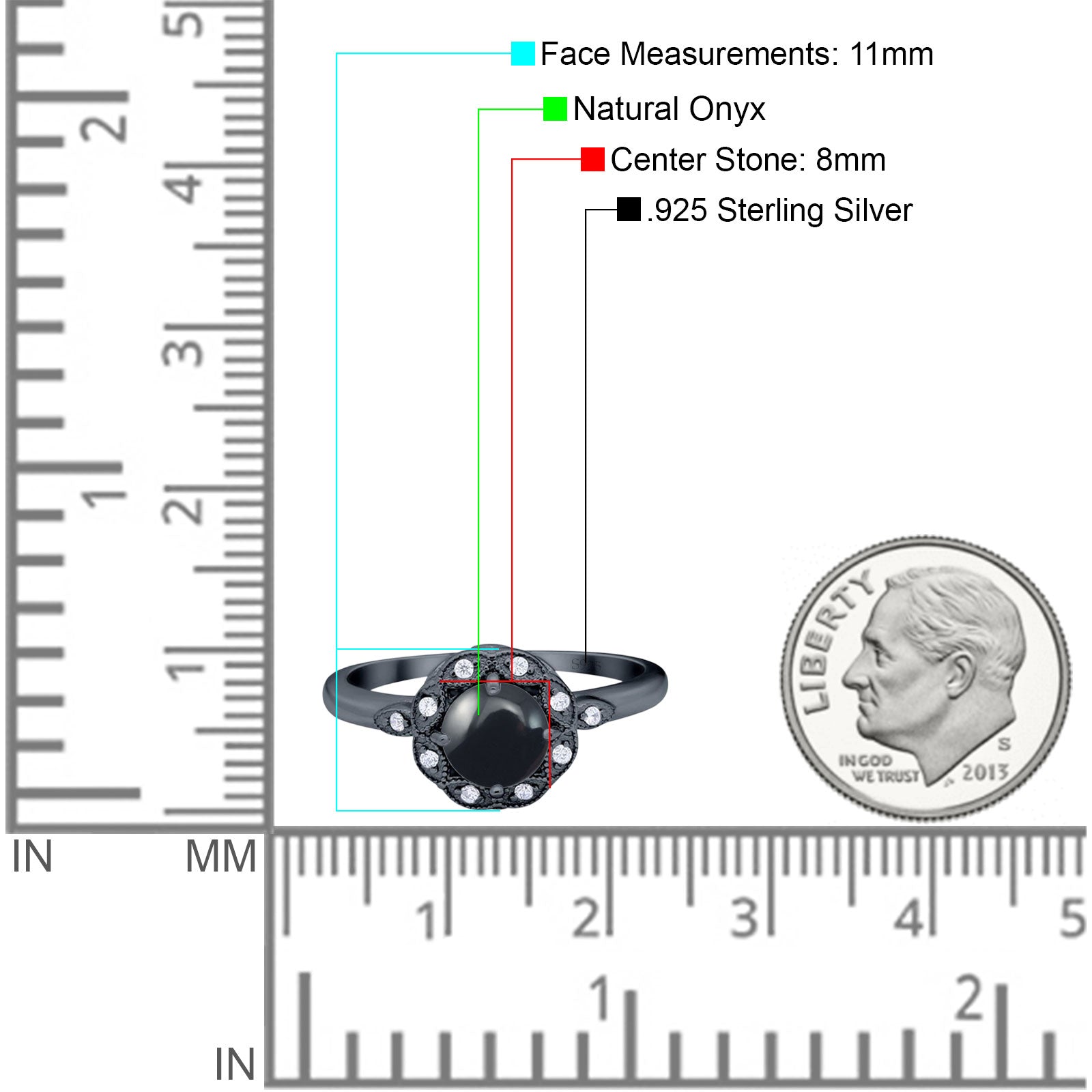 Minimalist 8mm Black Onyx Heart Ring 925 Sterling Silver