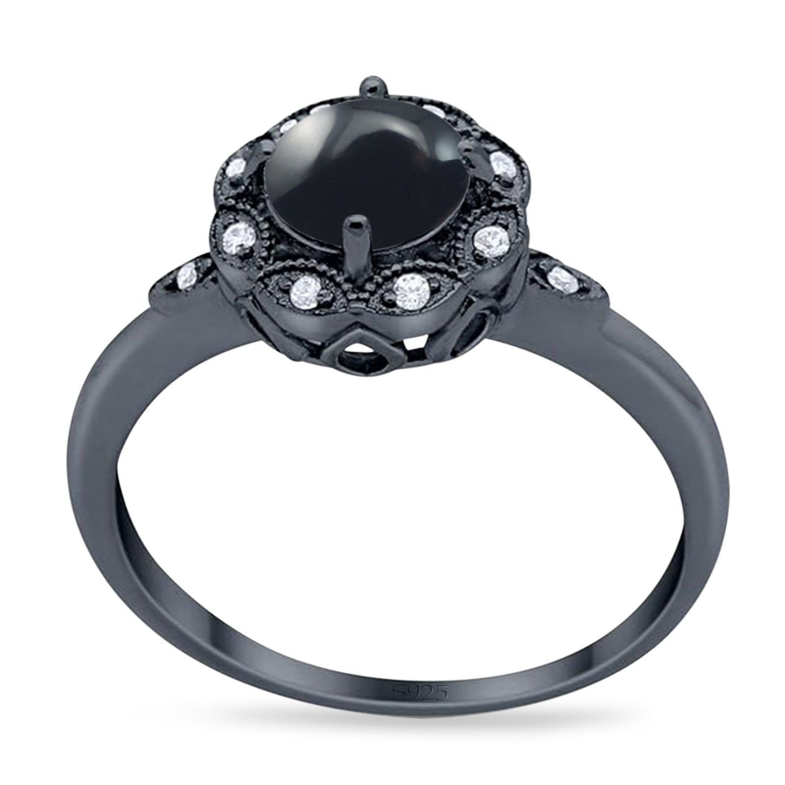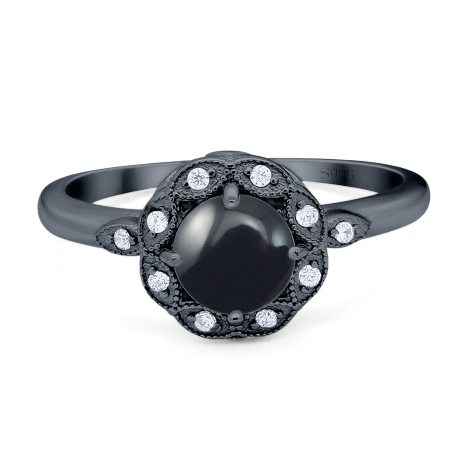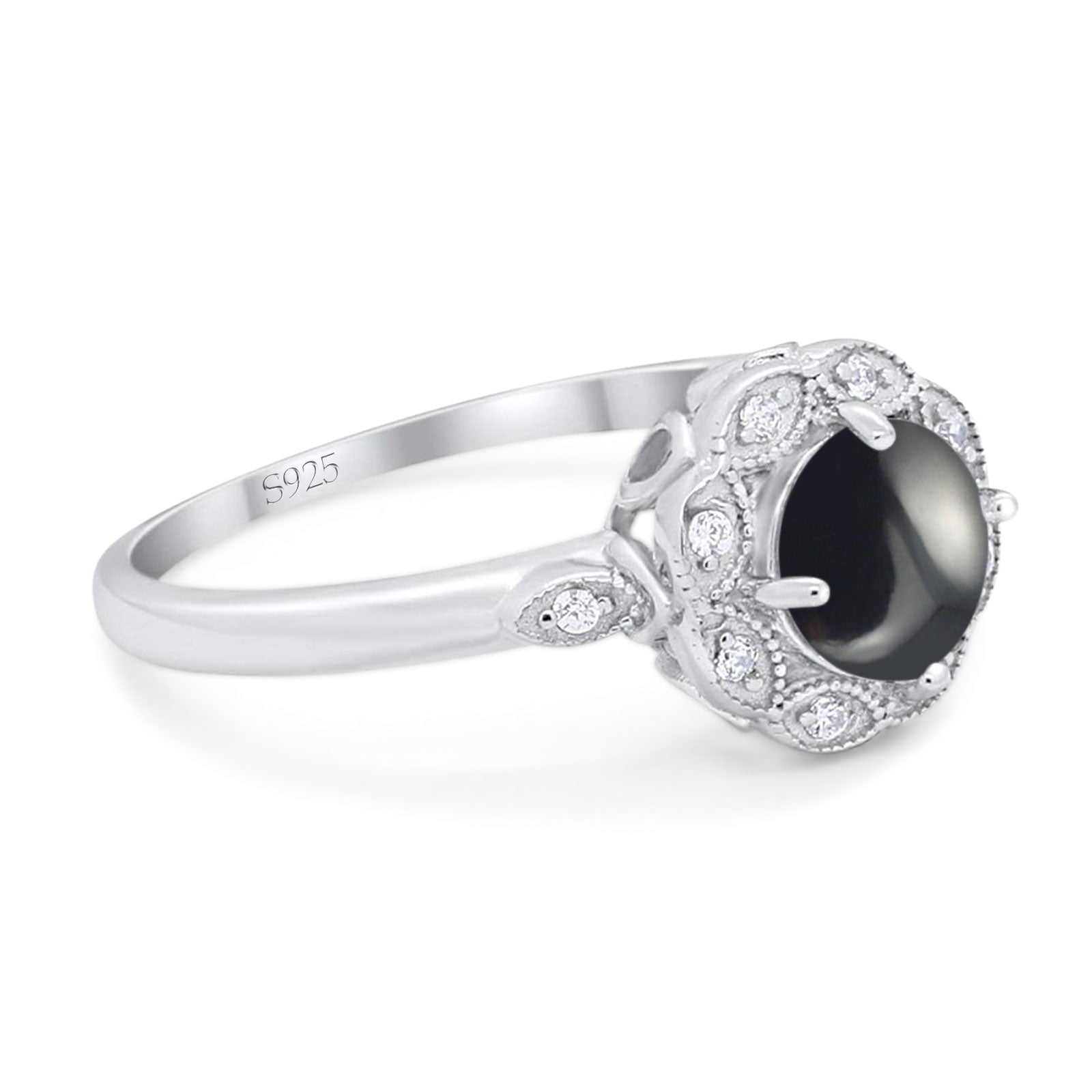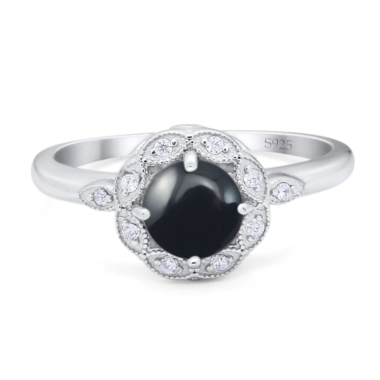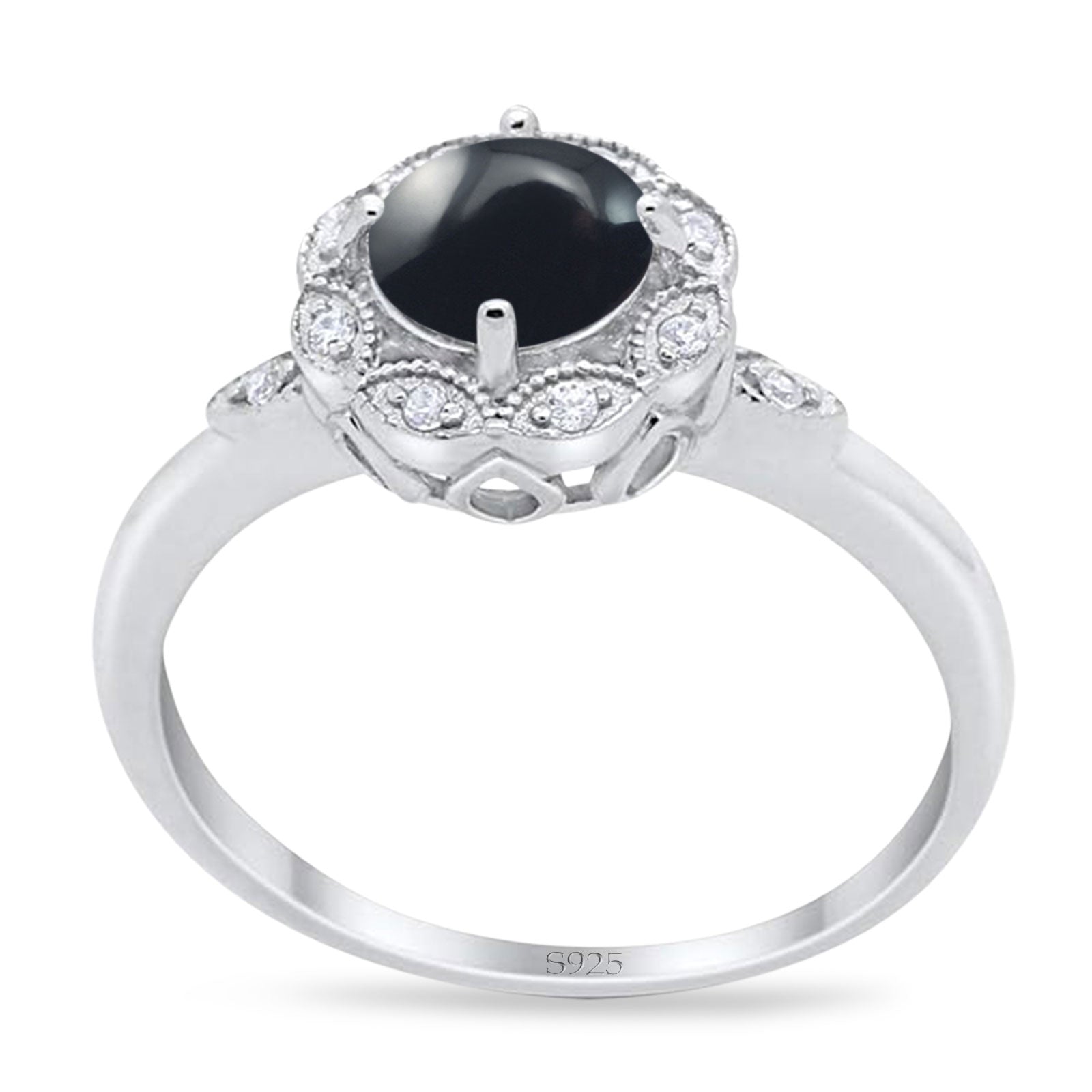Minimalist 8mm Black Onyx Heart Ring 925 Sterling Silver