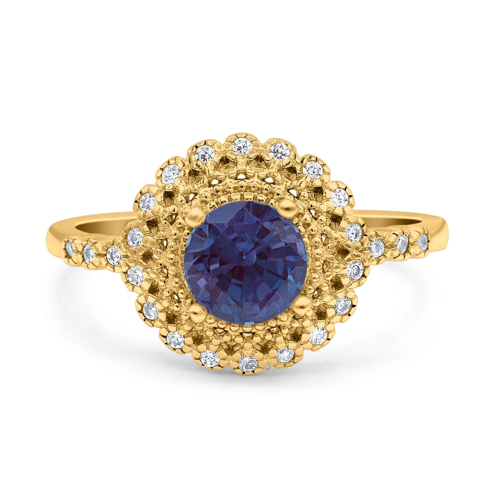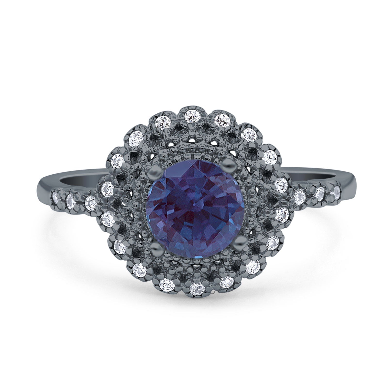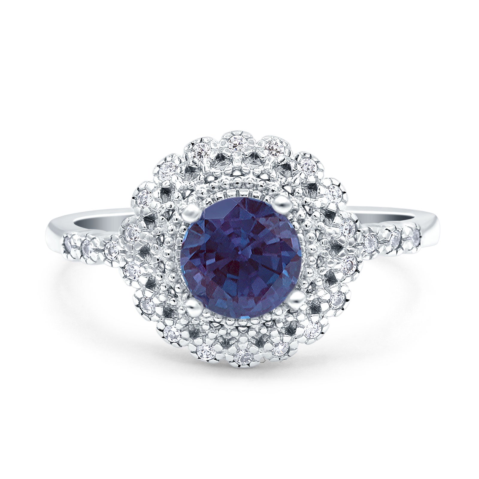 Art Deco Round Lab Alexandrite Flower Ring 925 Sterling Silver