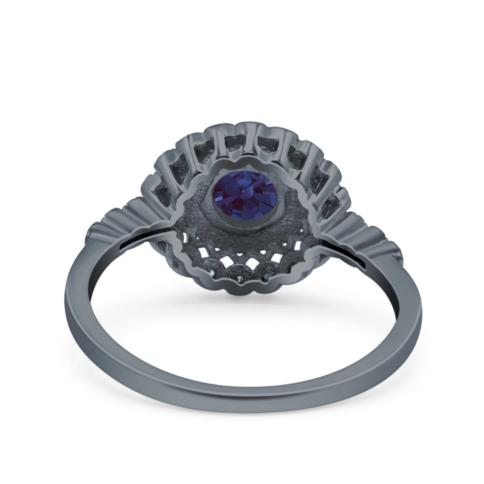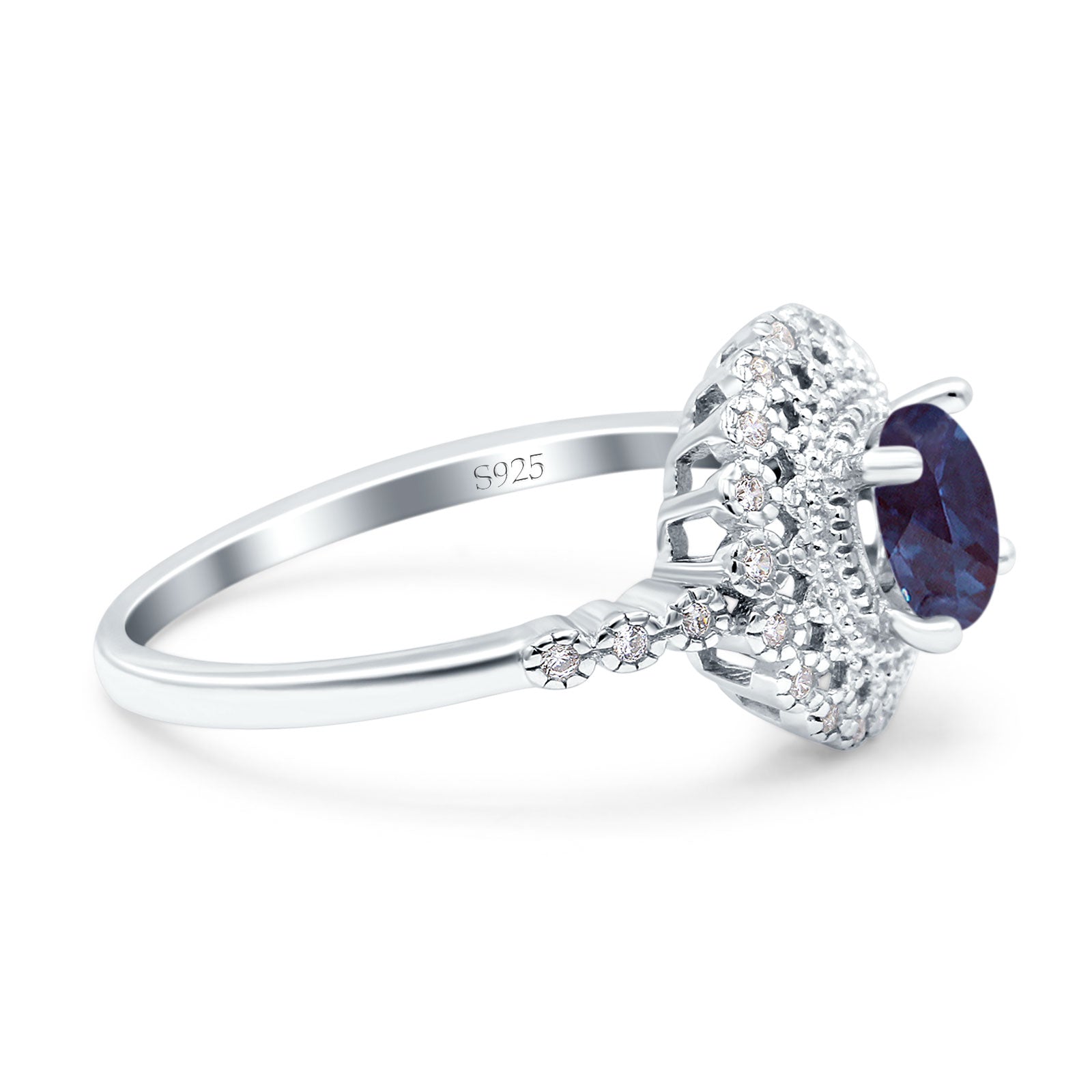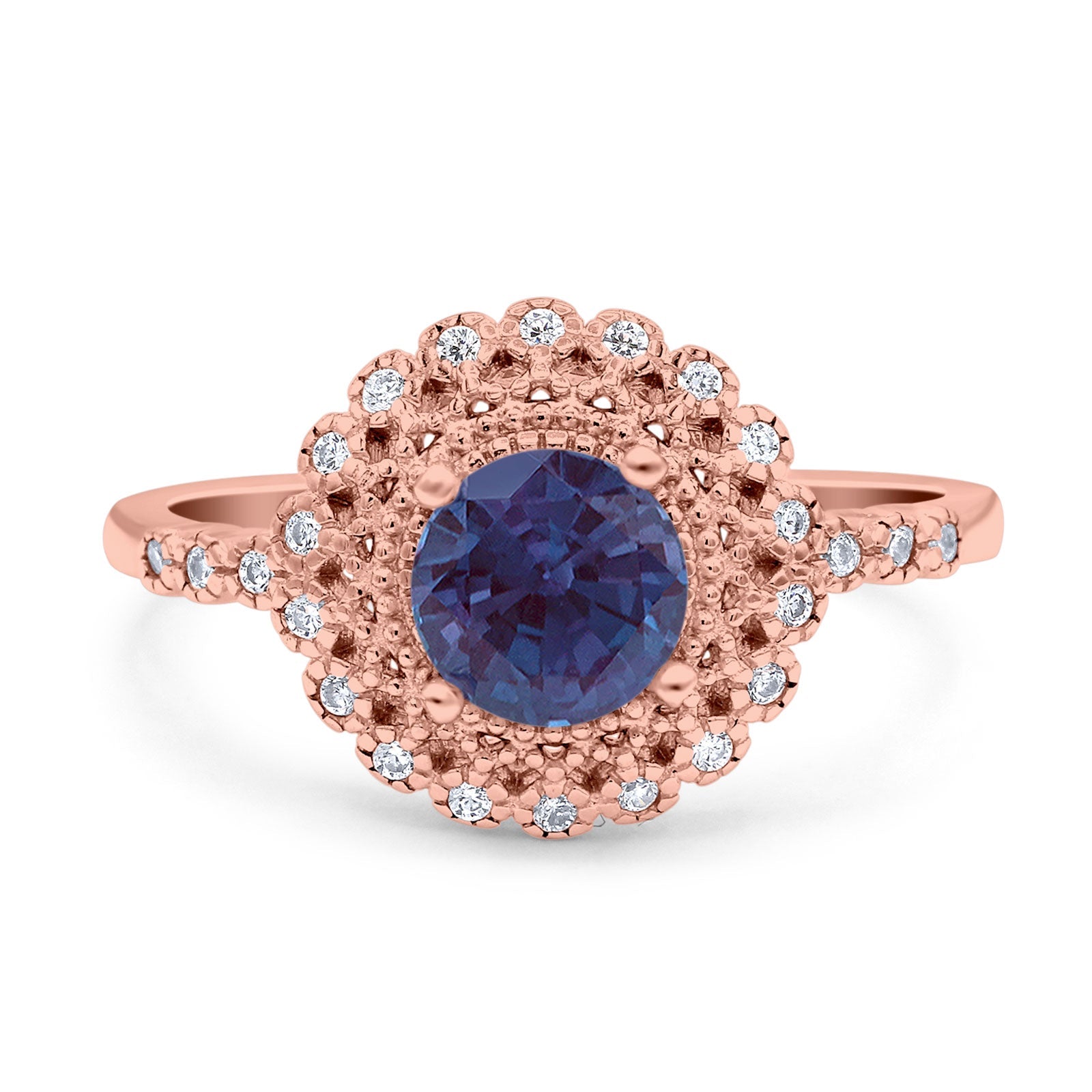 Art Deco Round Lab Alexandrite Flower Ring 925 Sterling Silver