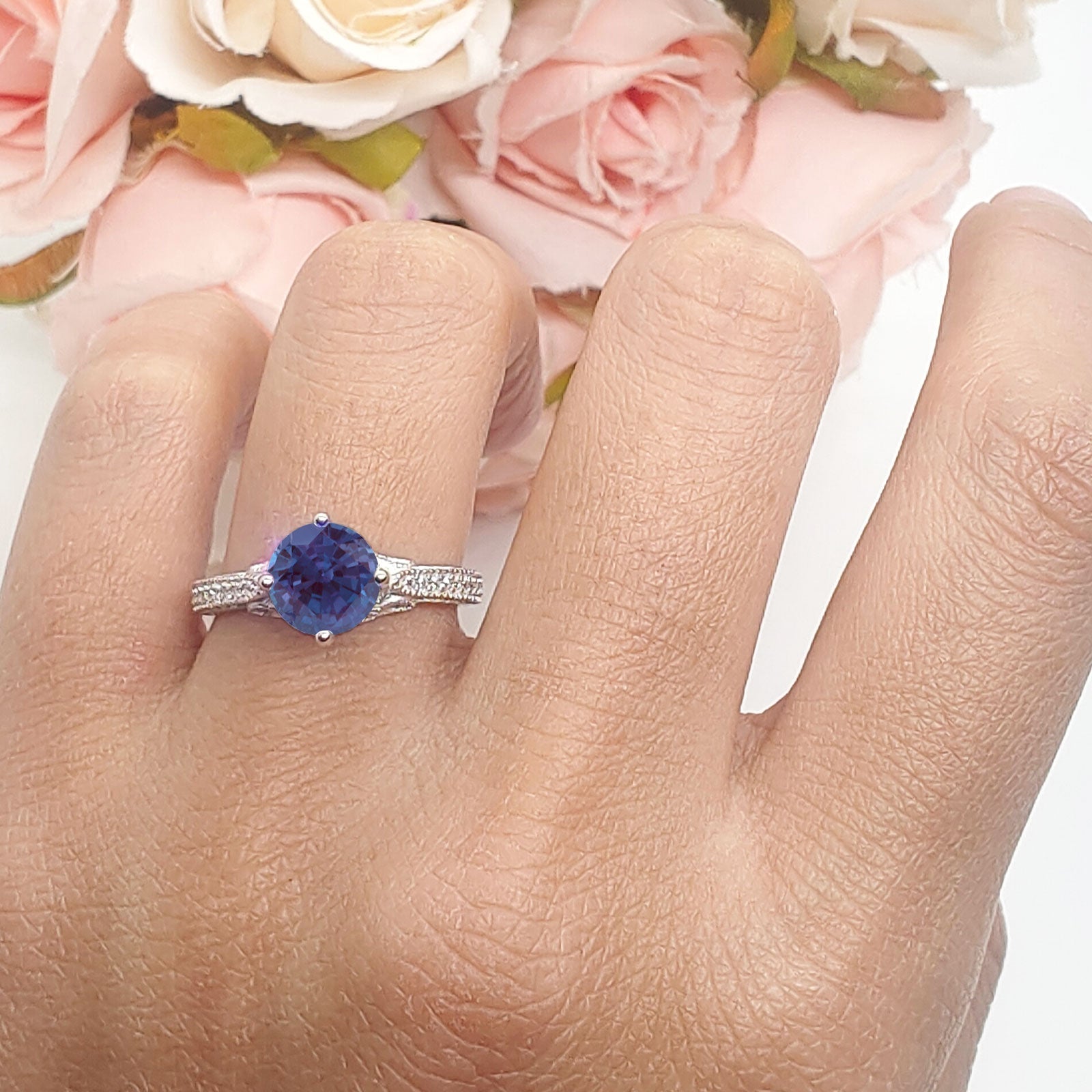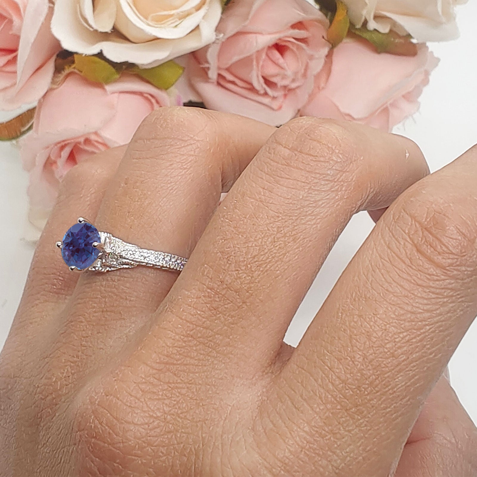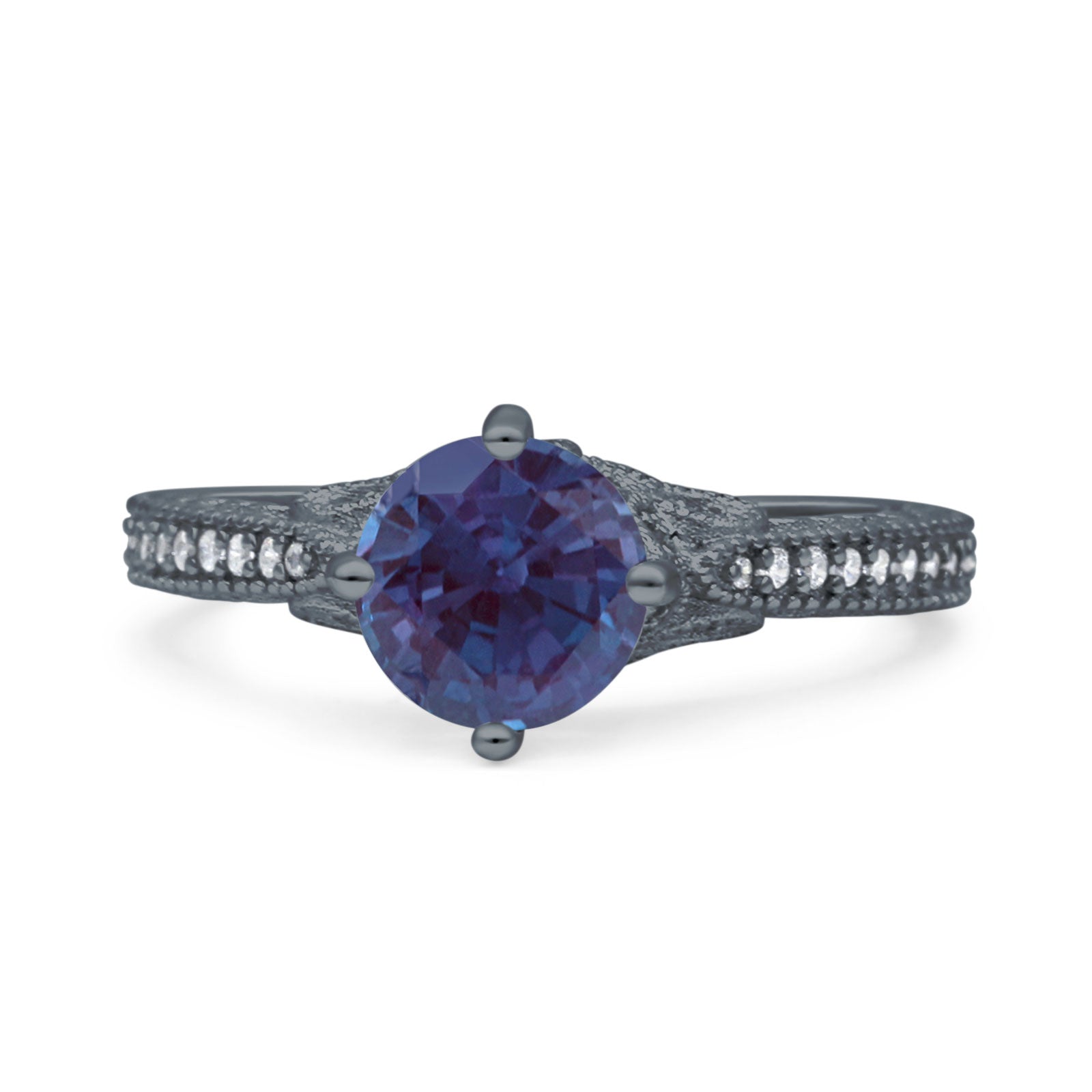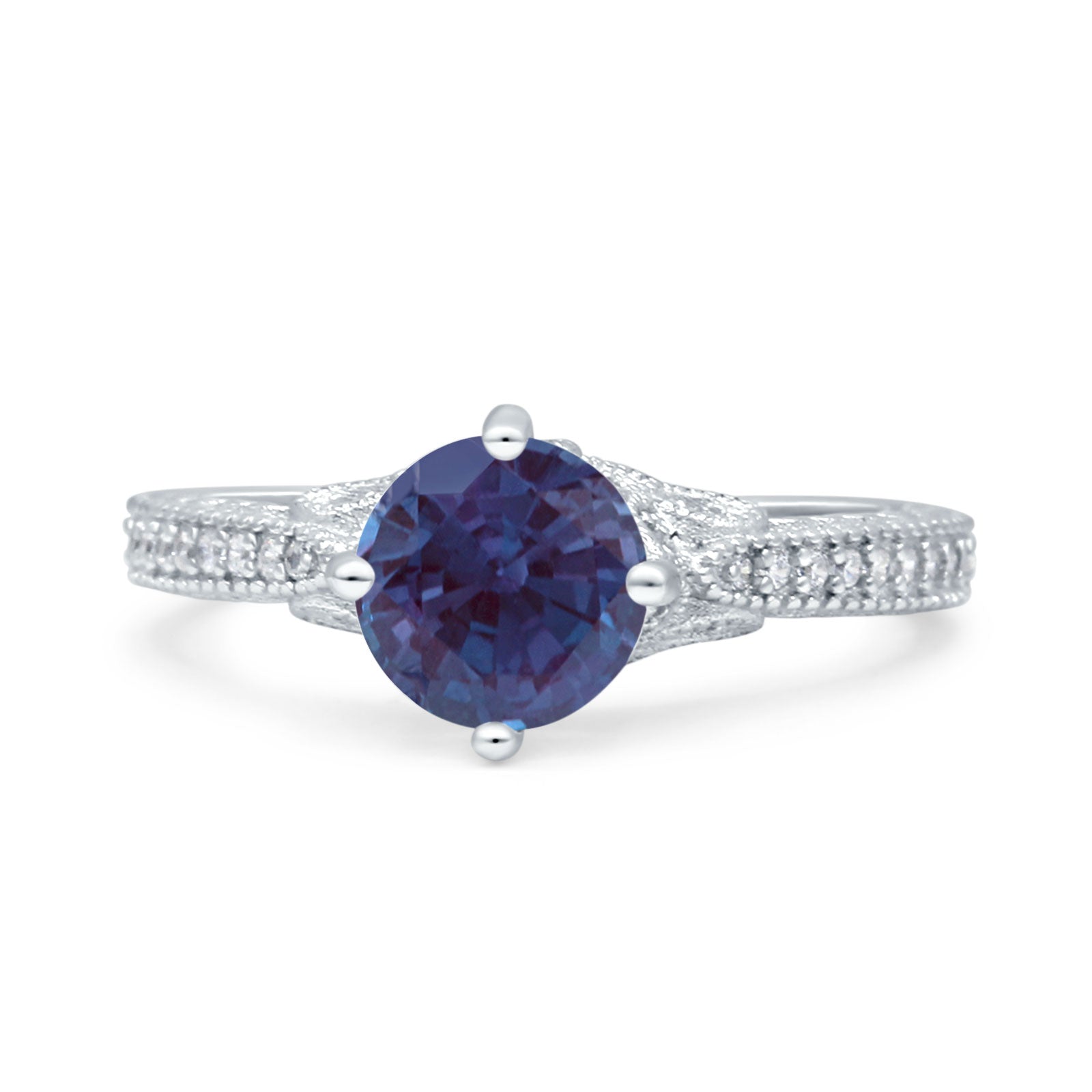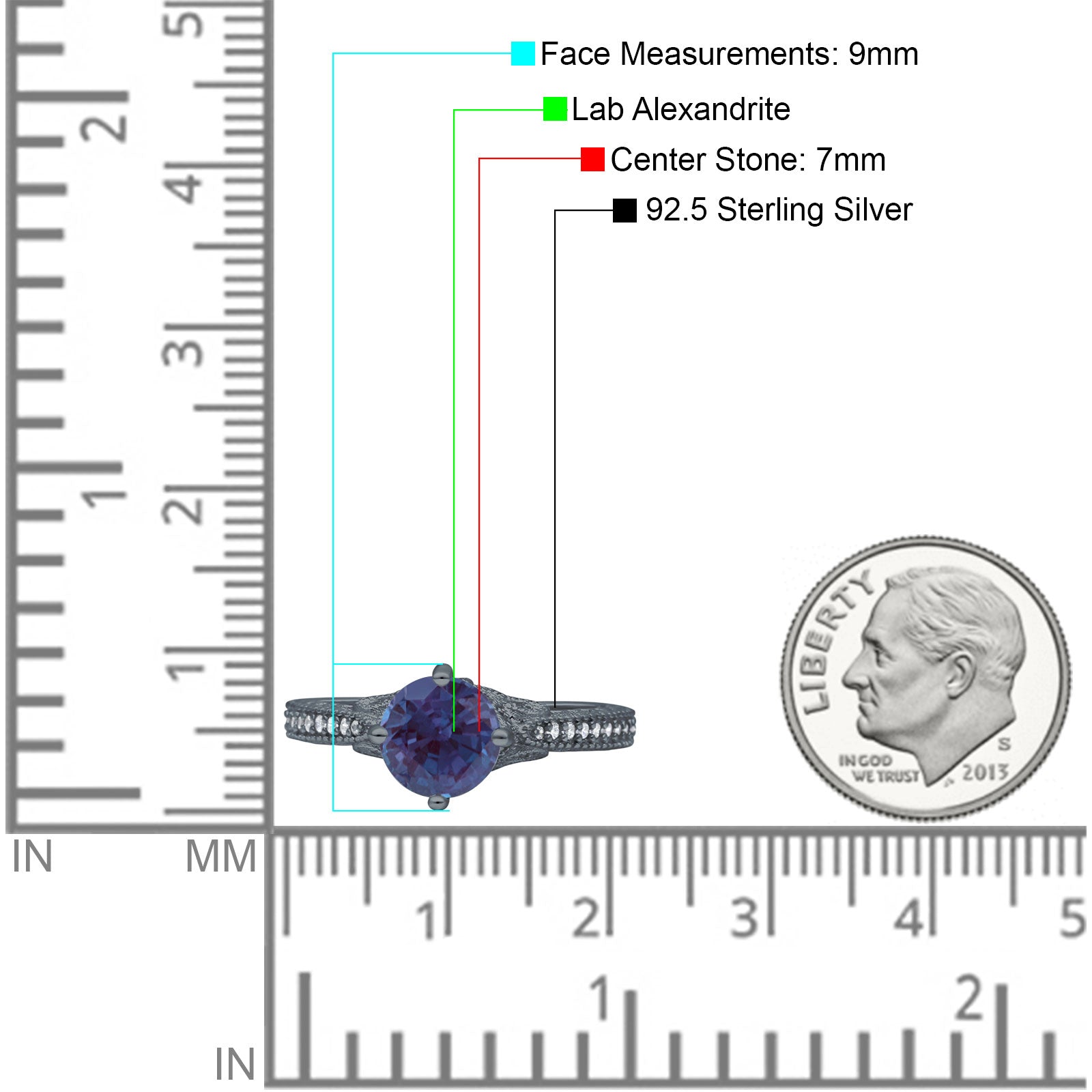 Minimalist 7.4mm Lab Created Blue Opal Ring 925 Sterling Silver