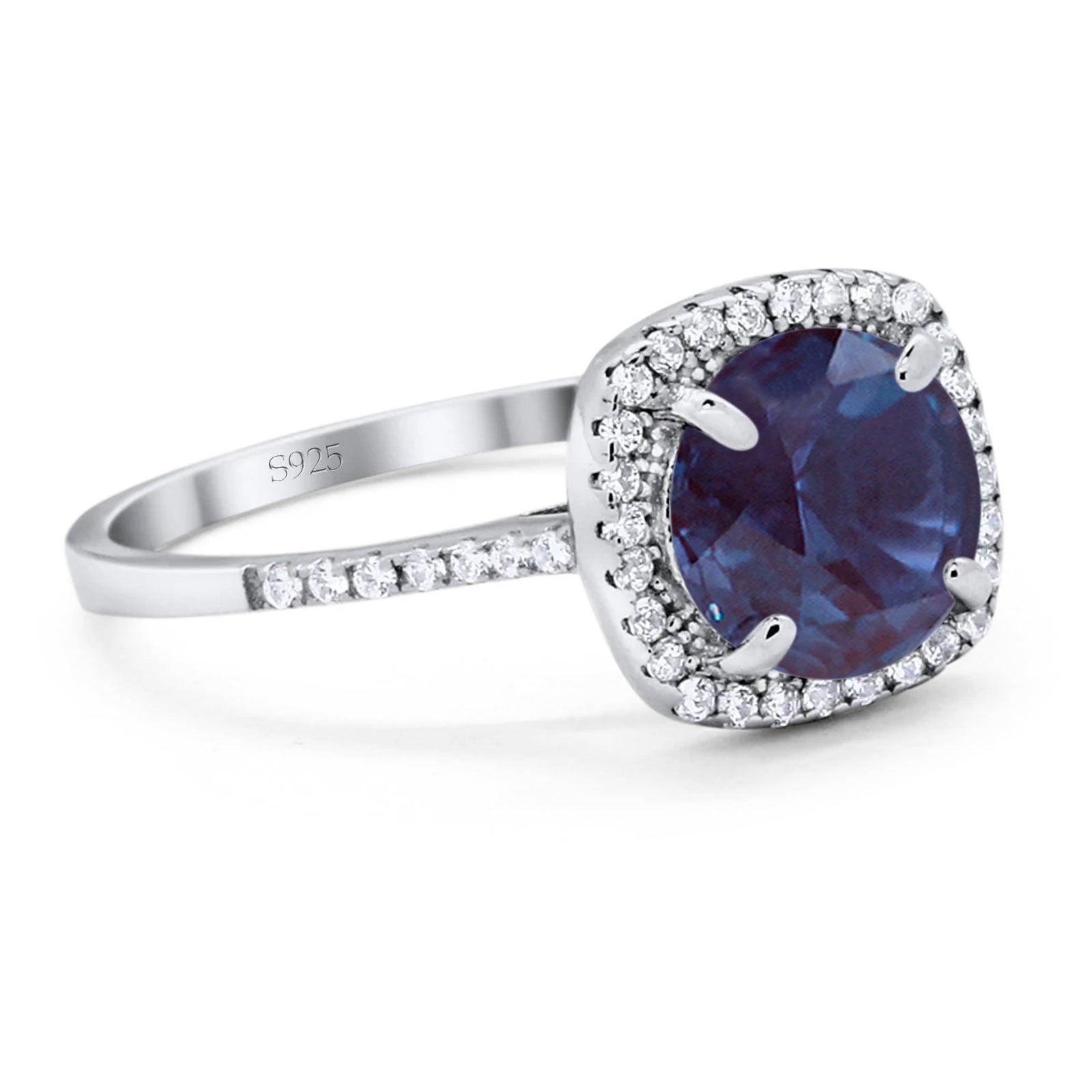 Art Deco Round Lab Alexandrite Wedding Halo Ring 925 Sterling Silver