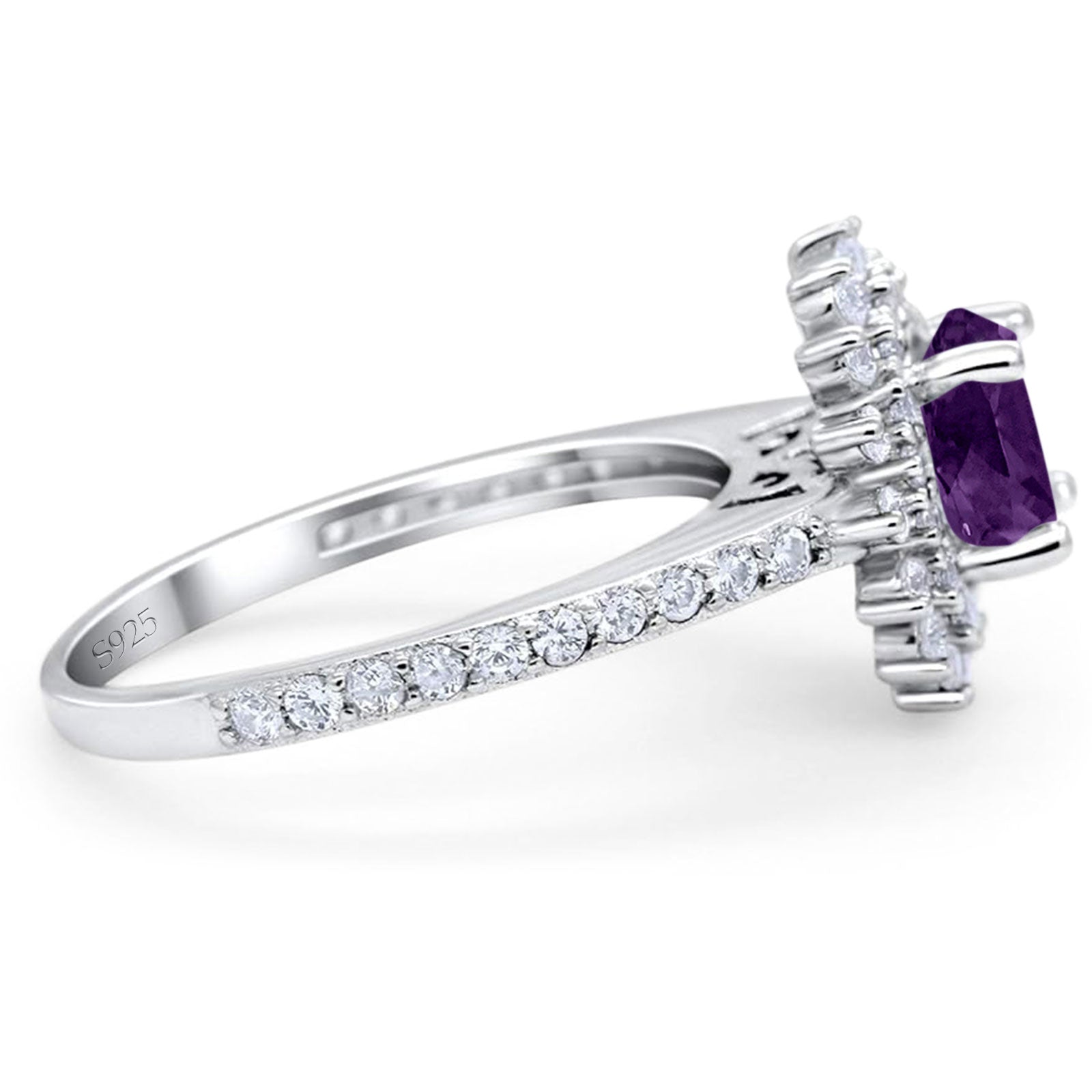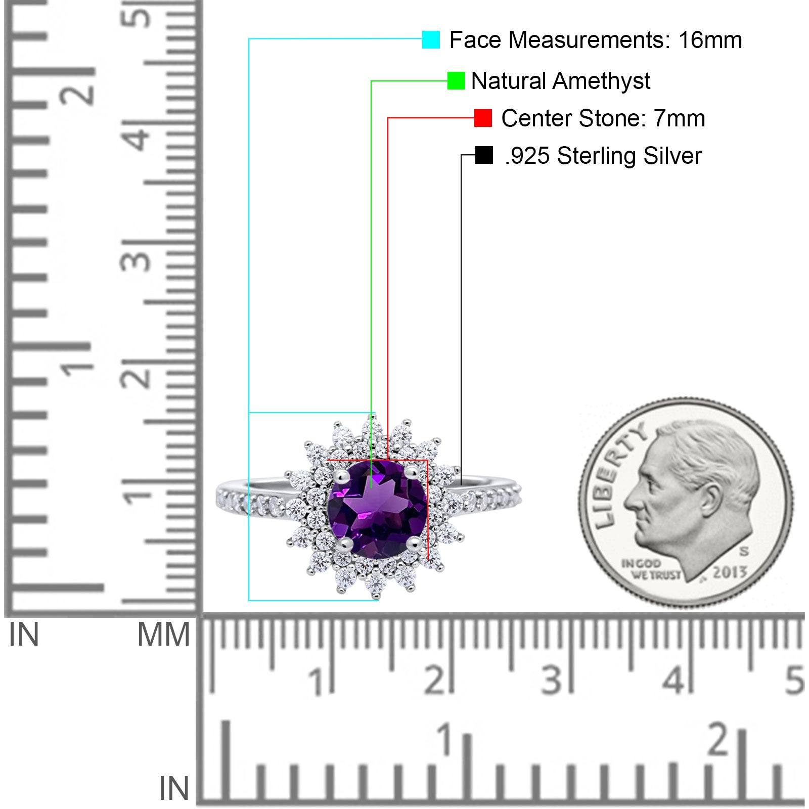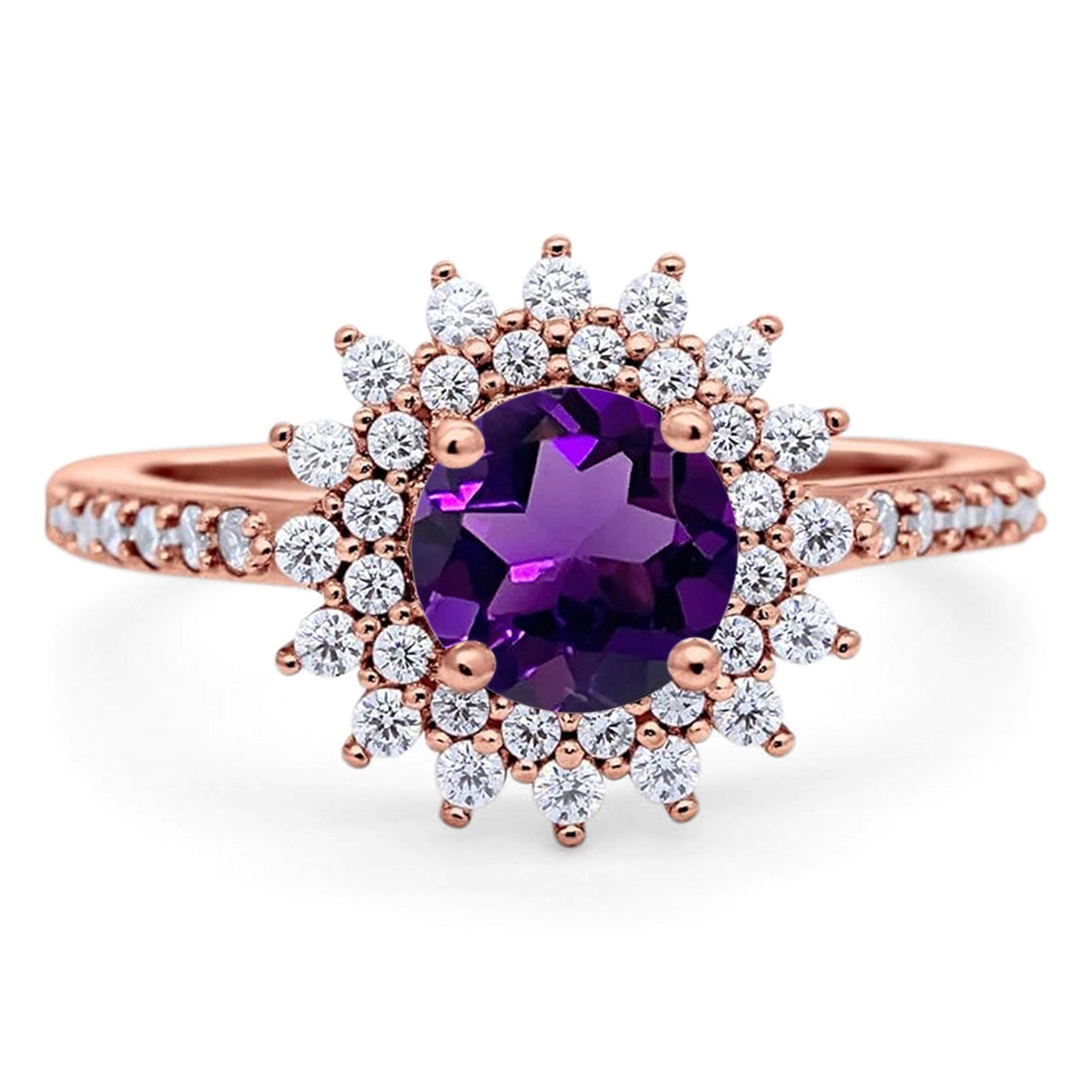 Art Deco Round Natural Amethyst Halo Wedding Flower Ring 925 Sterling Silver