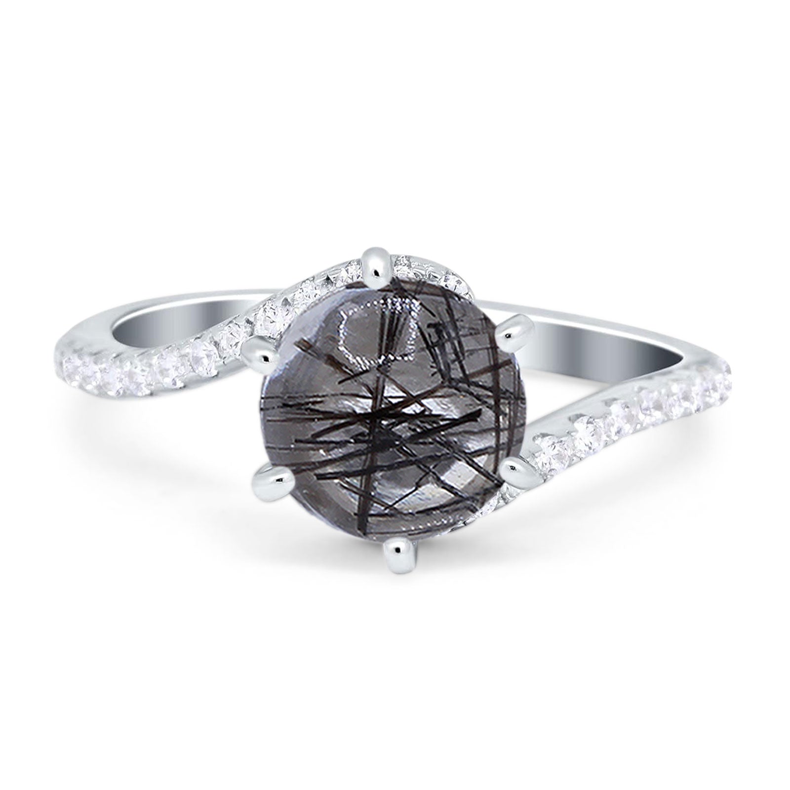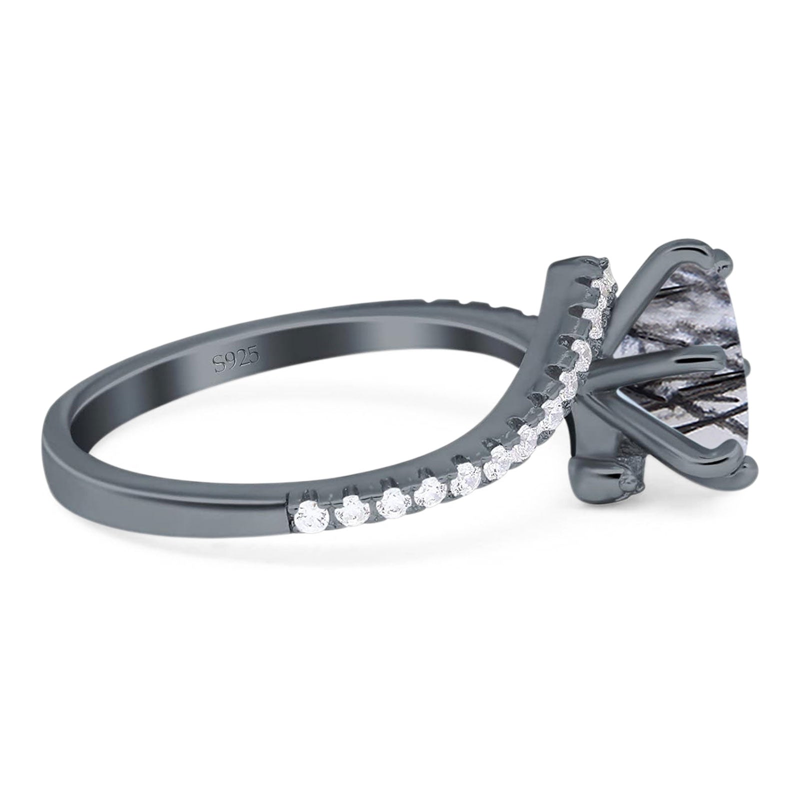 Natural Rutilated Quartz Black Tone Silver