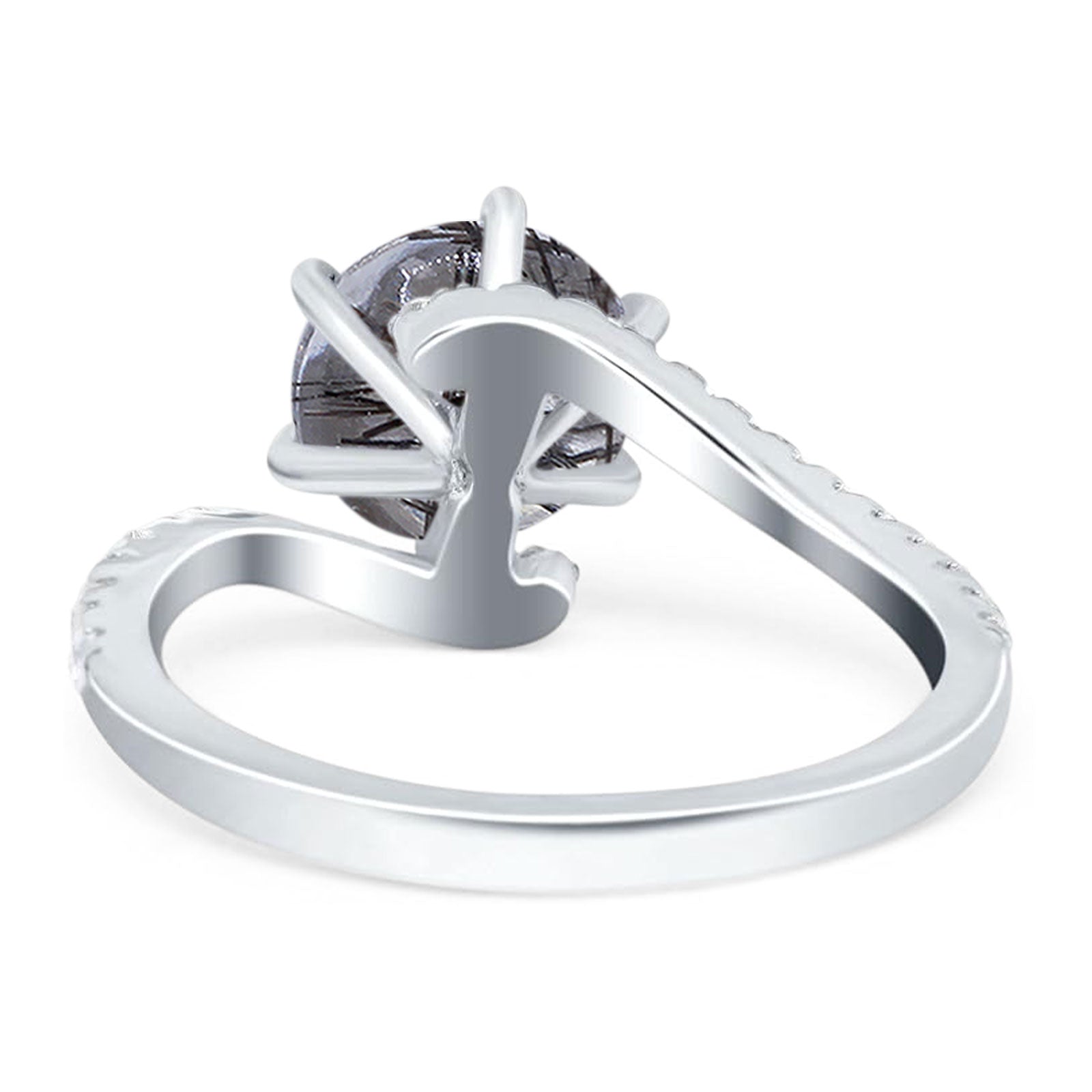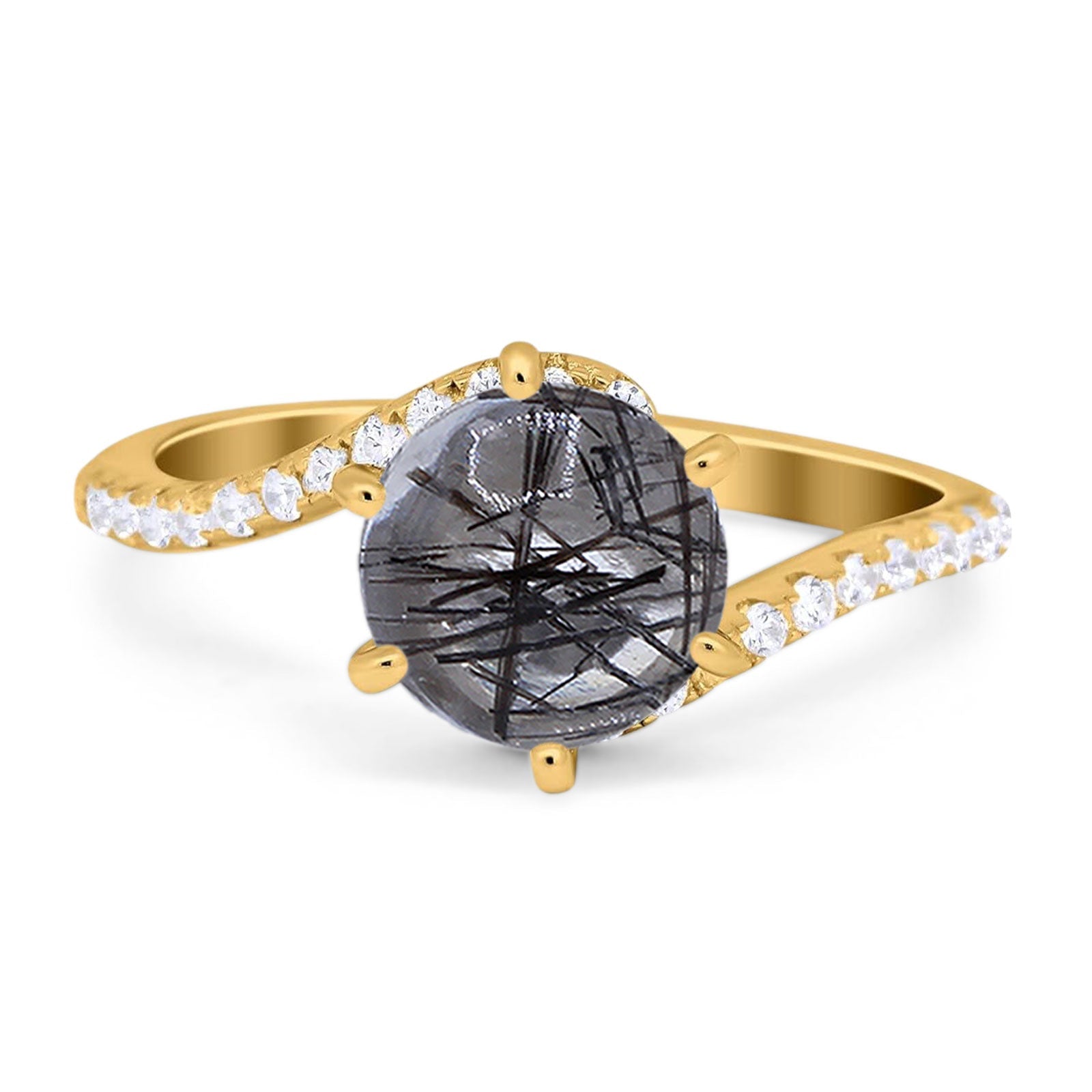 Art Deco Round Natural Rutilated Quartz Twisted Swirl Ring 925 Sterling Silver