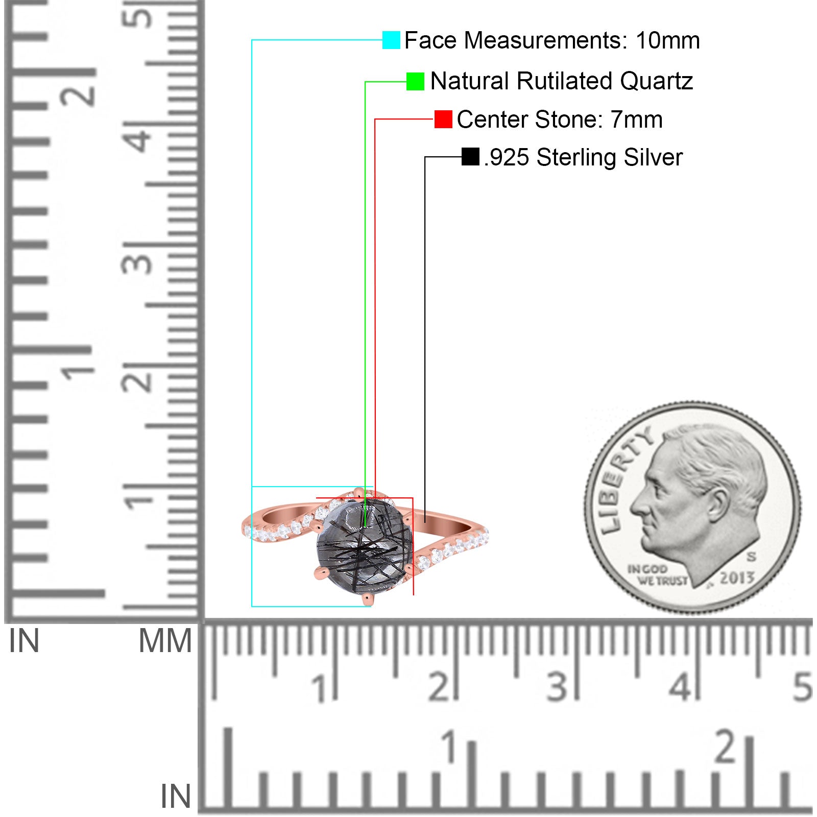 Natural Rutilated Quartz Rose Tone Silver