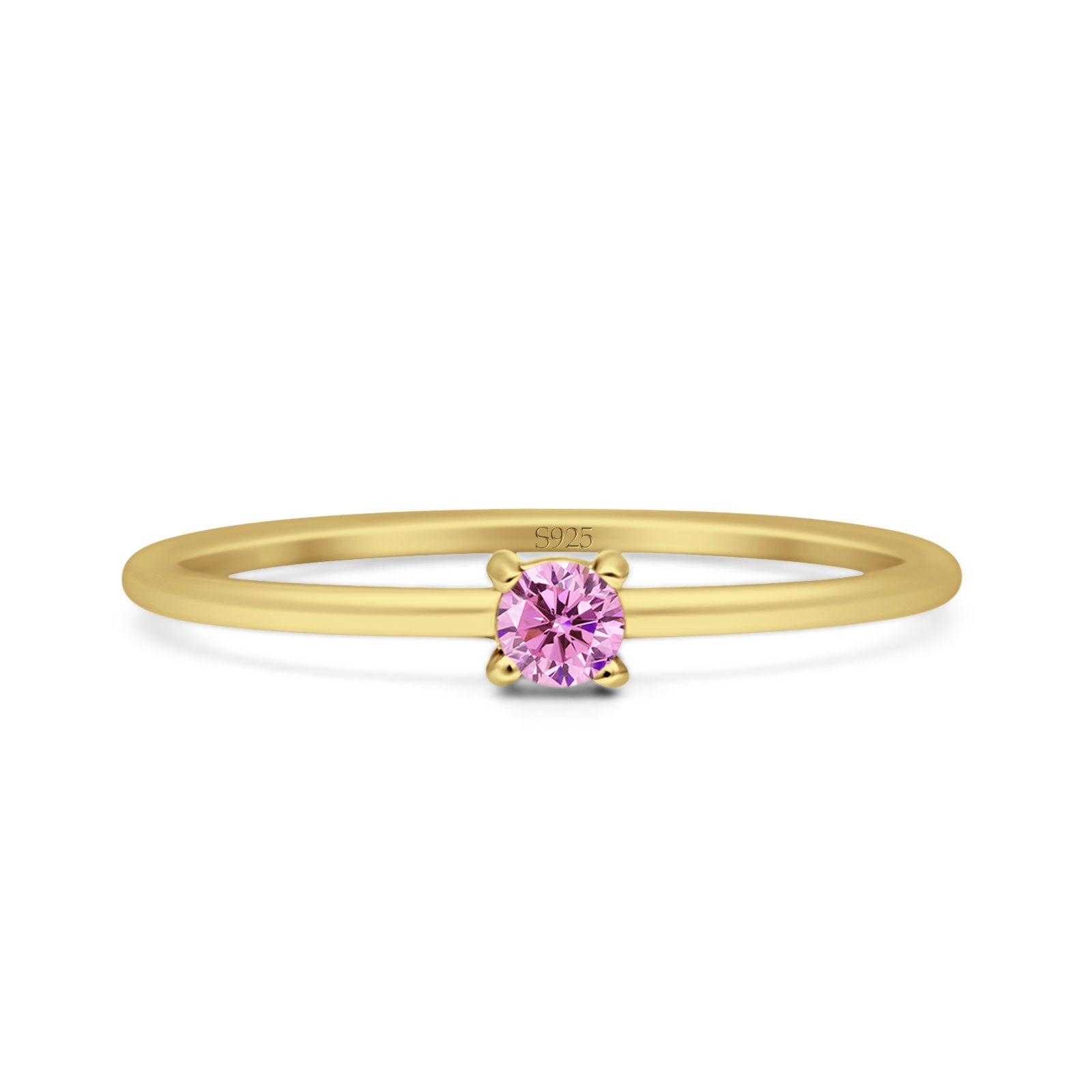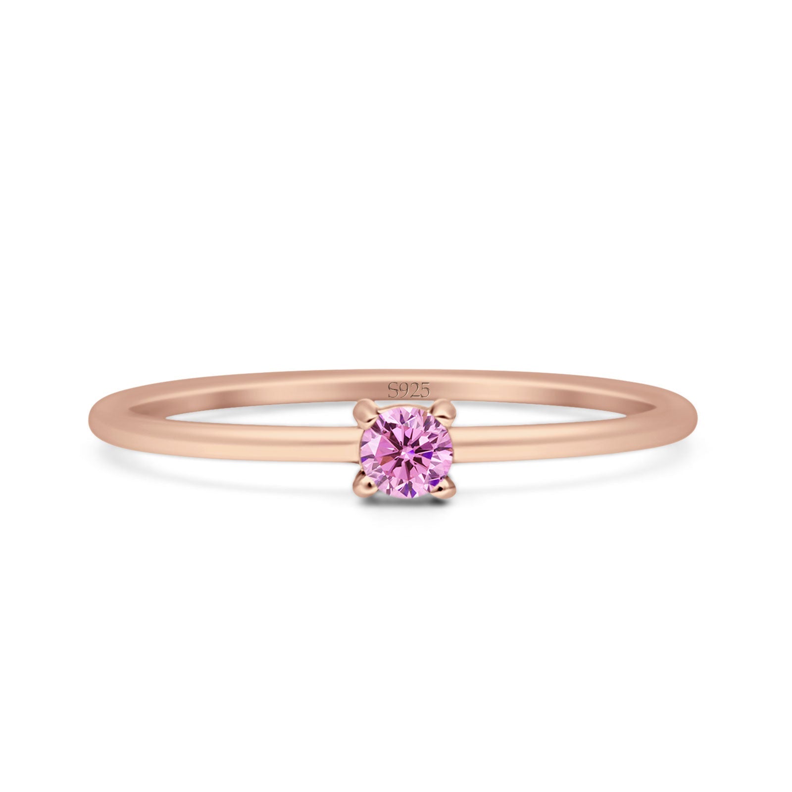 Ring Design: Round Pink CZ Solitaire Ring.