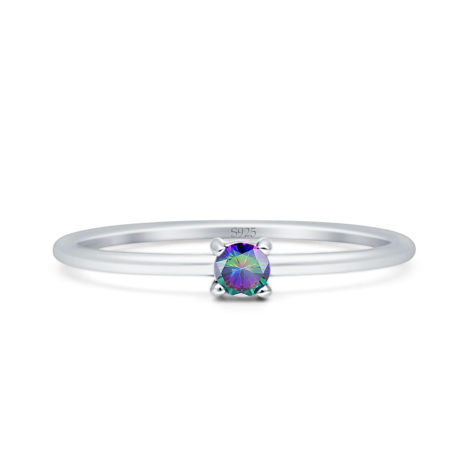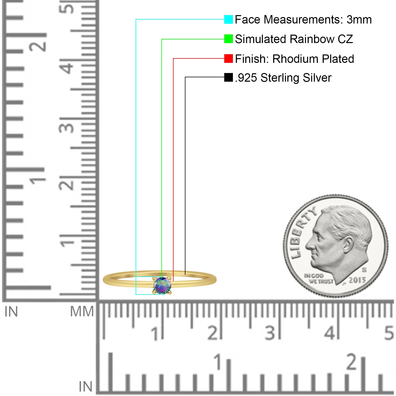 Ring Design: Round Rainbow CZ Solitaire Ring.