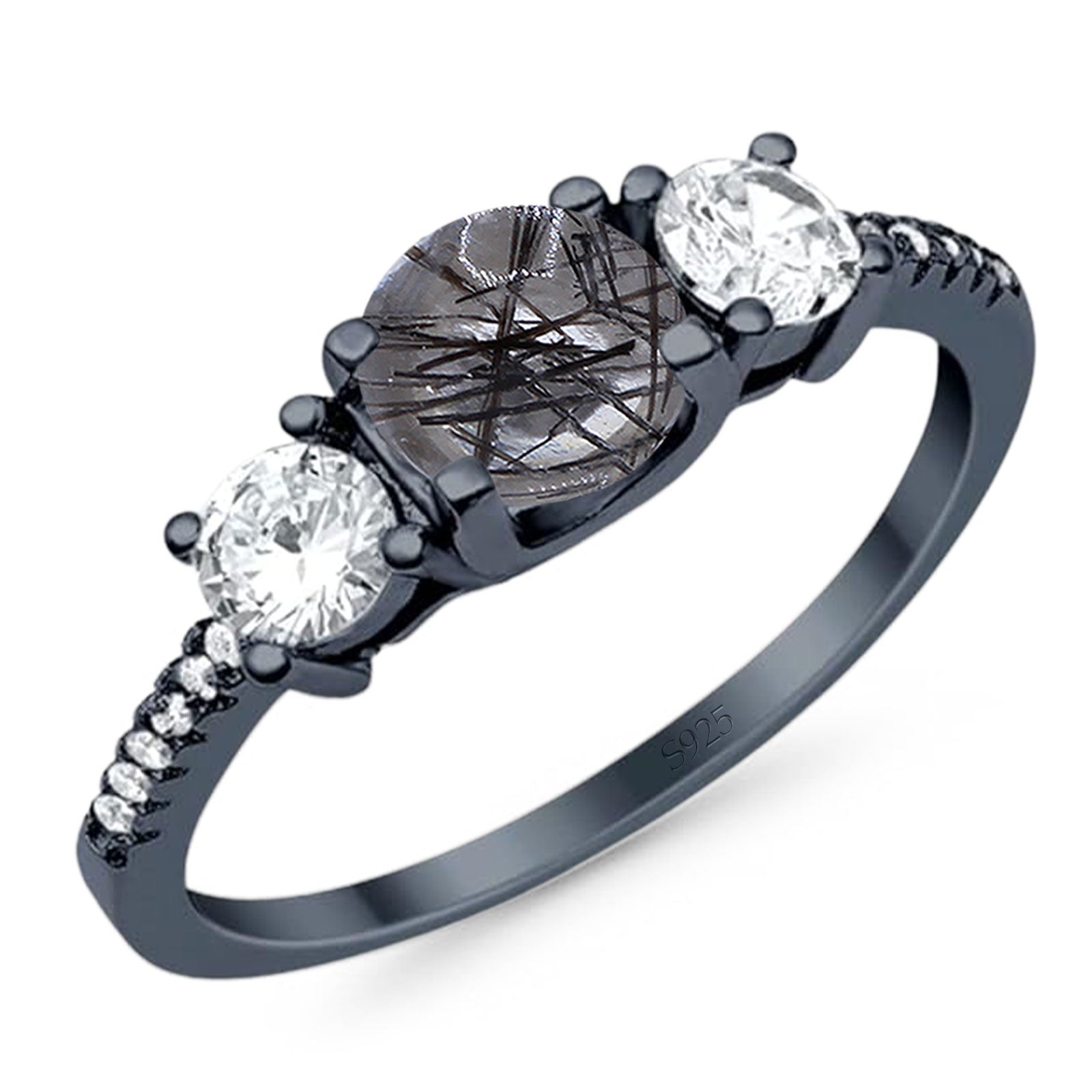 Minimalist 8mm Black Onyx Heart Ring 925 Sterling Silver