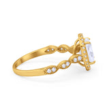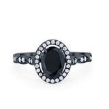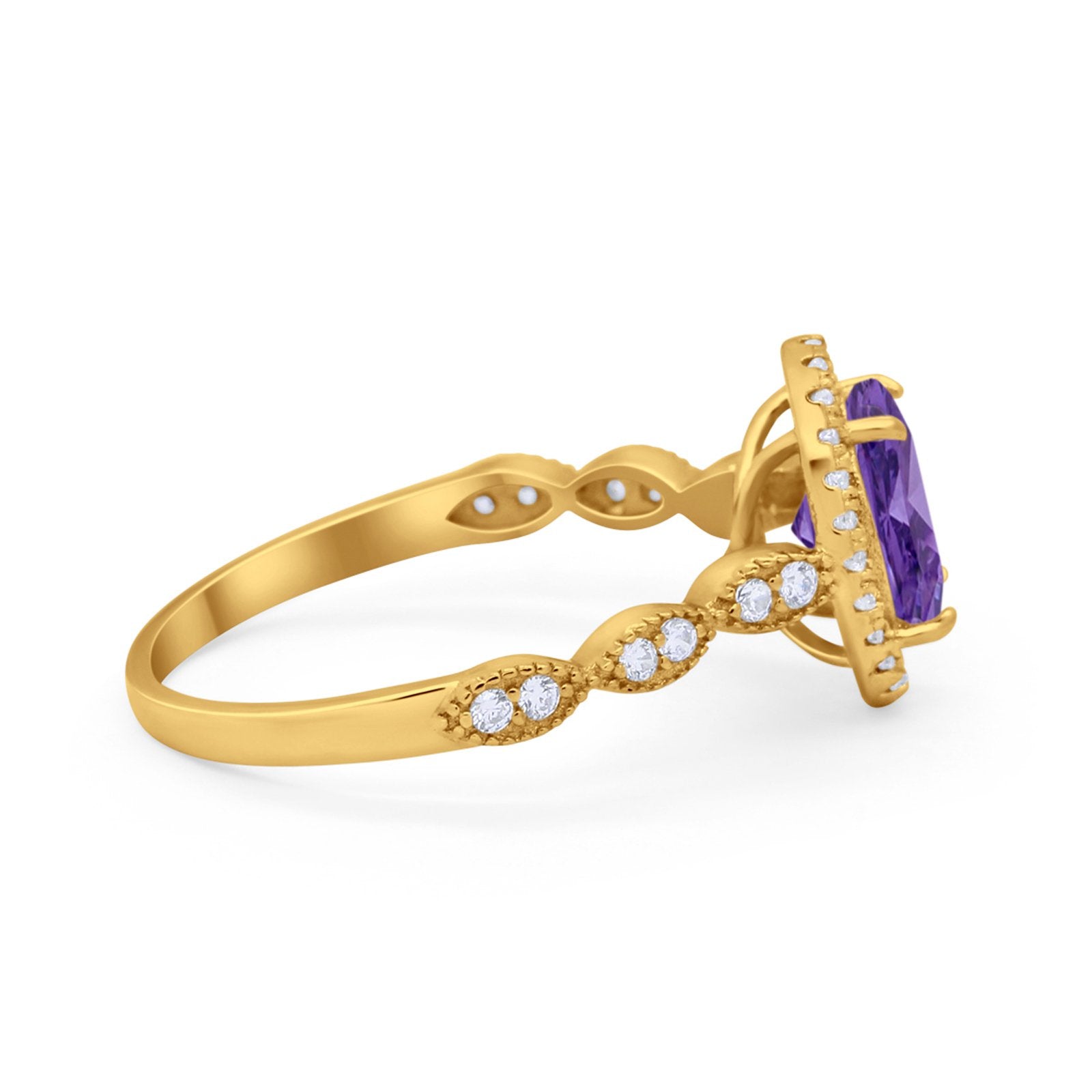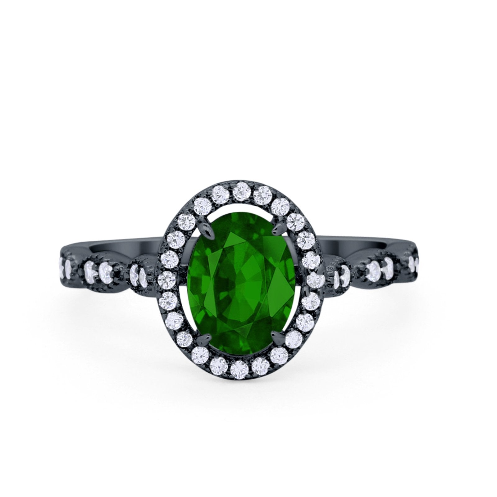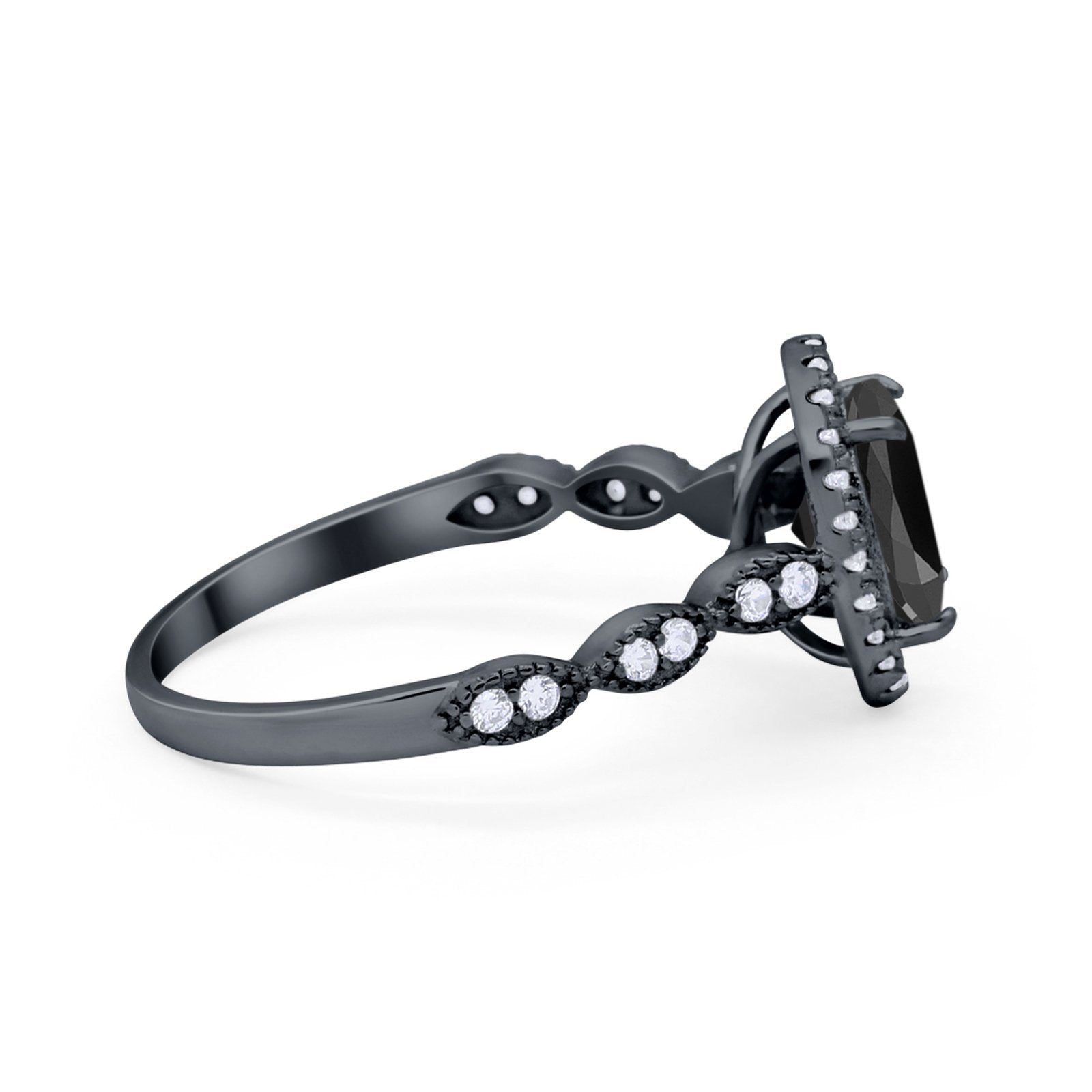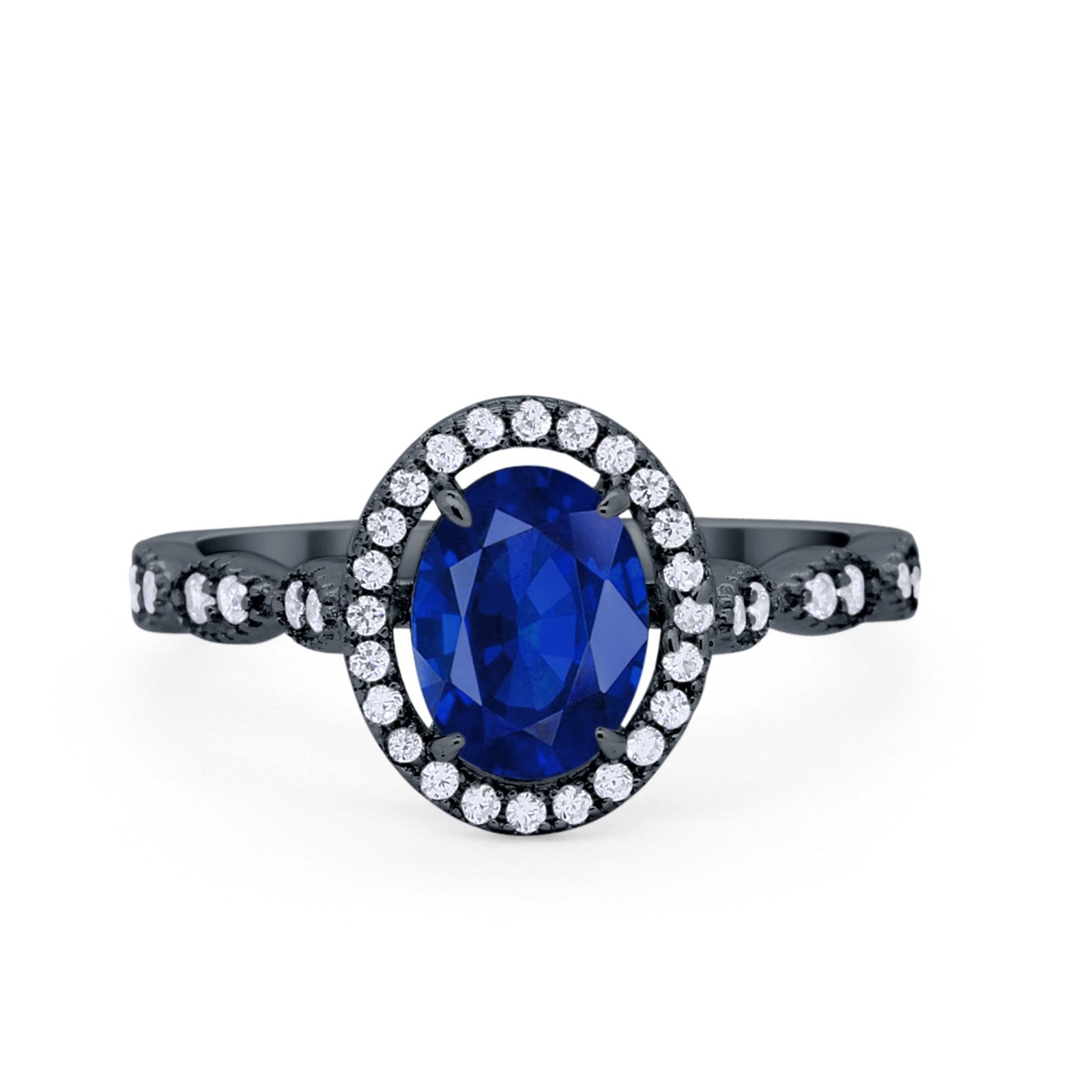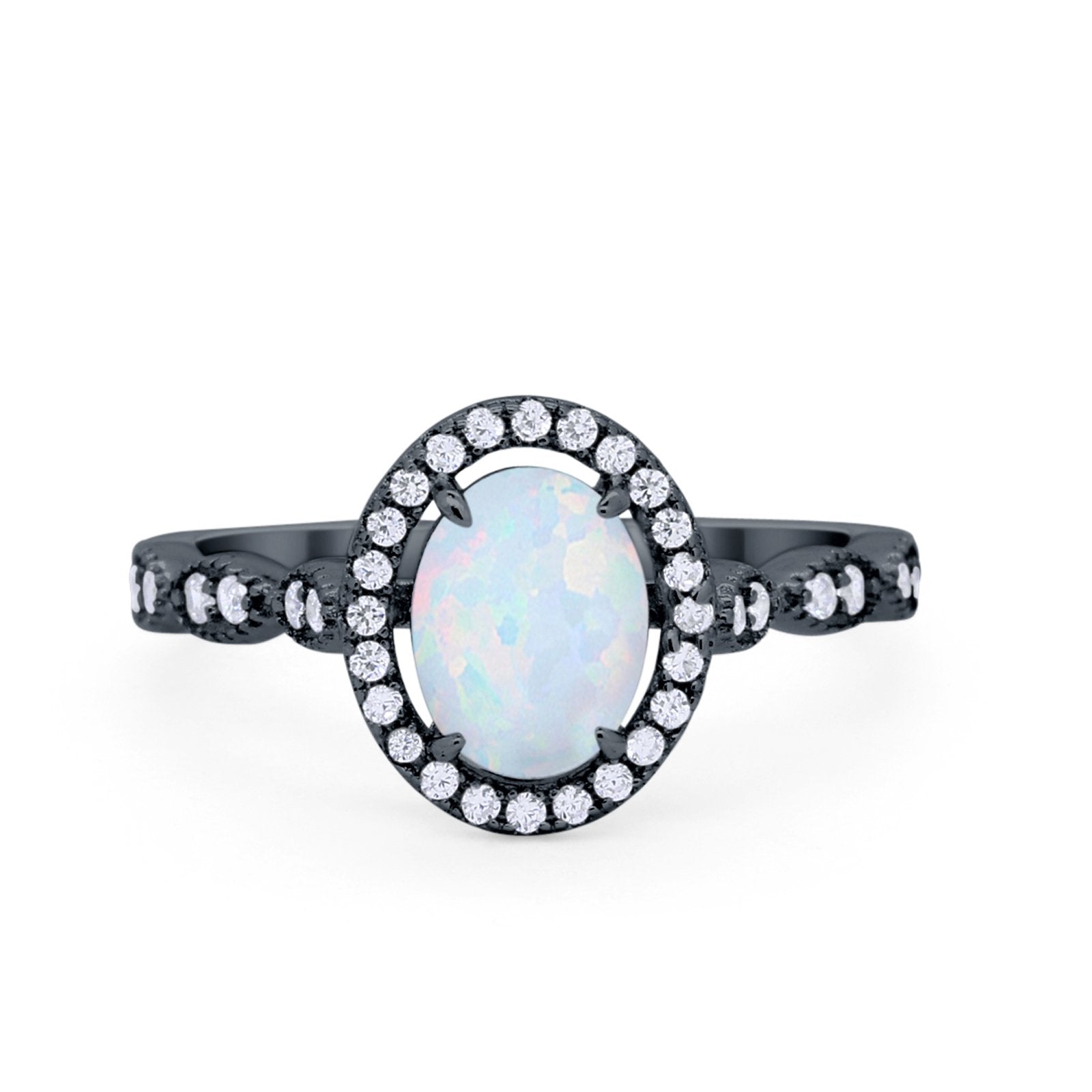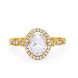 Art Deco Wedding Halo Ring Oval Simulated Cubic Zirconia 925 Sterling Silver