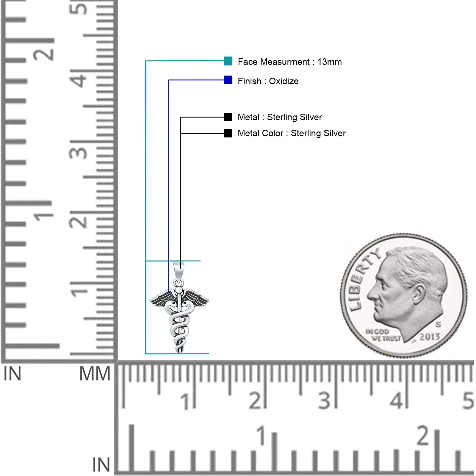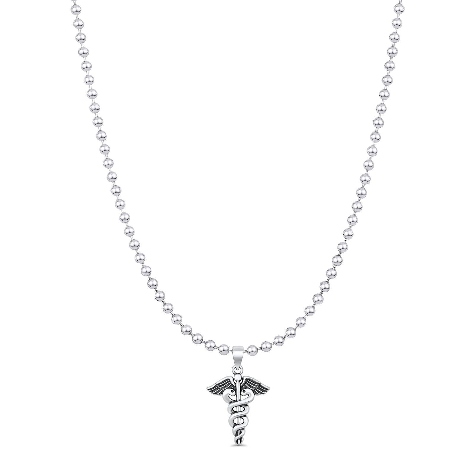 Caduceus Pendant Bead Chain Necklace Oxidized 925 Sterling Silver