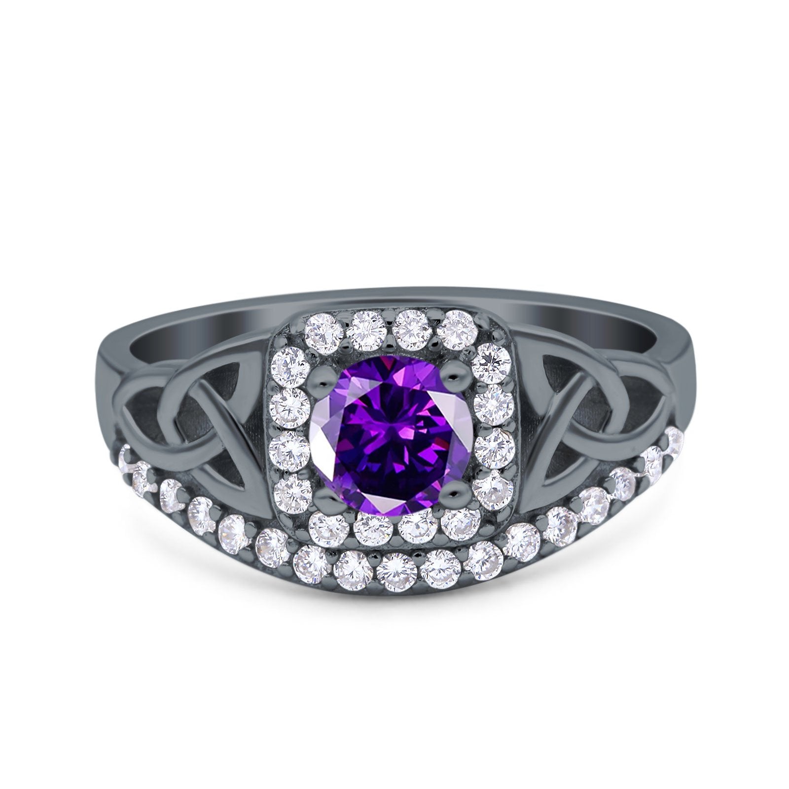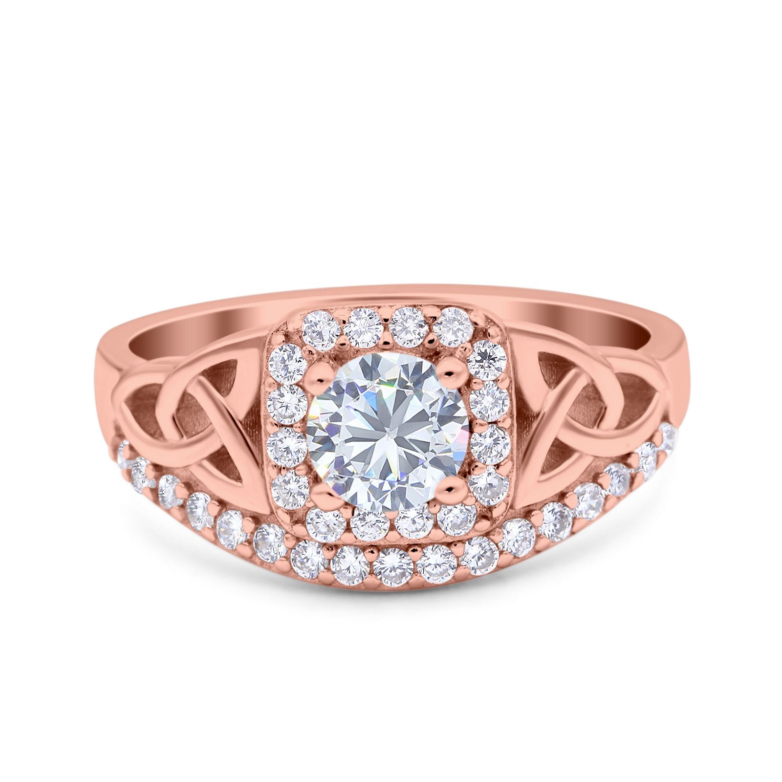 Celtic Art Deco Wedding Bridal Engagement Ring Simulated Cubic Zirconia 925 Sterling Silver