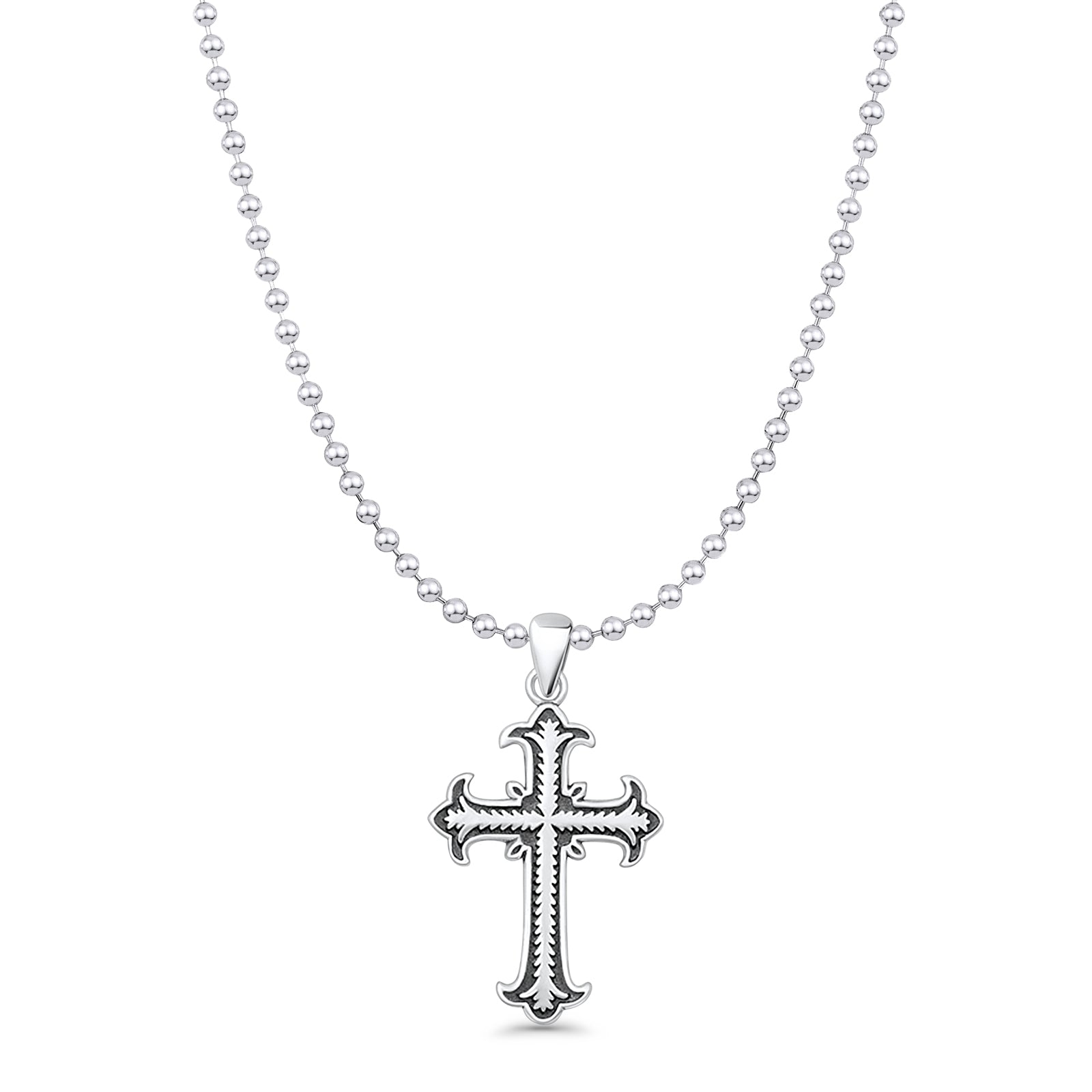 Cross Pendant Bead Chain Necklace Oxidized 925 Sterling Silver