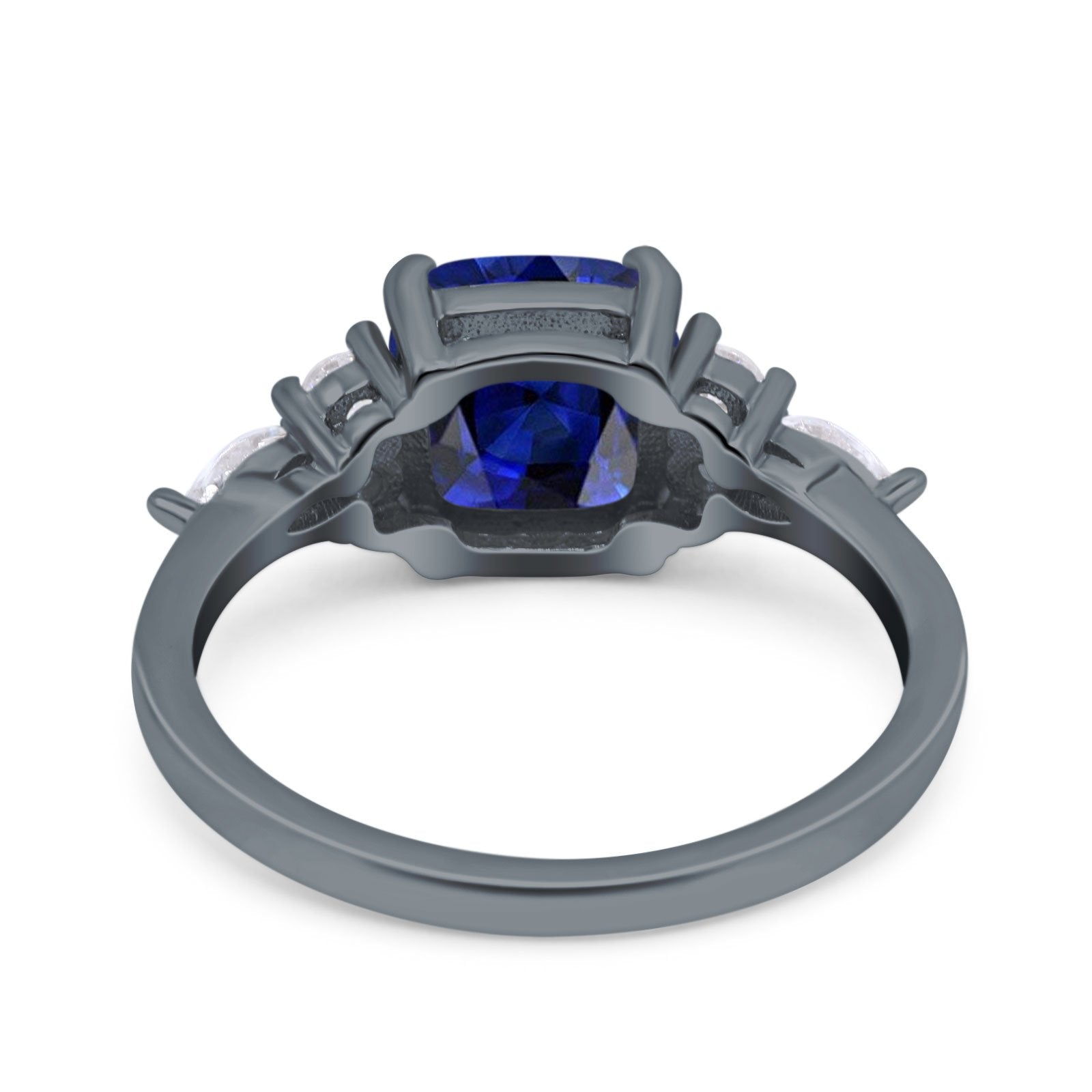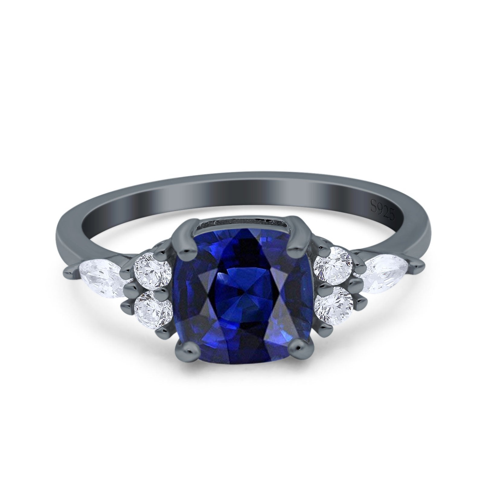 CZ & Blue Sapphire CZ Black Tone Silver