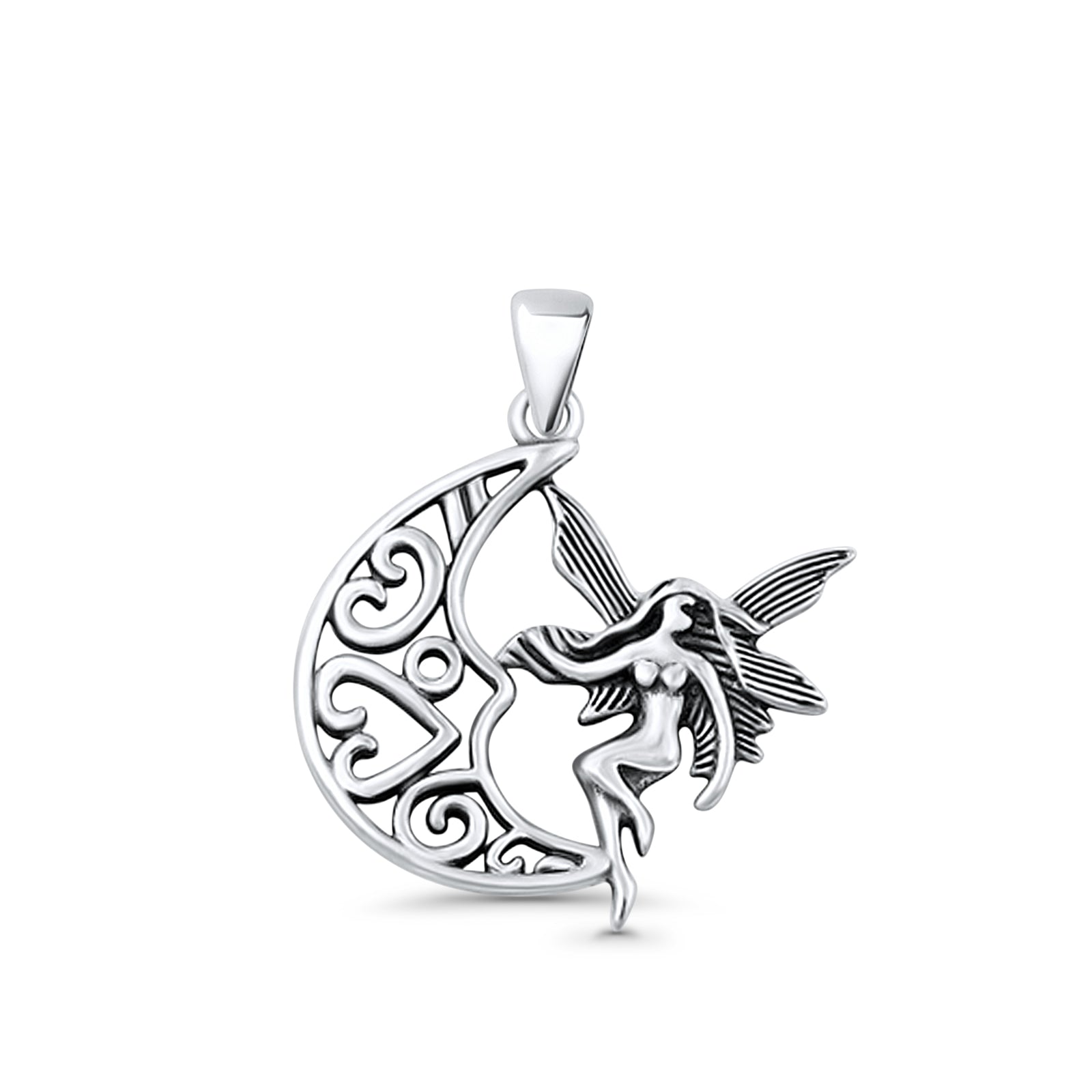 Fairy & Moon Pendant Oxidized 925 Sterling Silver