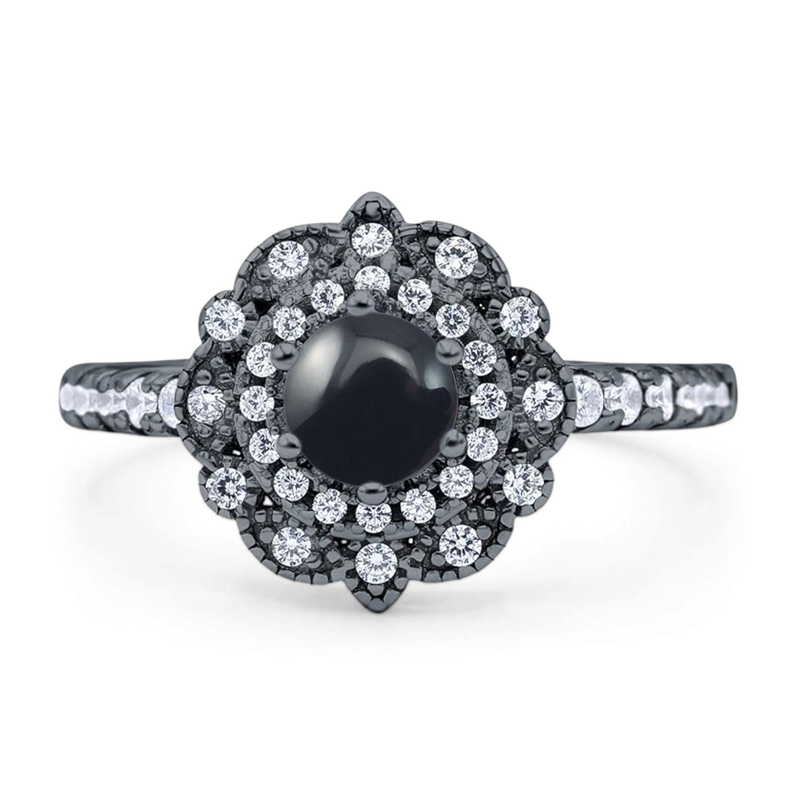 Natural Black Onyx Engagement Ring