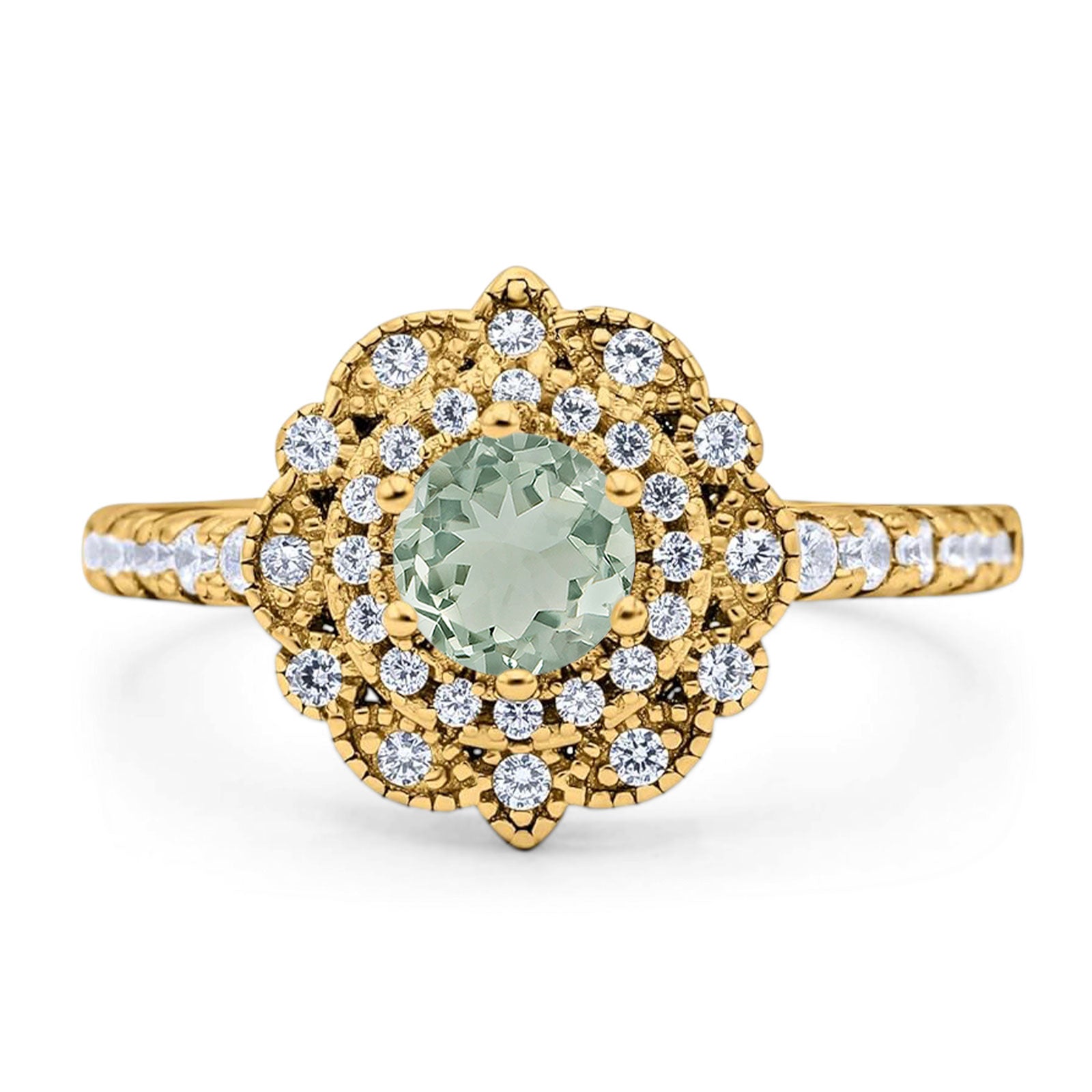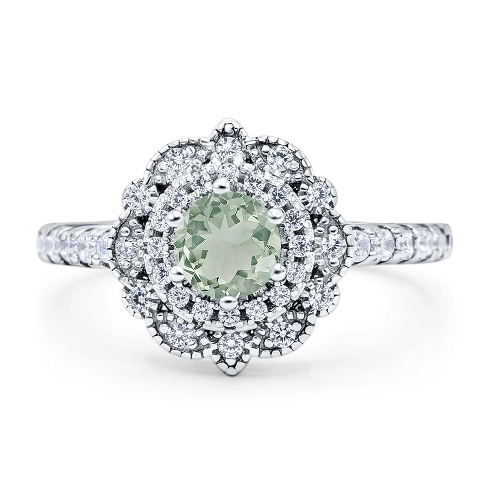 Natural Green Amethyst Prasiolite Engagement Ring
