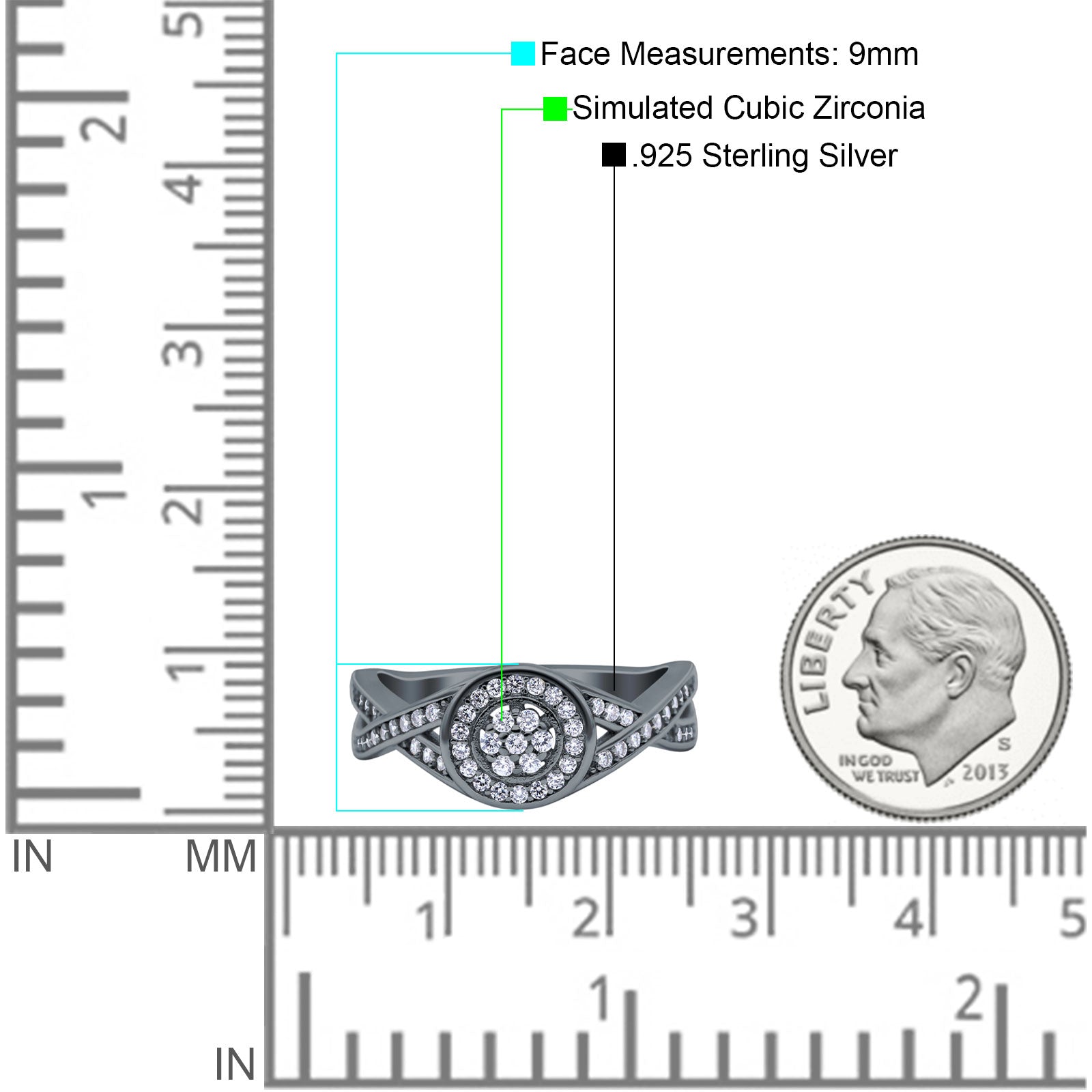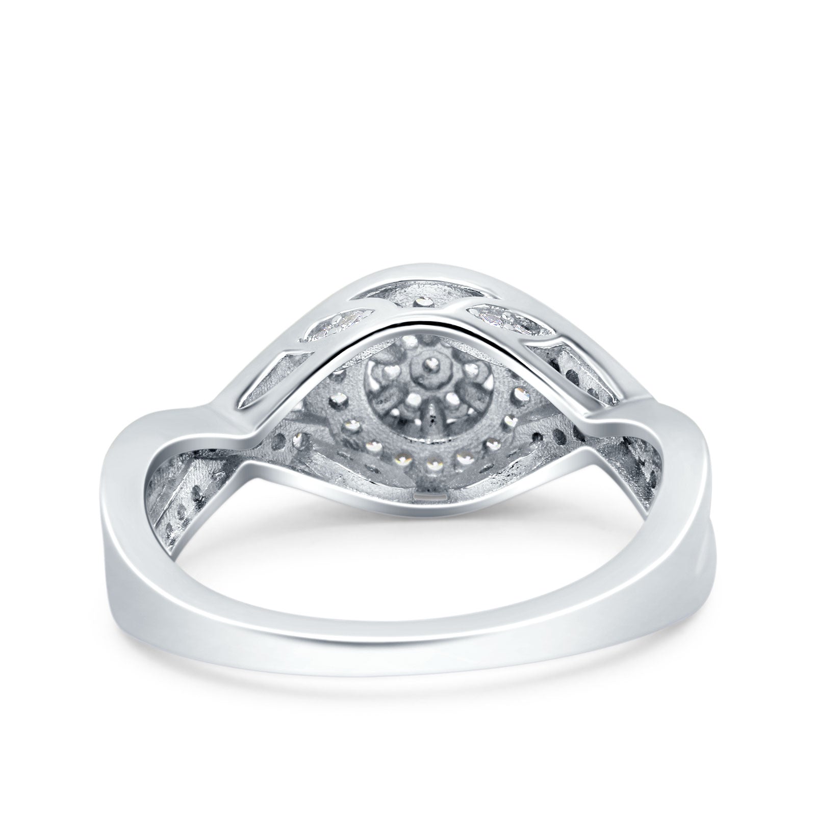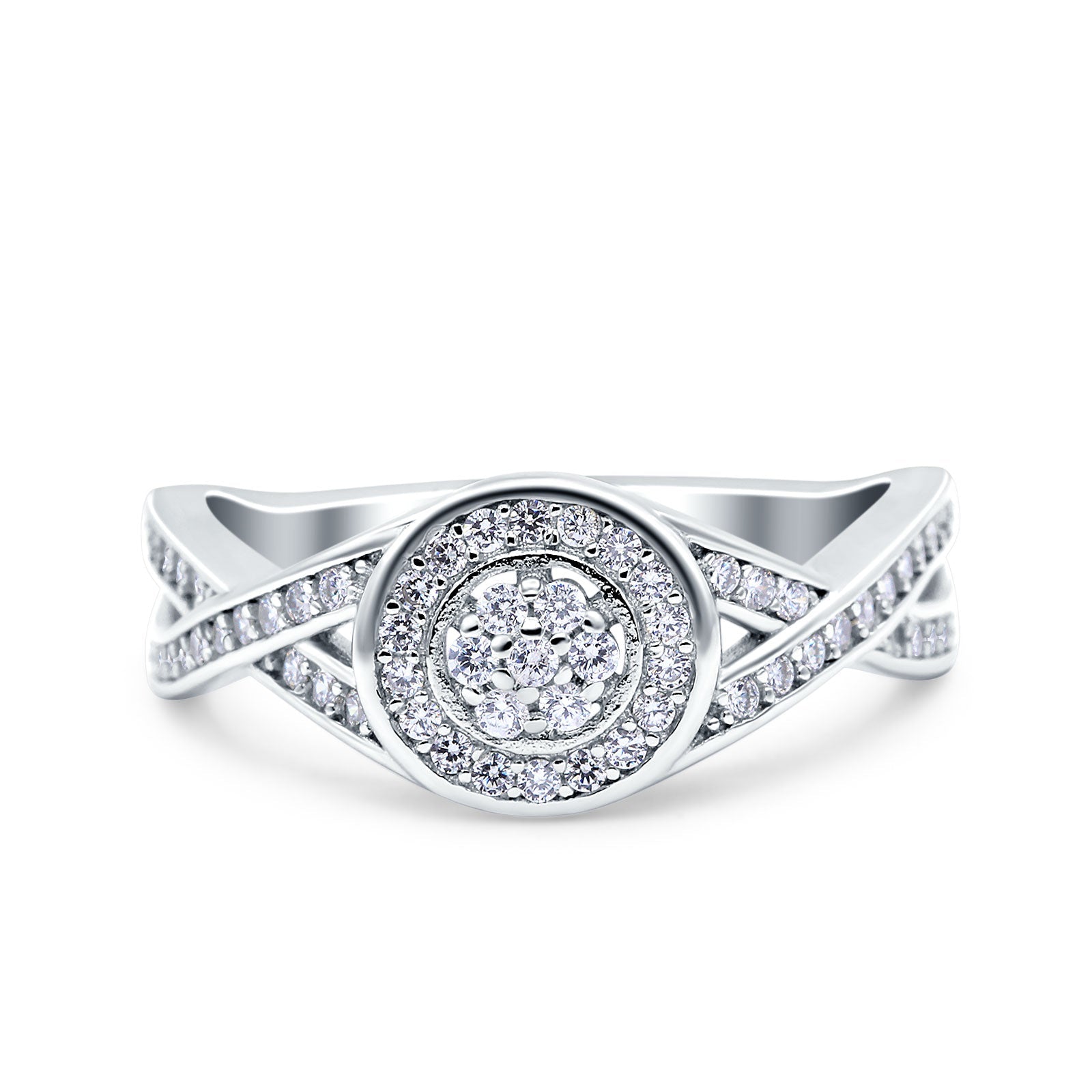 Half Eternity Halo Art Deco Ring Wedding Engagement Infinity Band Round Pave Simulated Cubic Zirconia 925 Sterling Silver