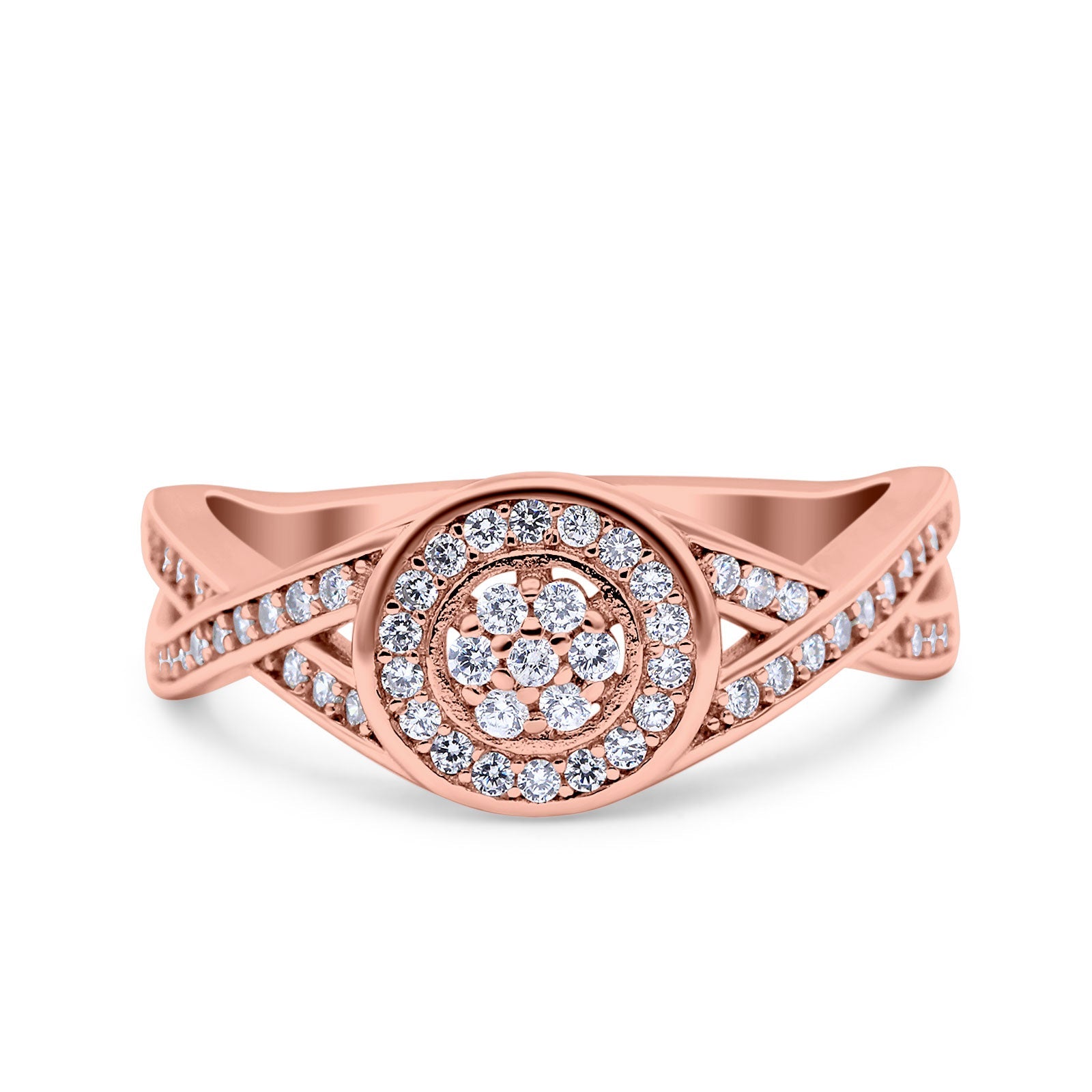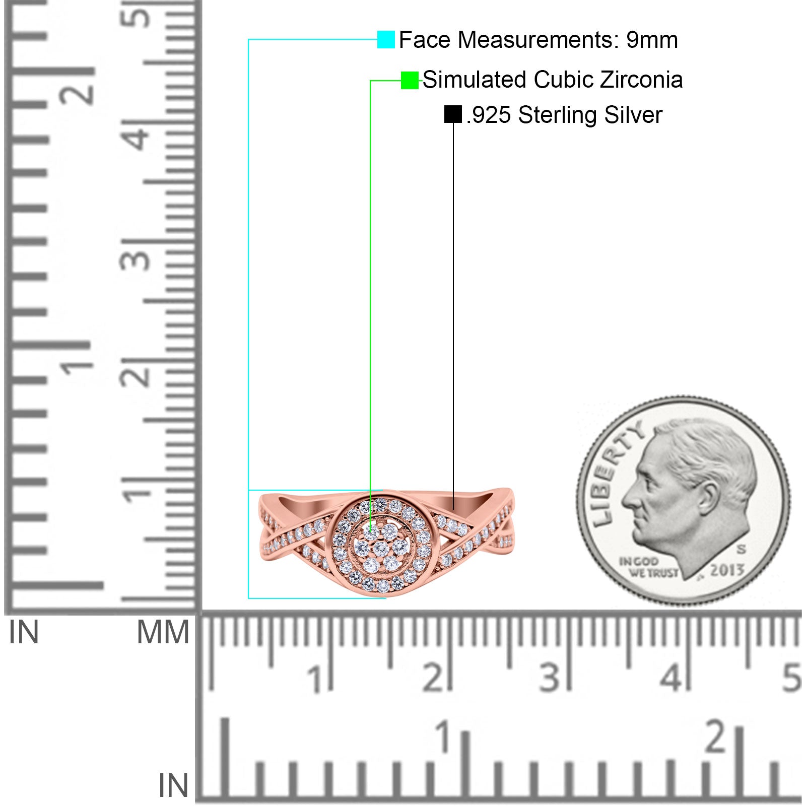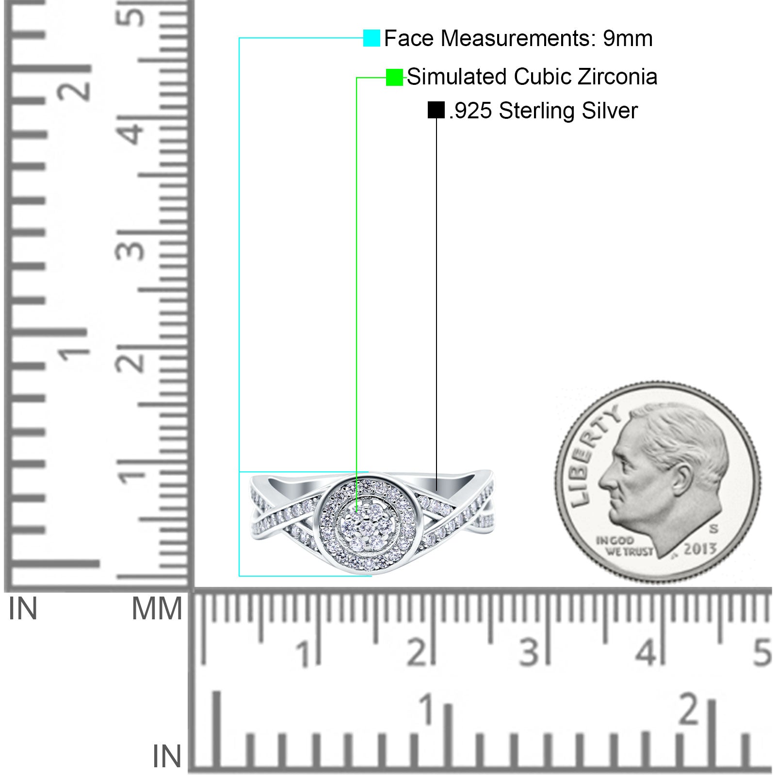 Half Eternity Halo Art Deco Ring Wedding Engagement Infinity Band Round Pave Simulated Cubic Zirconia 925 Sterling Silver