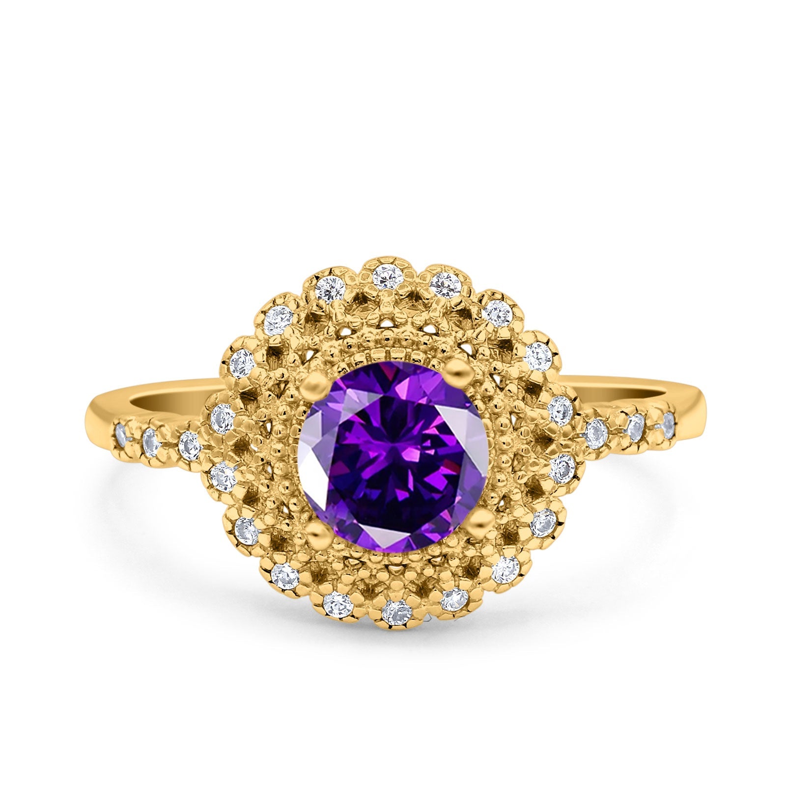 CZ & Blue Sapphire CZ Yellow Tone Silver