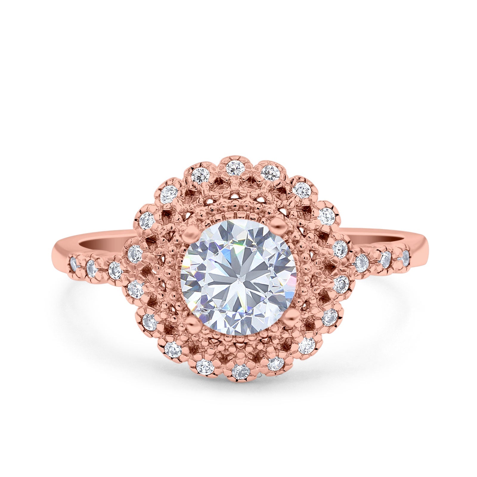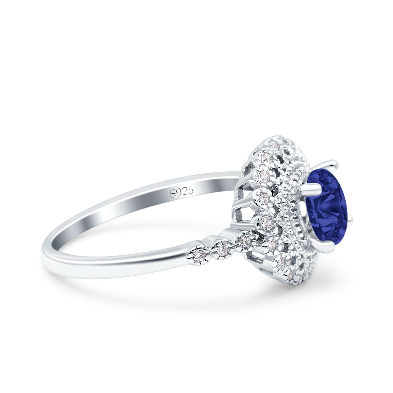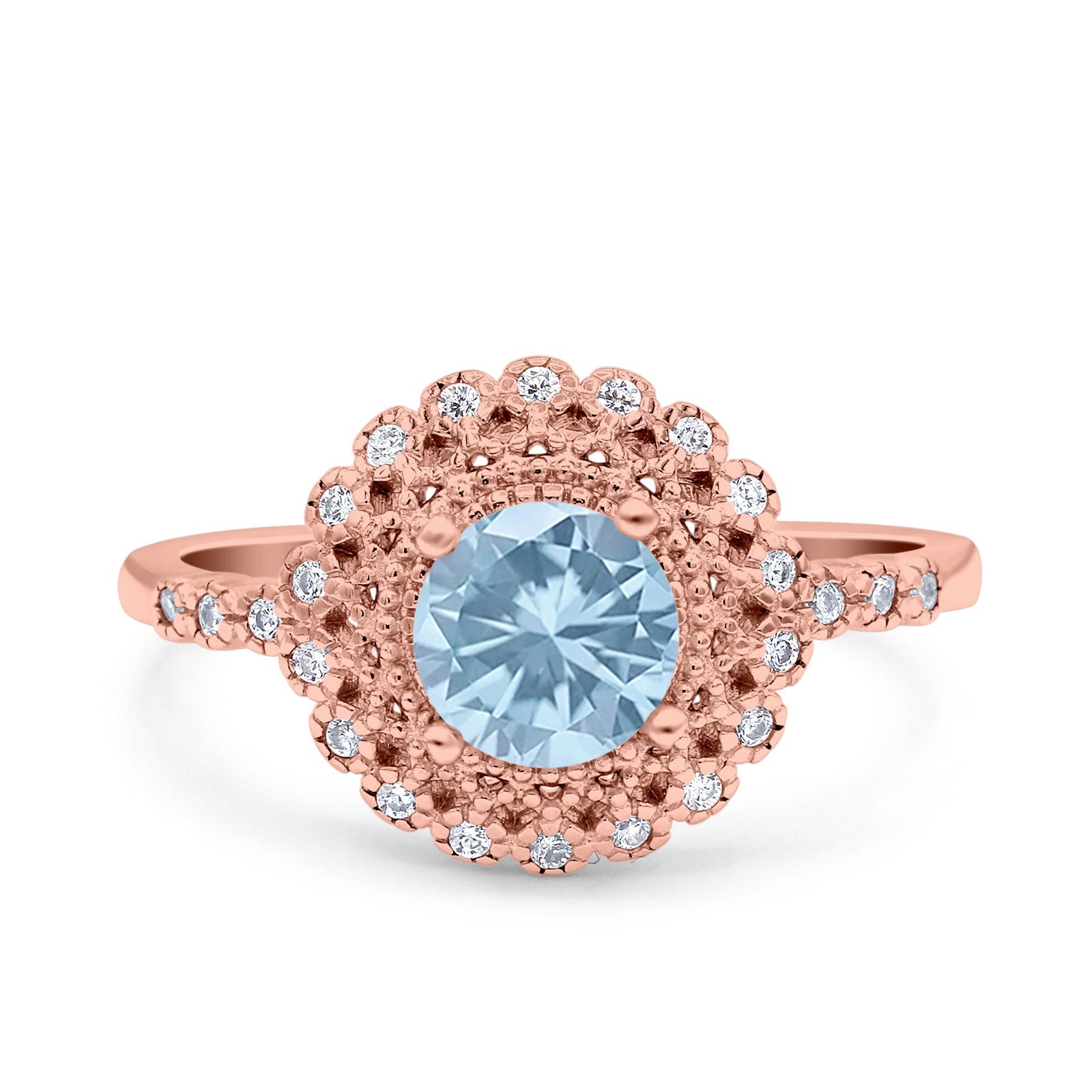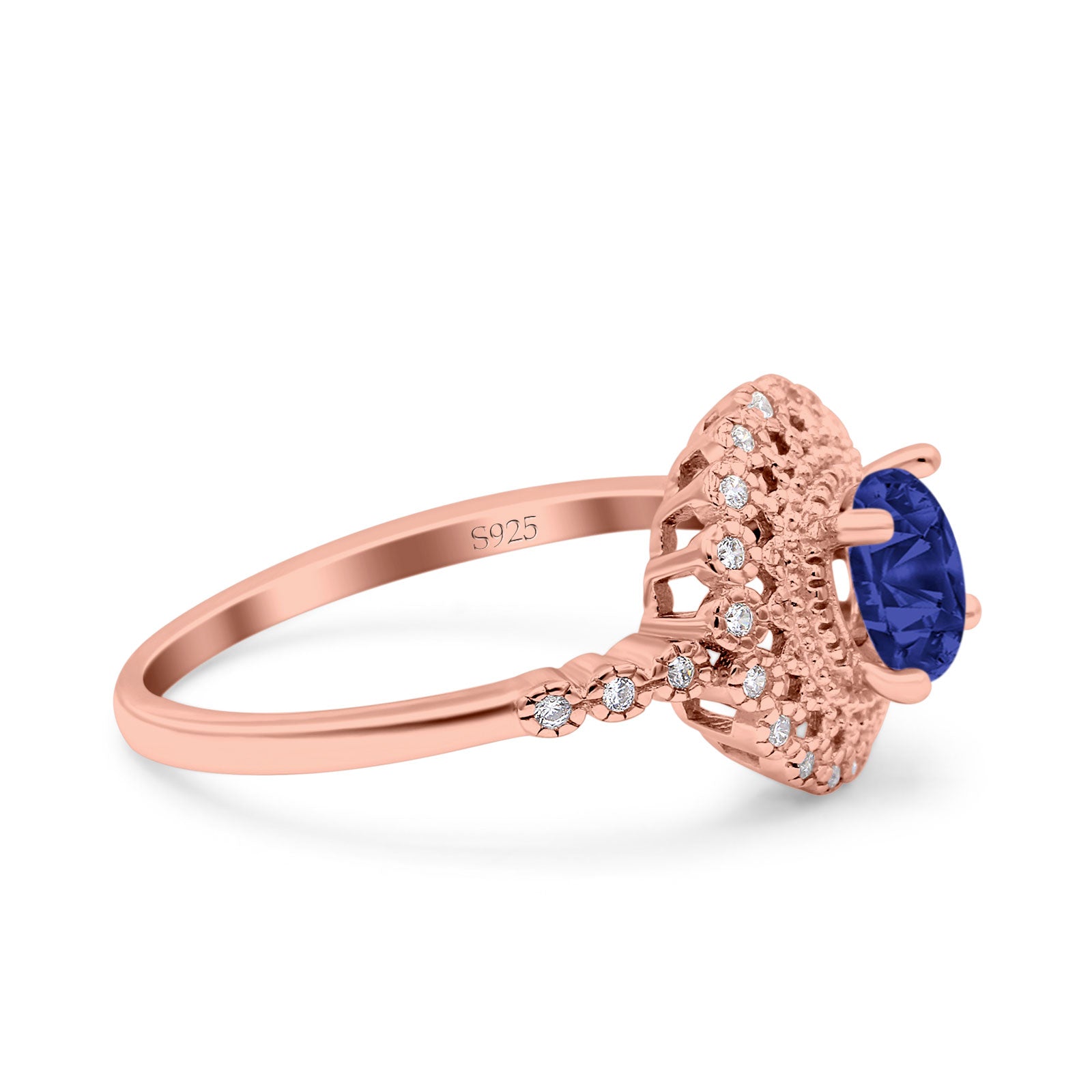 CZ & Blue Sapphire CZ Rose Tone Silver