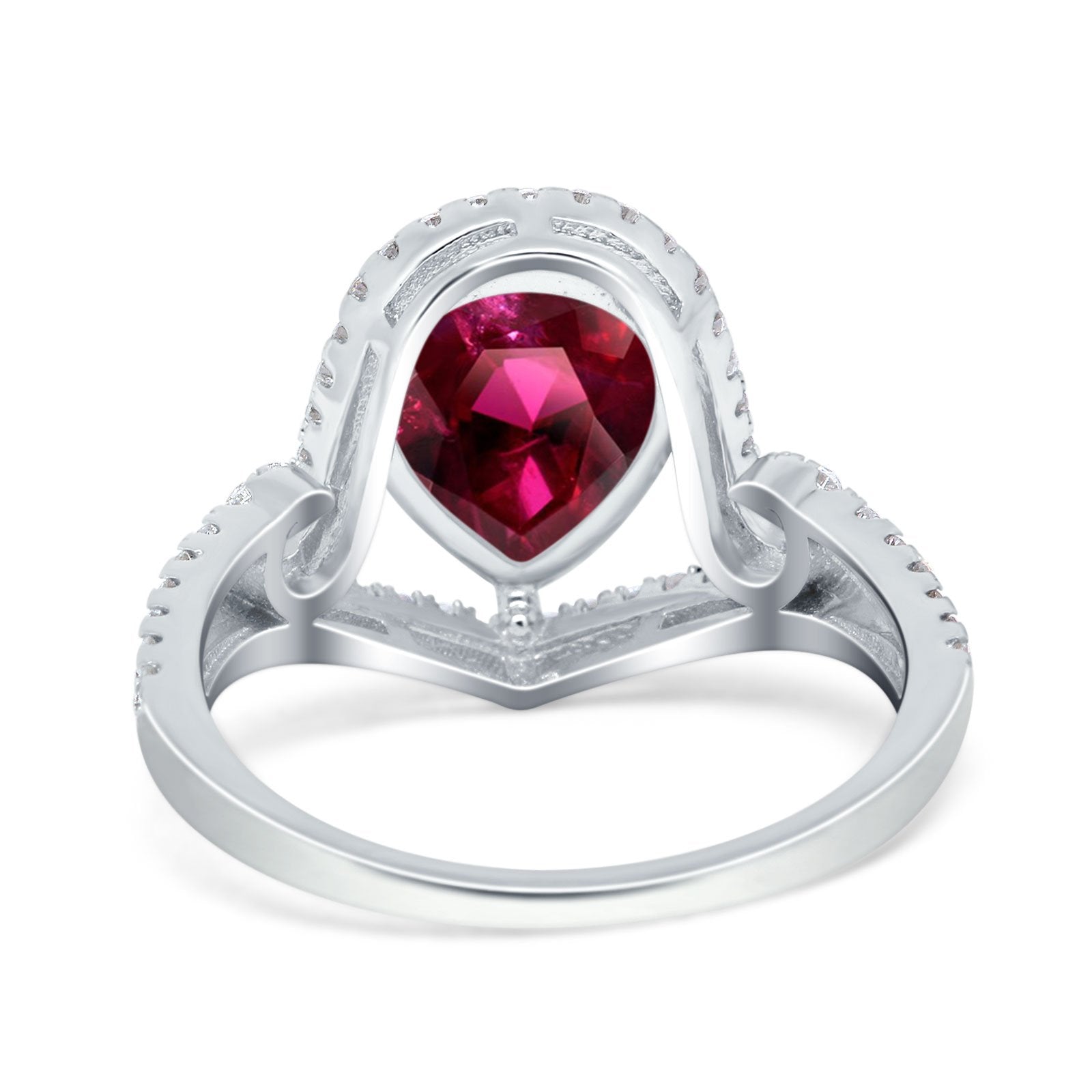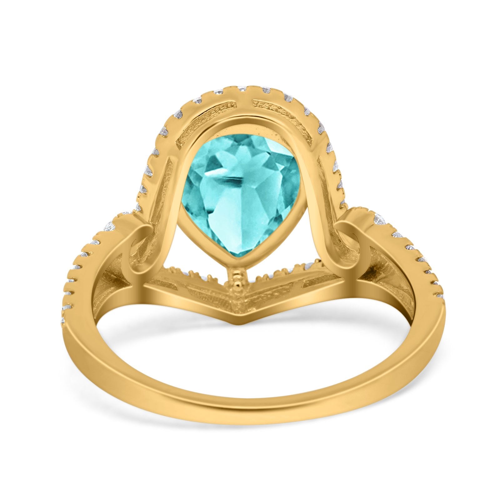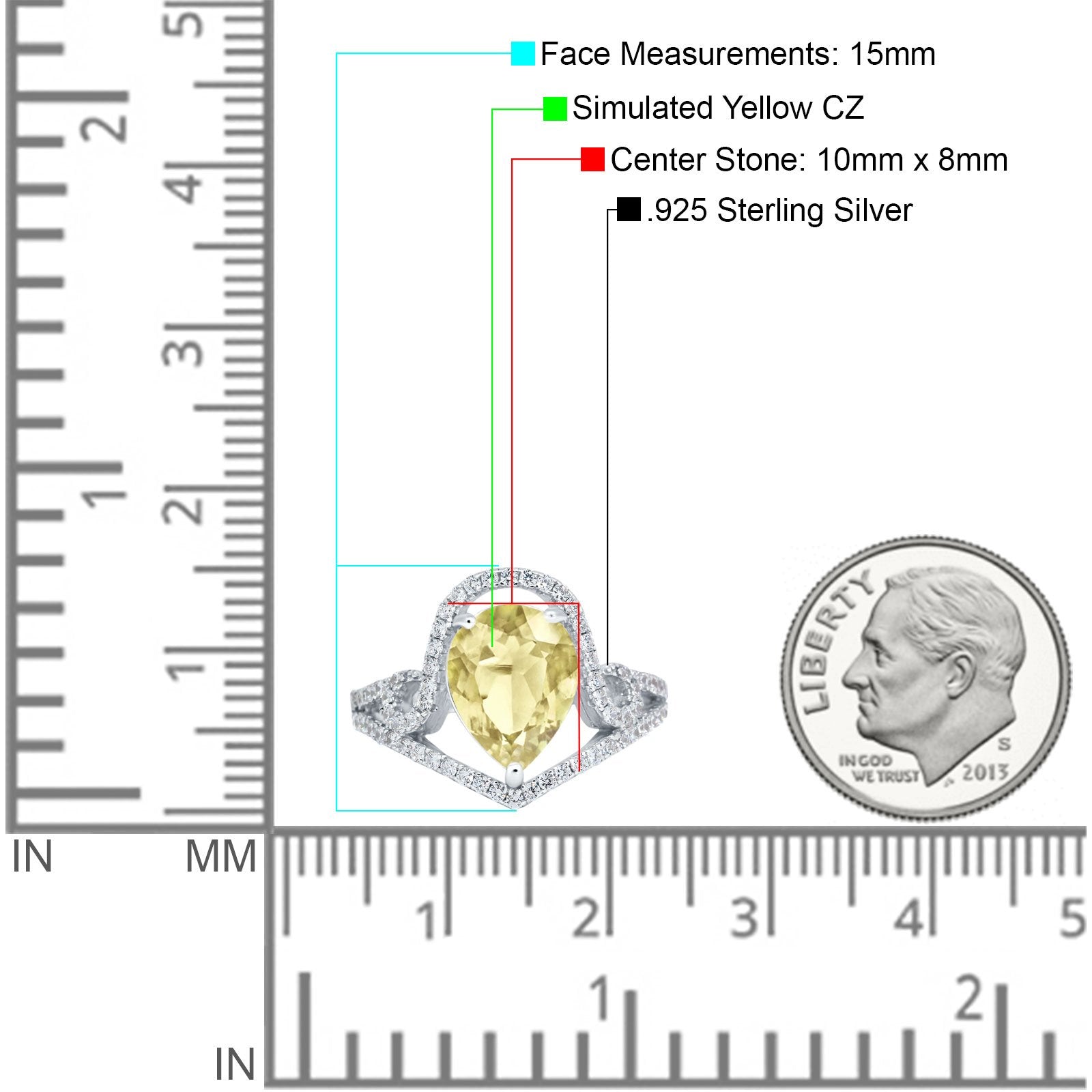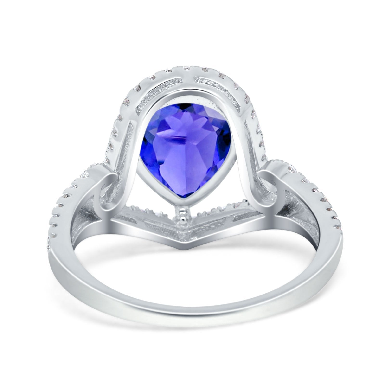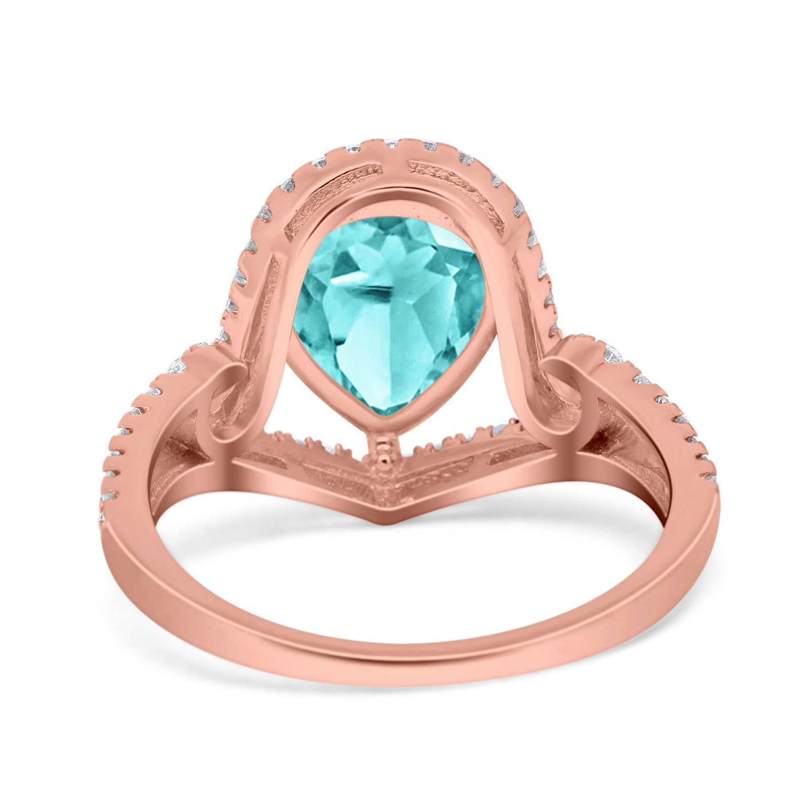 Halo Pear Shape Wedding Engagement Ring Round Simulated Cubic Zirconia 925 Sterling Silver