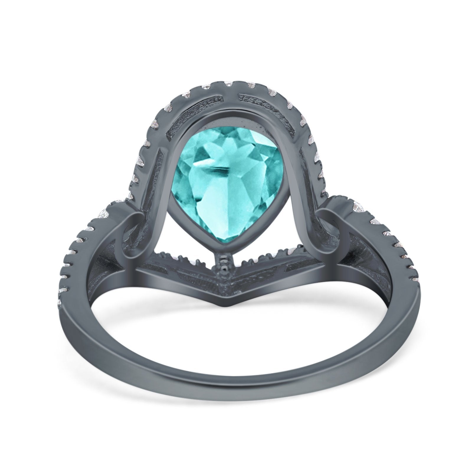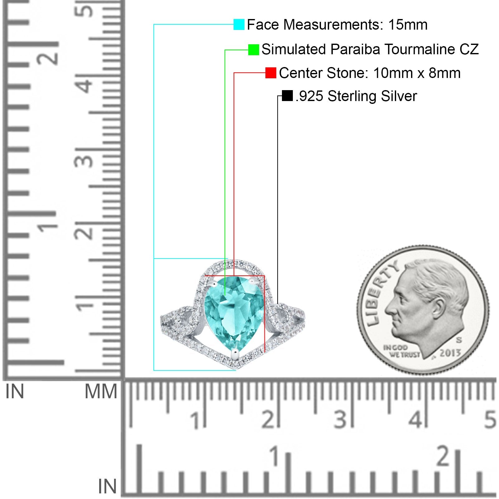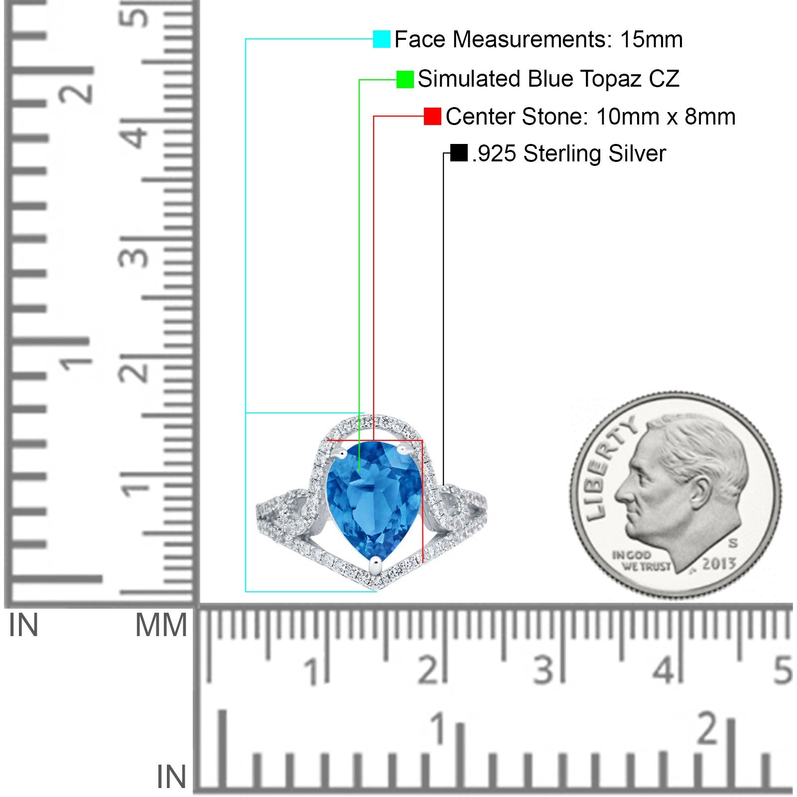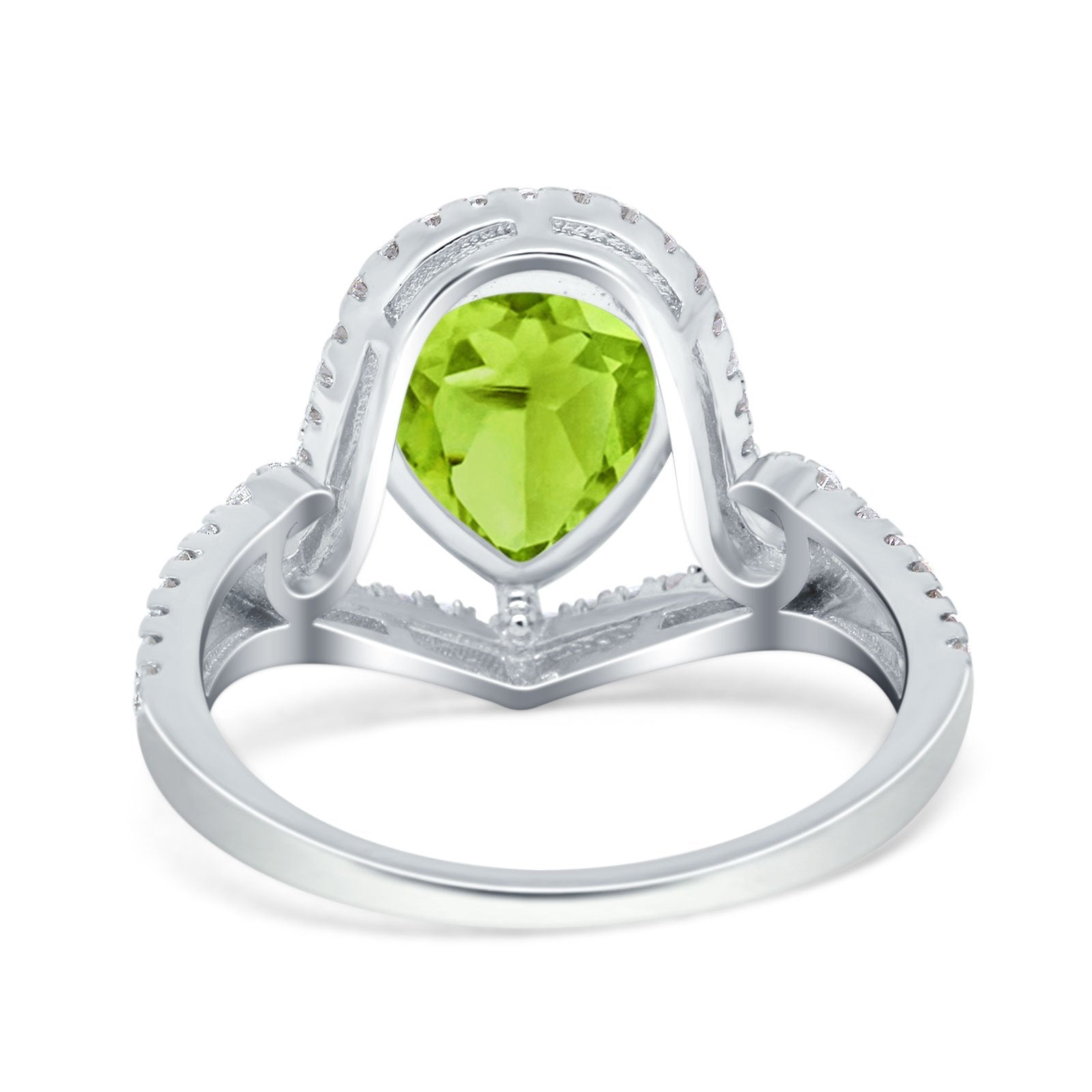 Halo Pear Shape Wedding Engagement Ring Round Simulated Cubic Zirconia 925 Sterling Silver