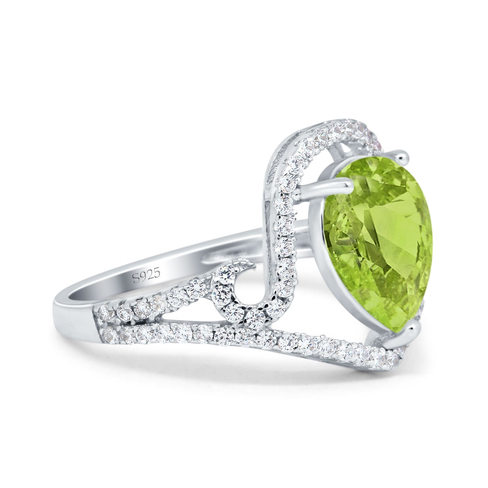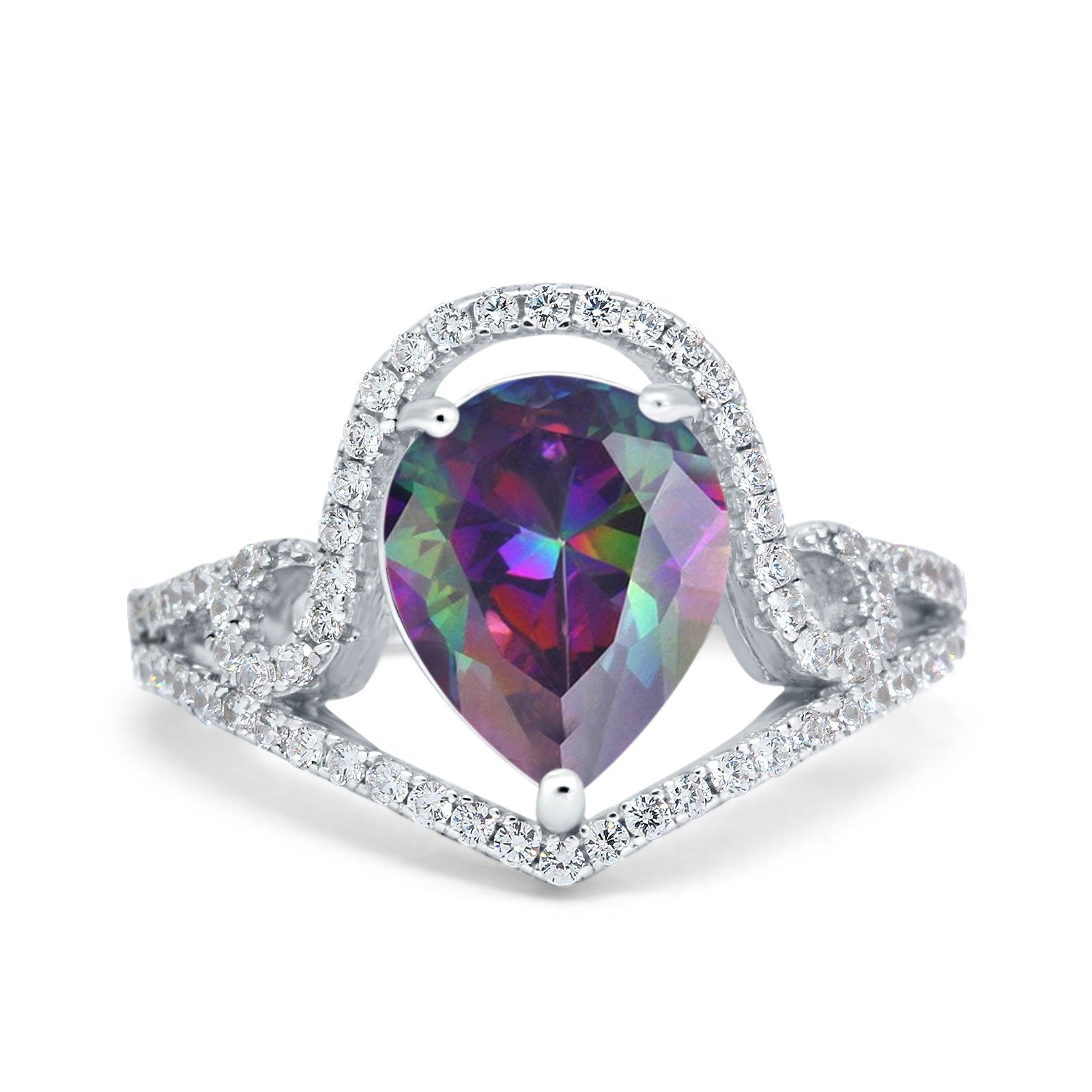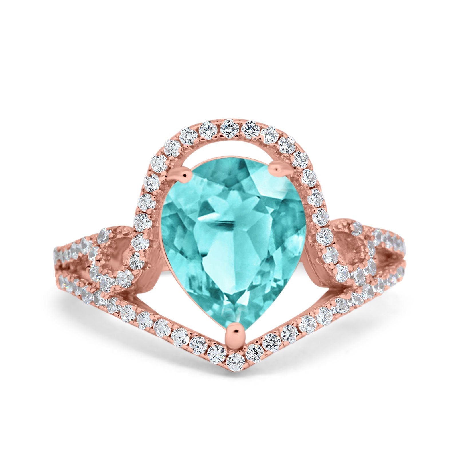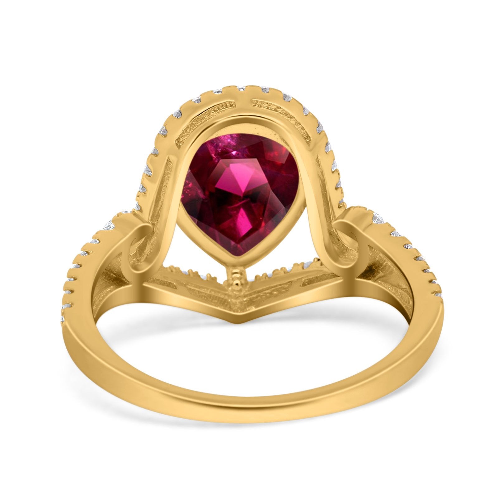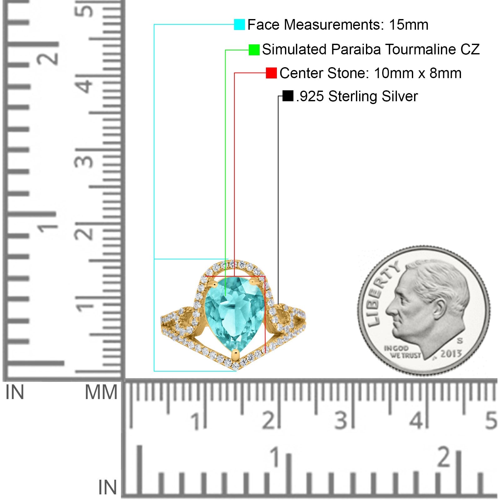 Halo Pear Shape Wedding Engagement Ring Round Simulated Cubic Zirconia 925 Sterling Silver