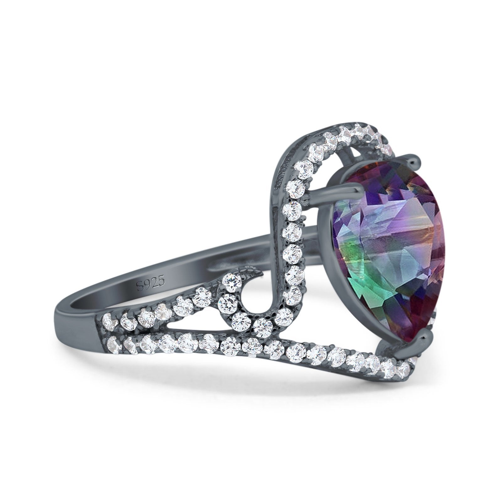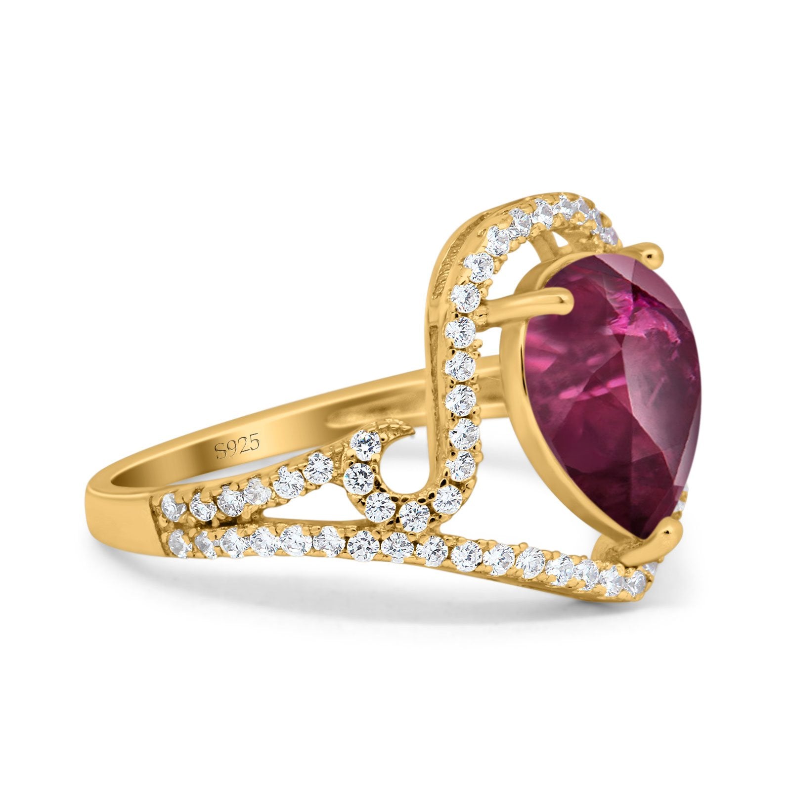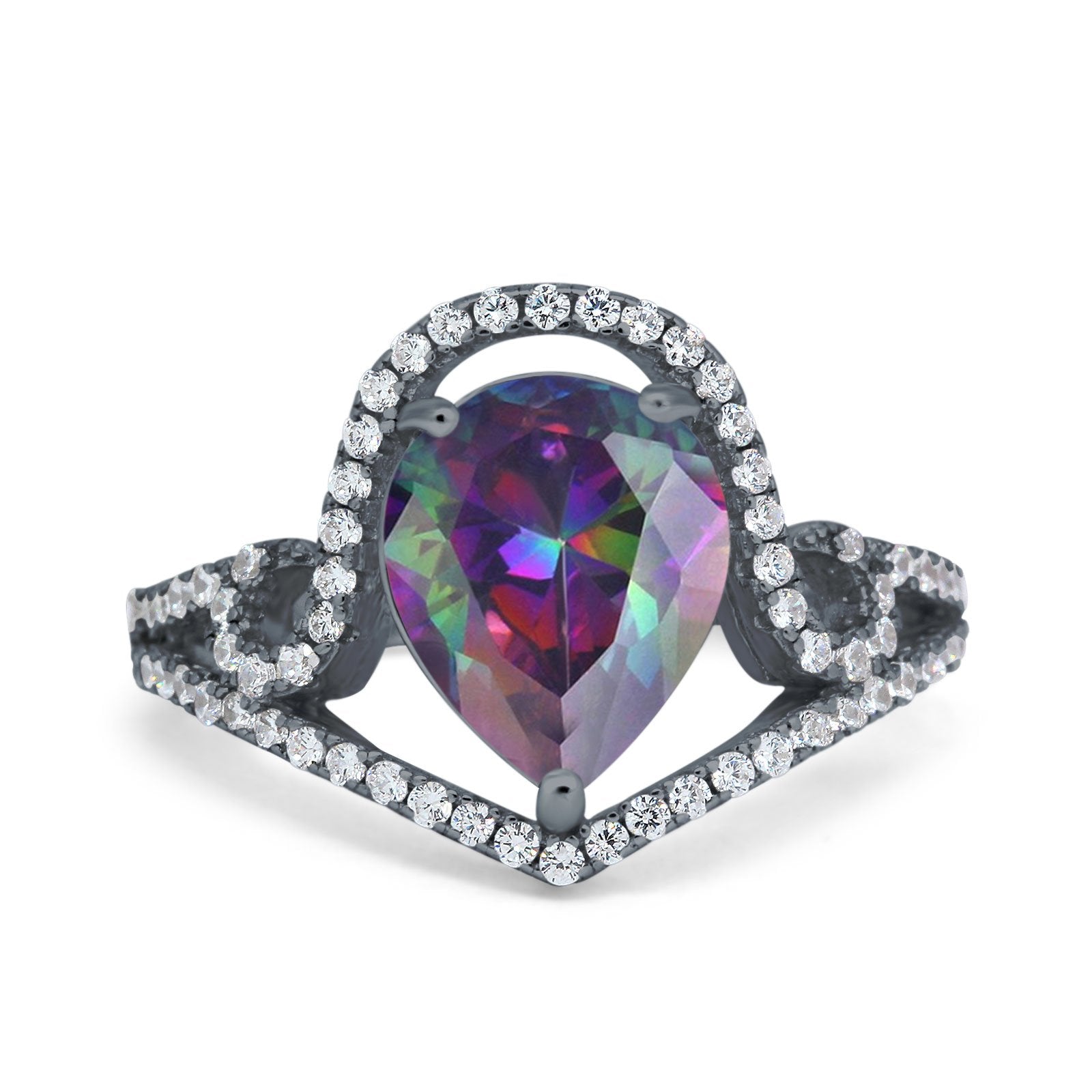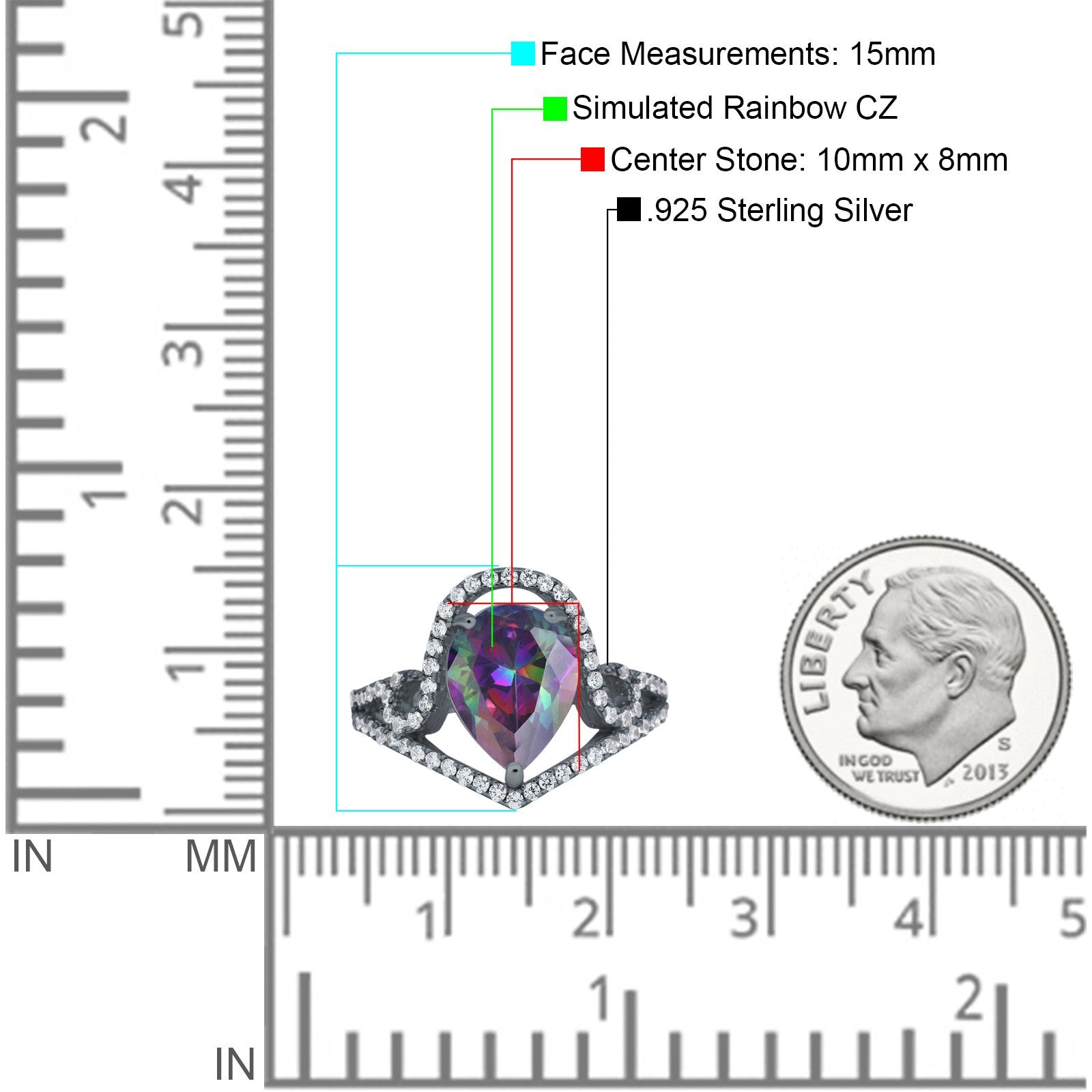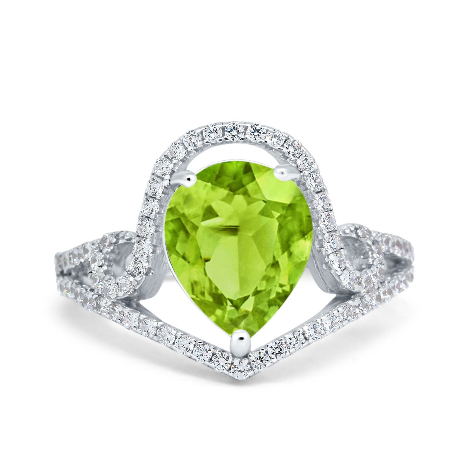 Halo Pear Shape Wedding Engagement Ring Round Simulated Cubic Zirconia 925 Sterling Silver