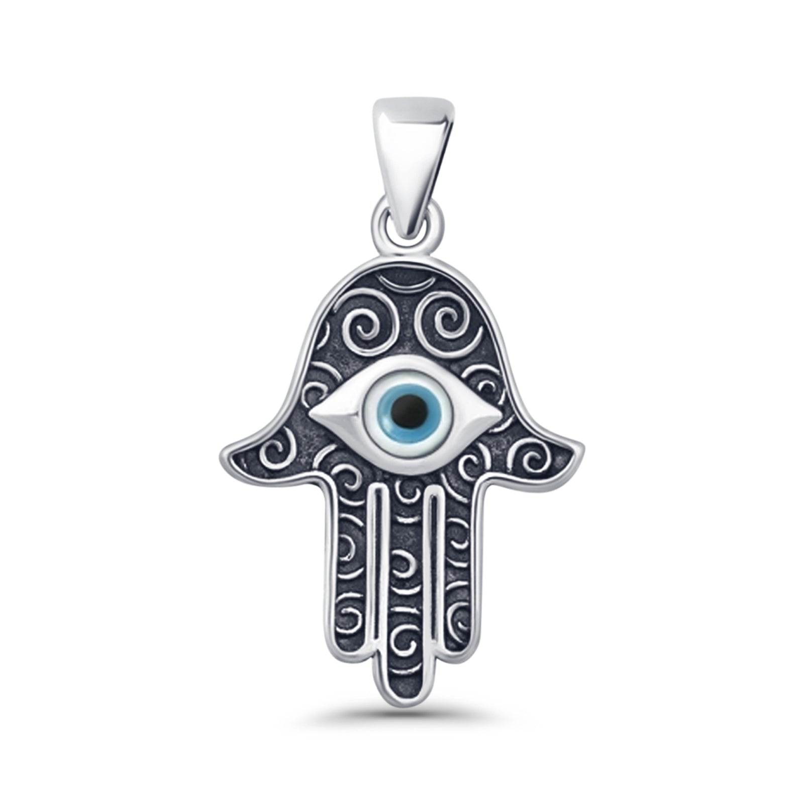 Style: Oxidized Hand Of Hamsa & Evil Eye Pendant Necklace