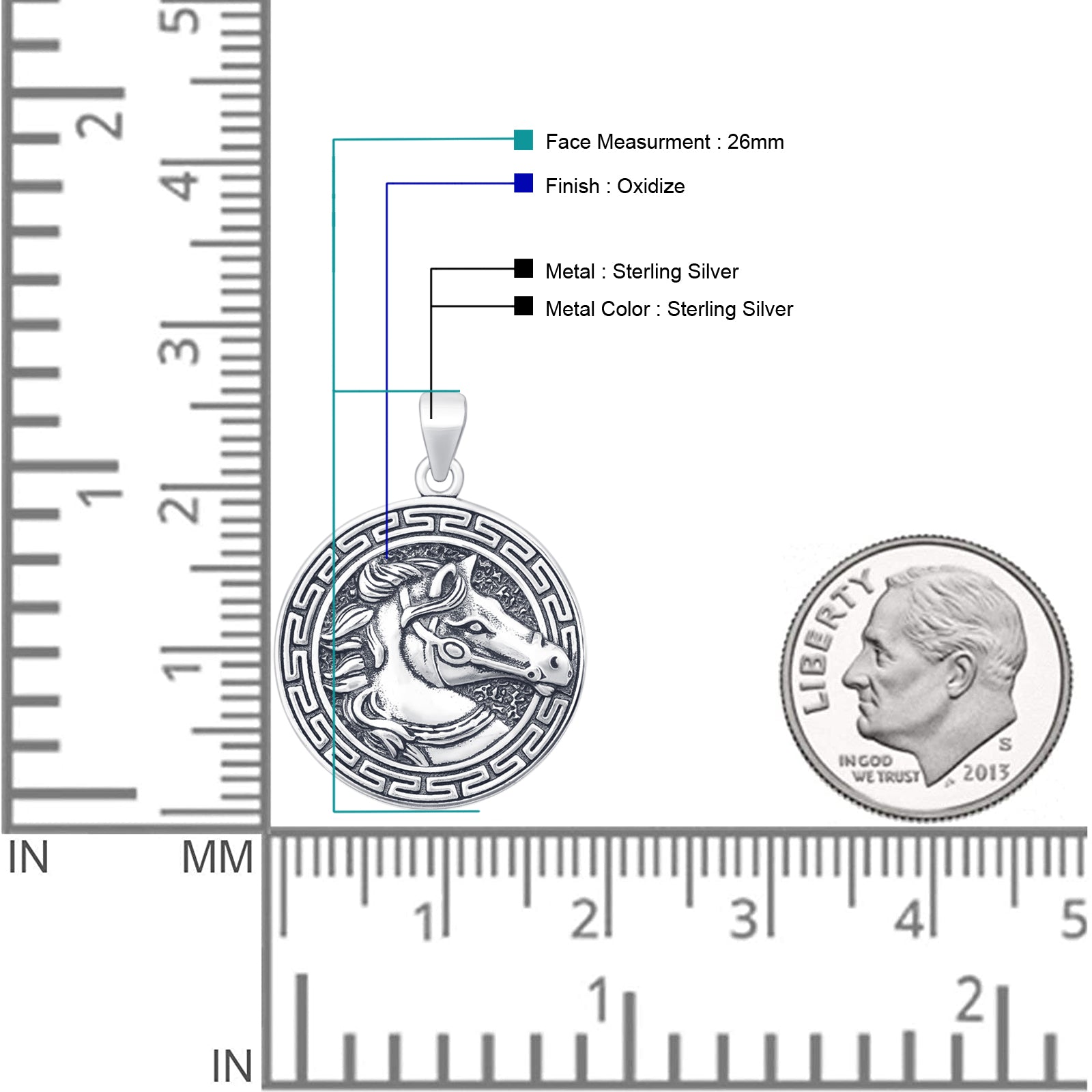 Horse Greek Key Pendant Oxidized 925 Sterling Silver